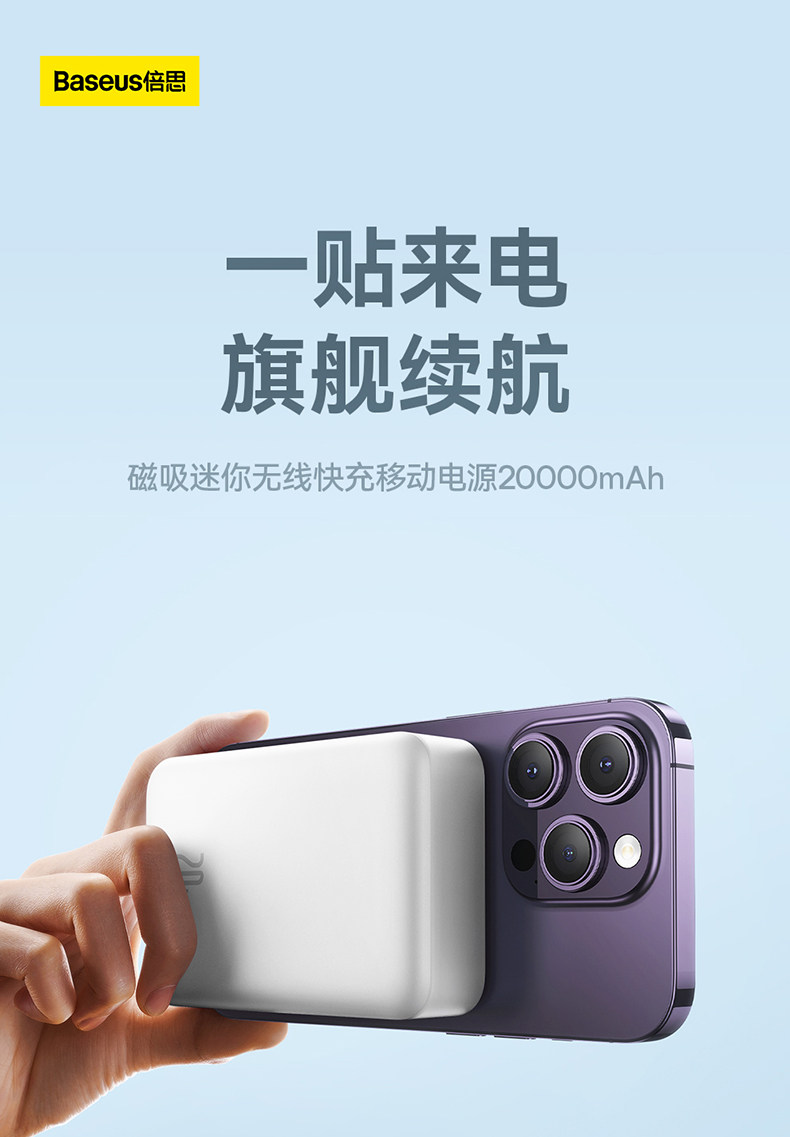 [Power Bank with 3C Certification, Suitable for Airplanes] Baseus 2026 New Model Magnetic Large Capacity 20000Mah Portable Fast Charging Power Bank, Suitable for Apple 17, Official Genuine Flagship Store