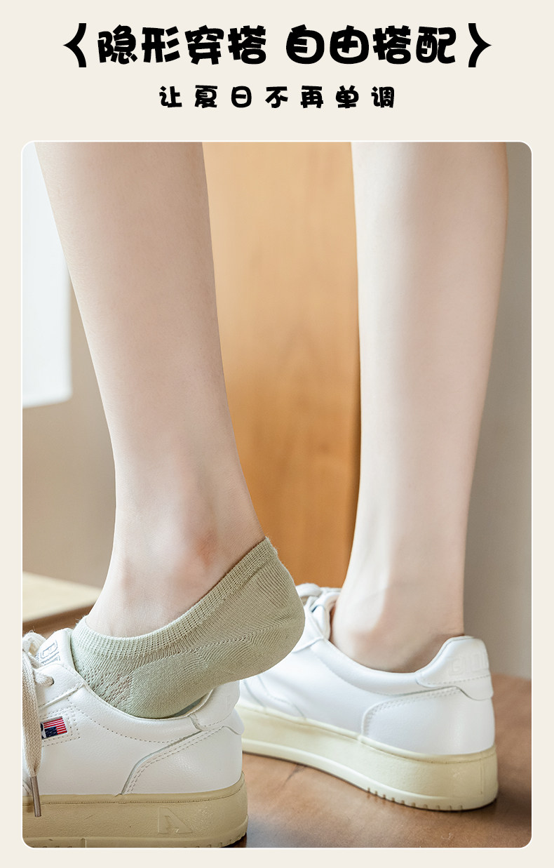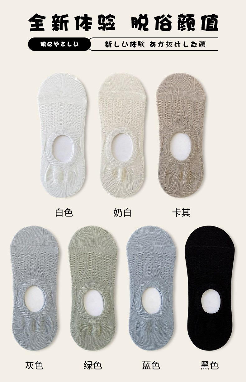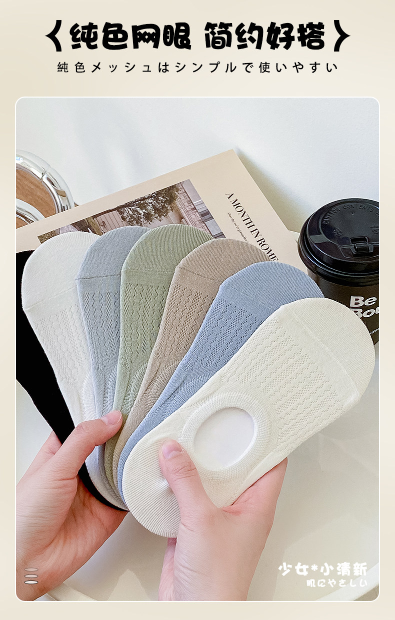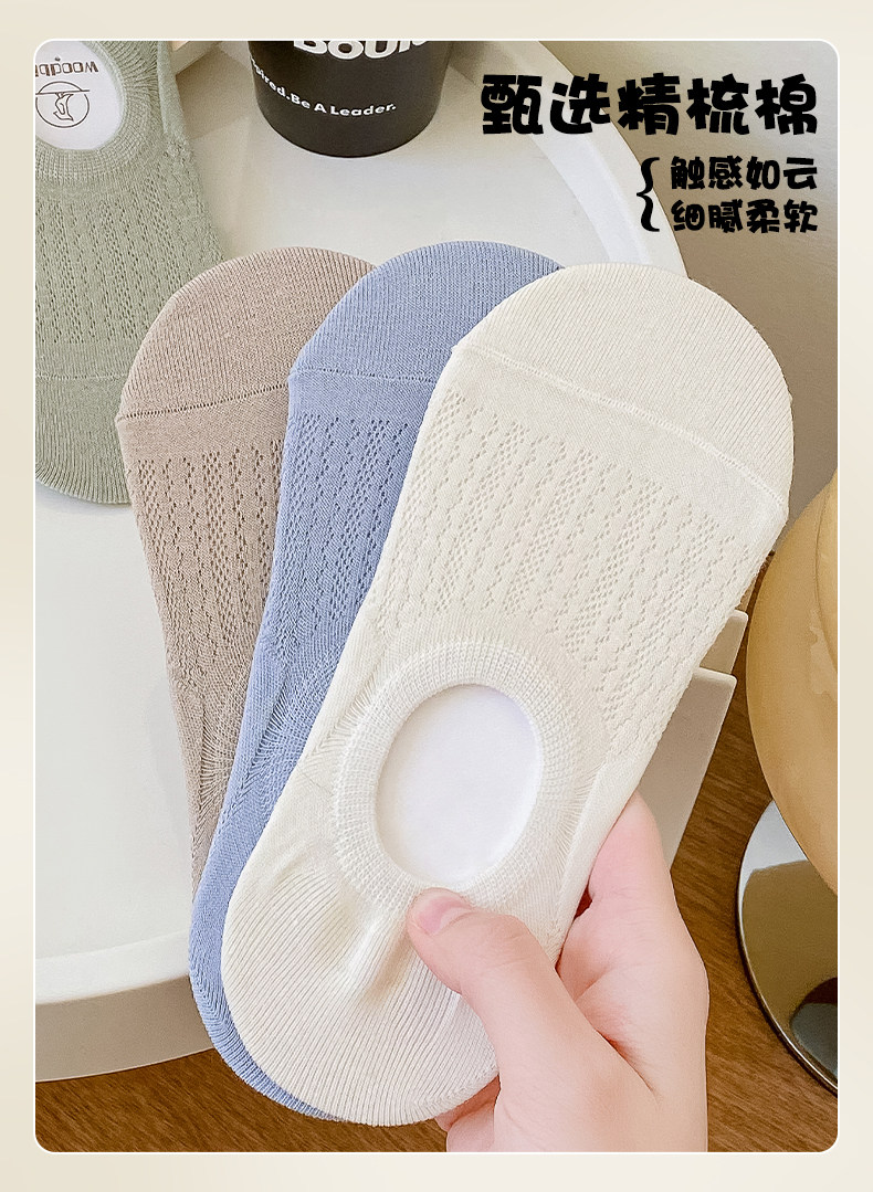 White Socks for Women, Pure Cotton No-Show Socks, Thin Summer Style, Non-Slip, Won'T Slip Off, Solid Color, Breathable, Low-Cut Invisible Short Socks