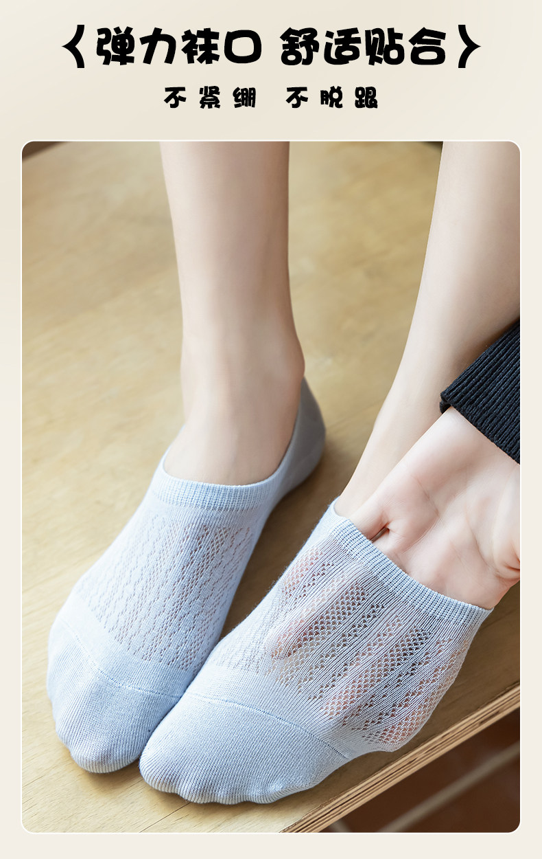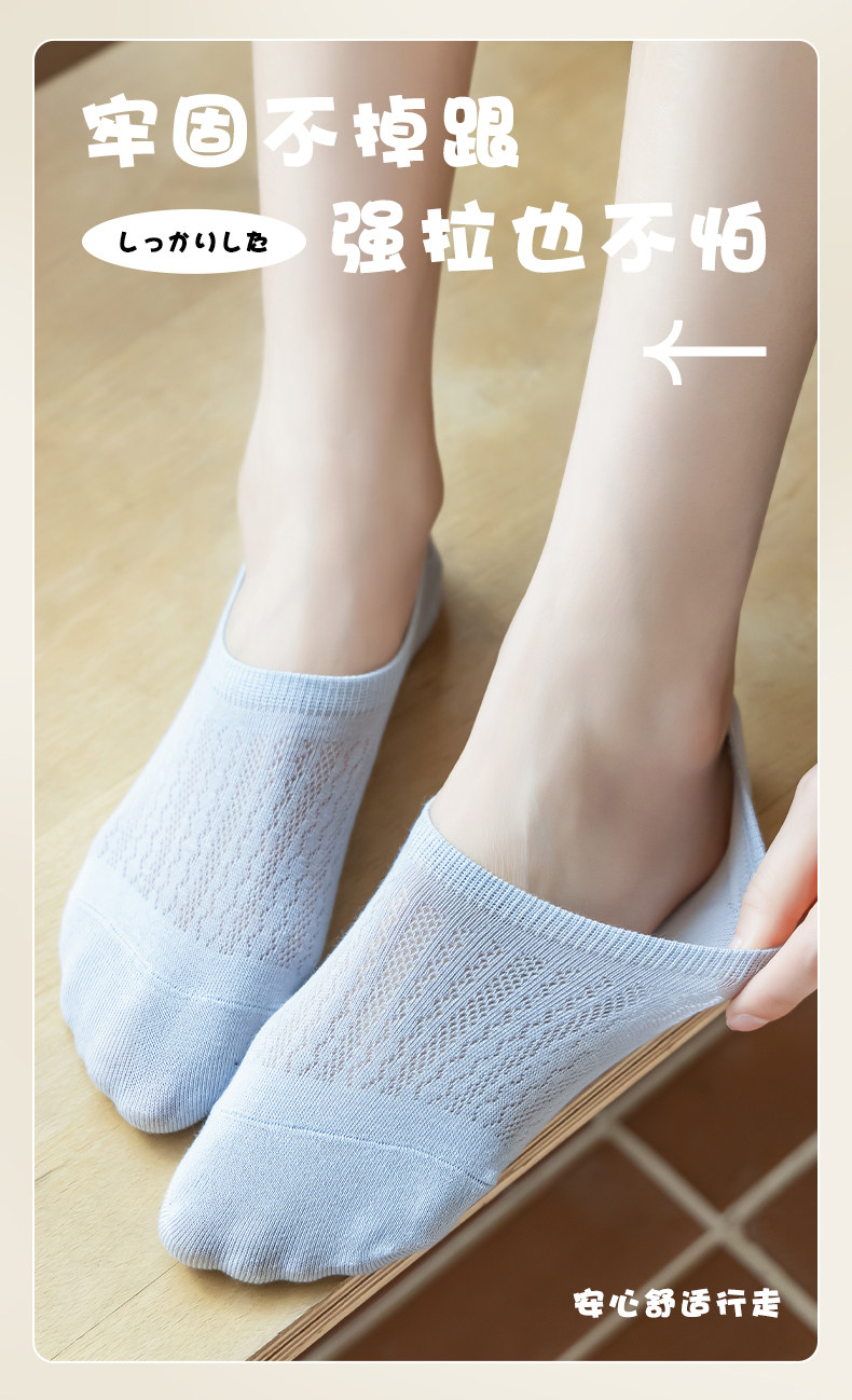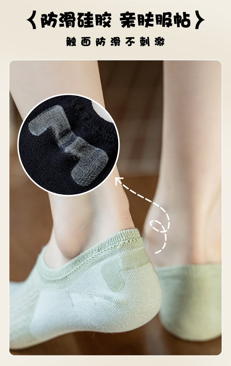 White Socks for Women, Pure Cotton No-Show Socks, Thin Summer Style, Non-Slip, Won'T Slip Off, Solid Color, Breathable, Low-Cut Invisible Short Socks