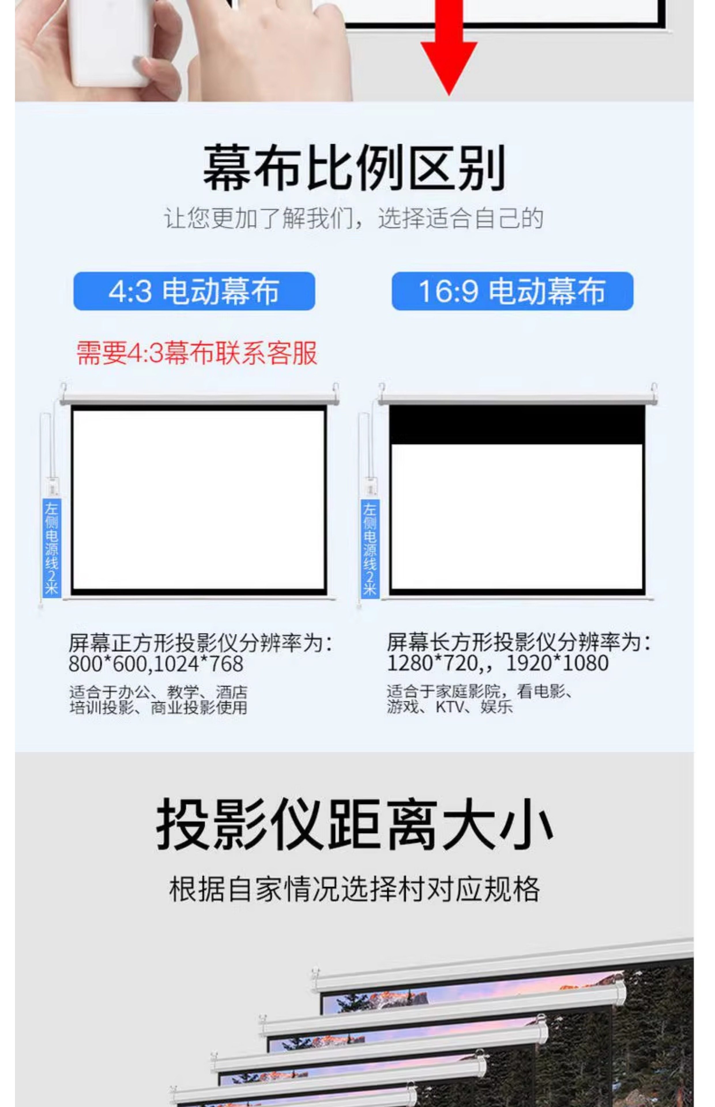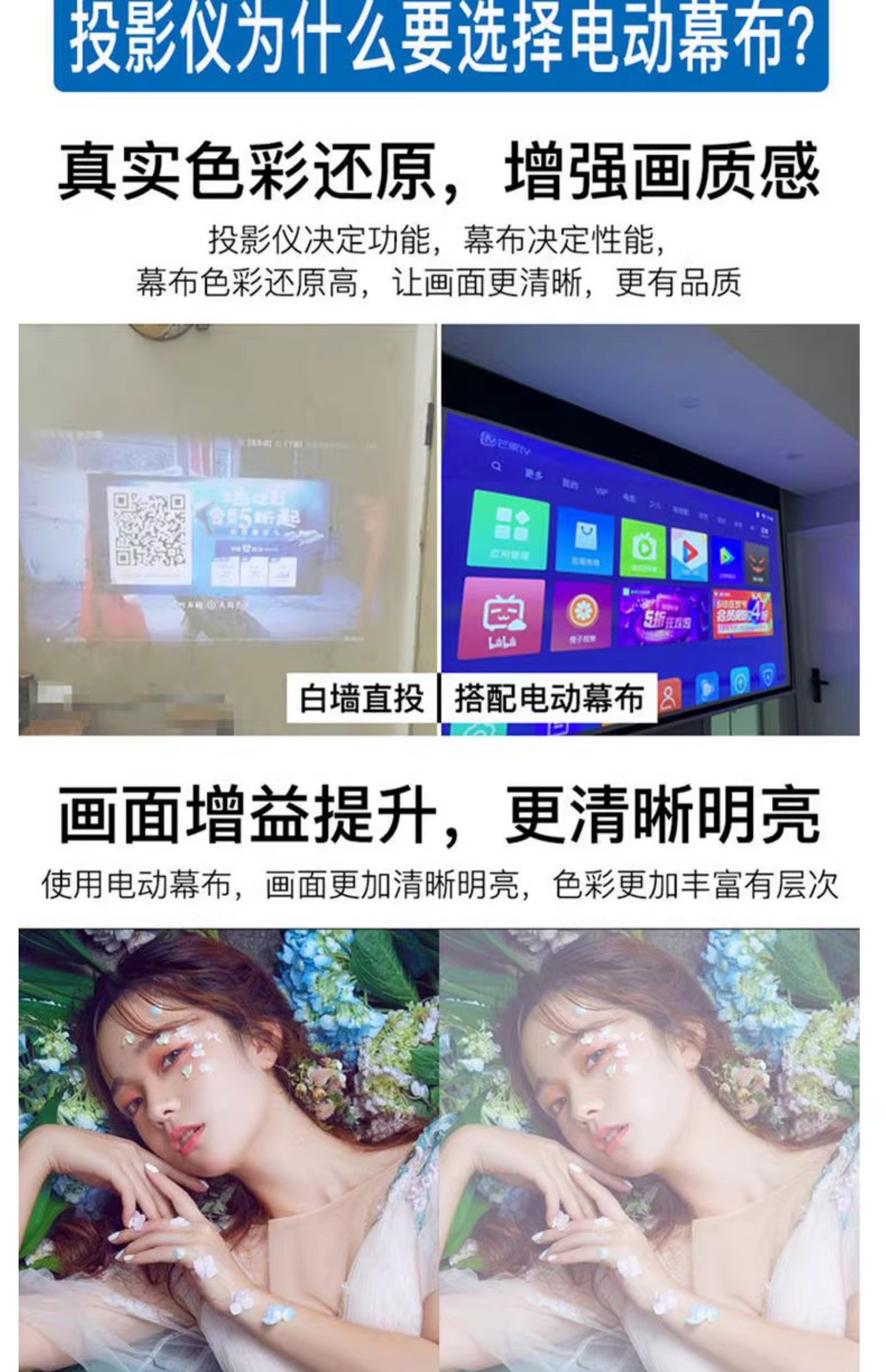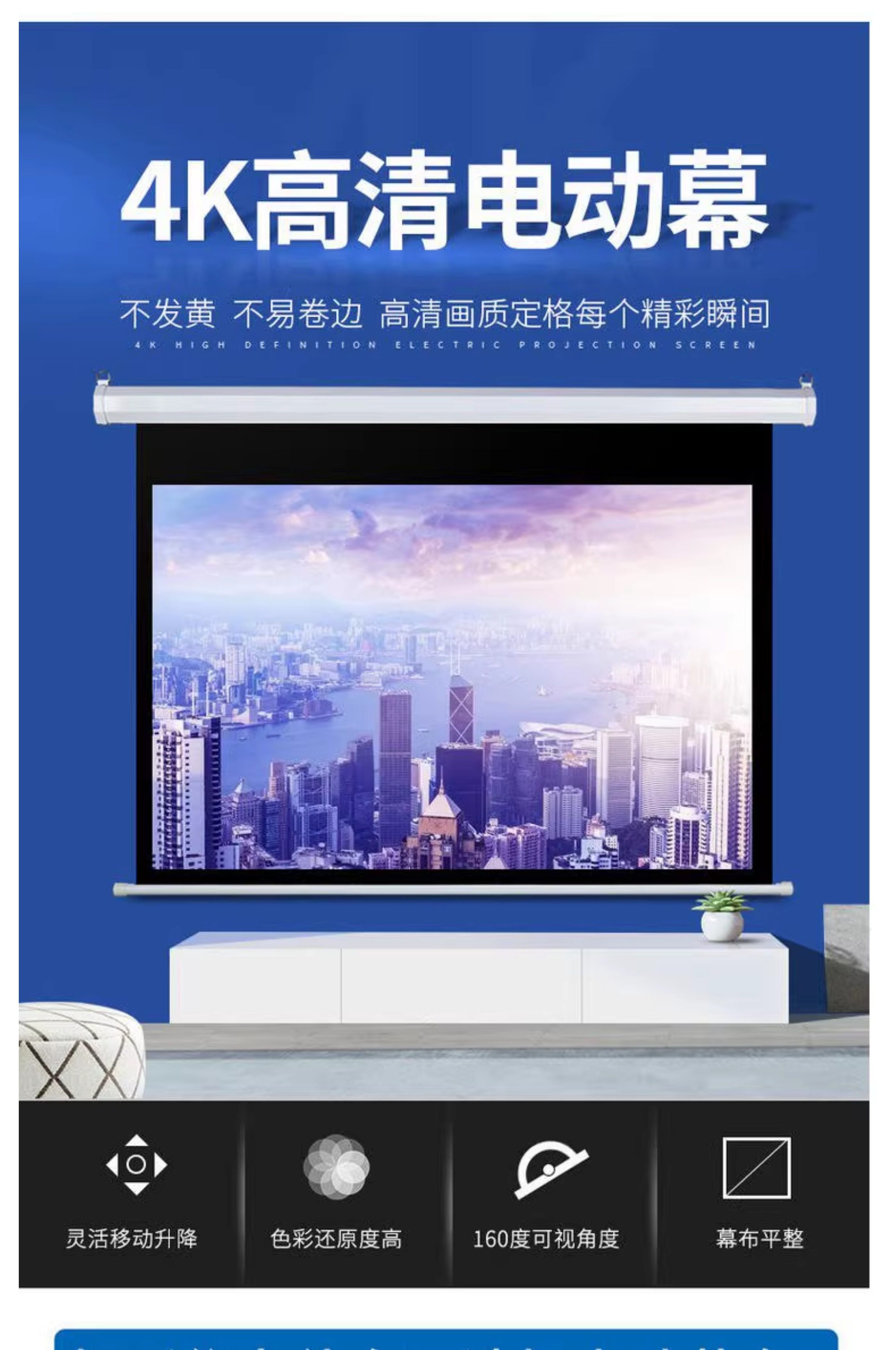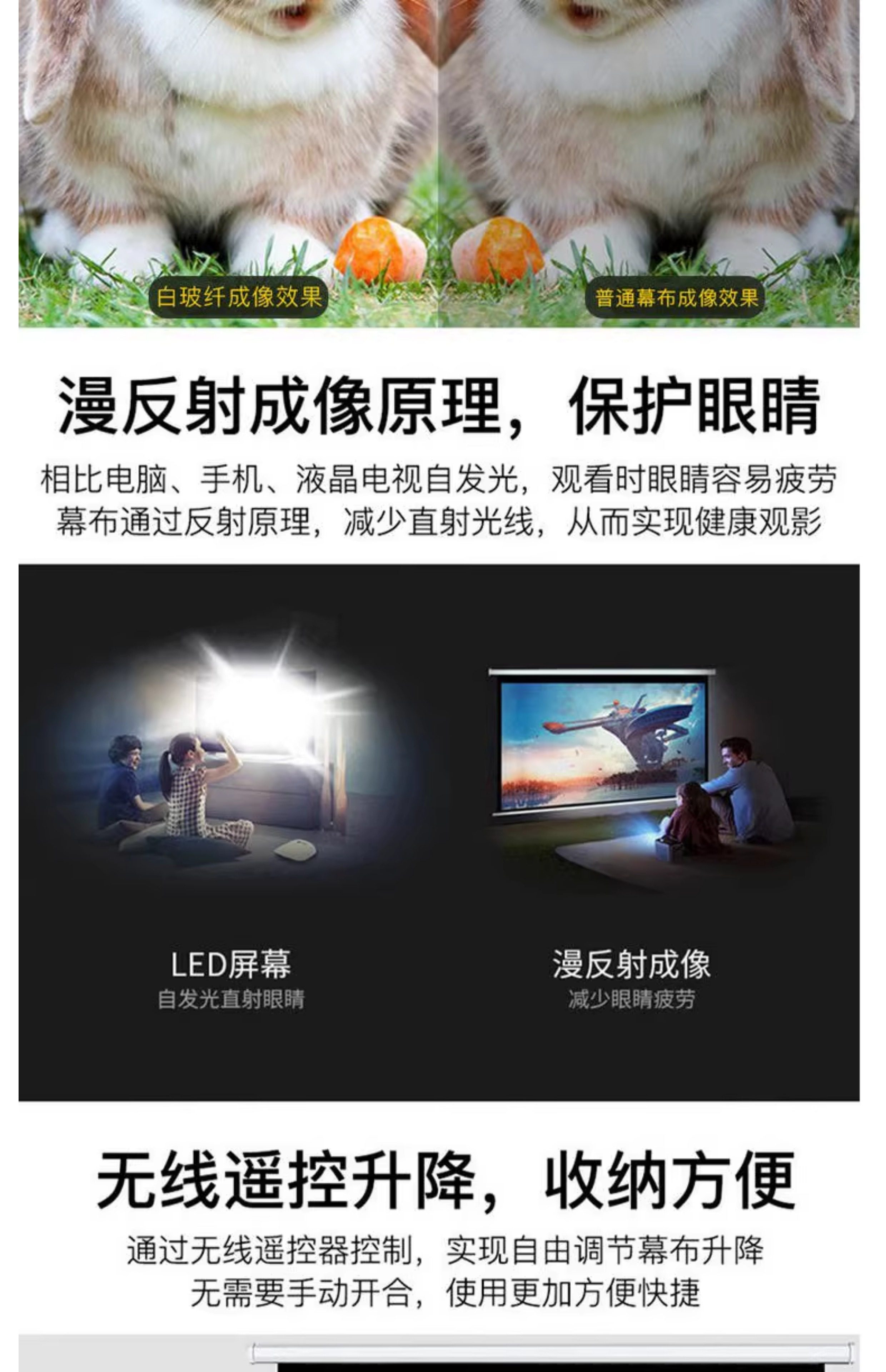 Suitable for Dangbei Big Eyed Orange Haqu Vidda Tencent Aurora Projector Electric Curtain Home Wall-Mounted Remote Control Metal Hd White Glass Fiber Curtain