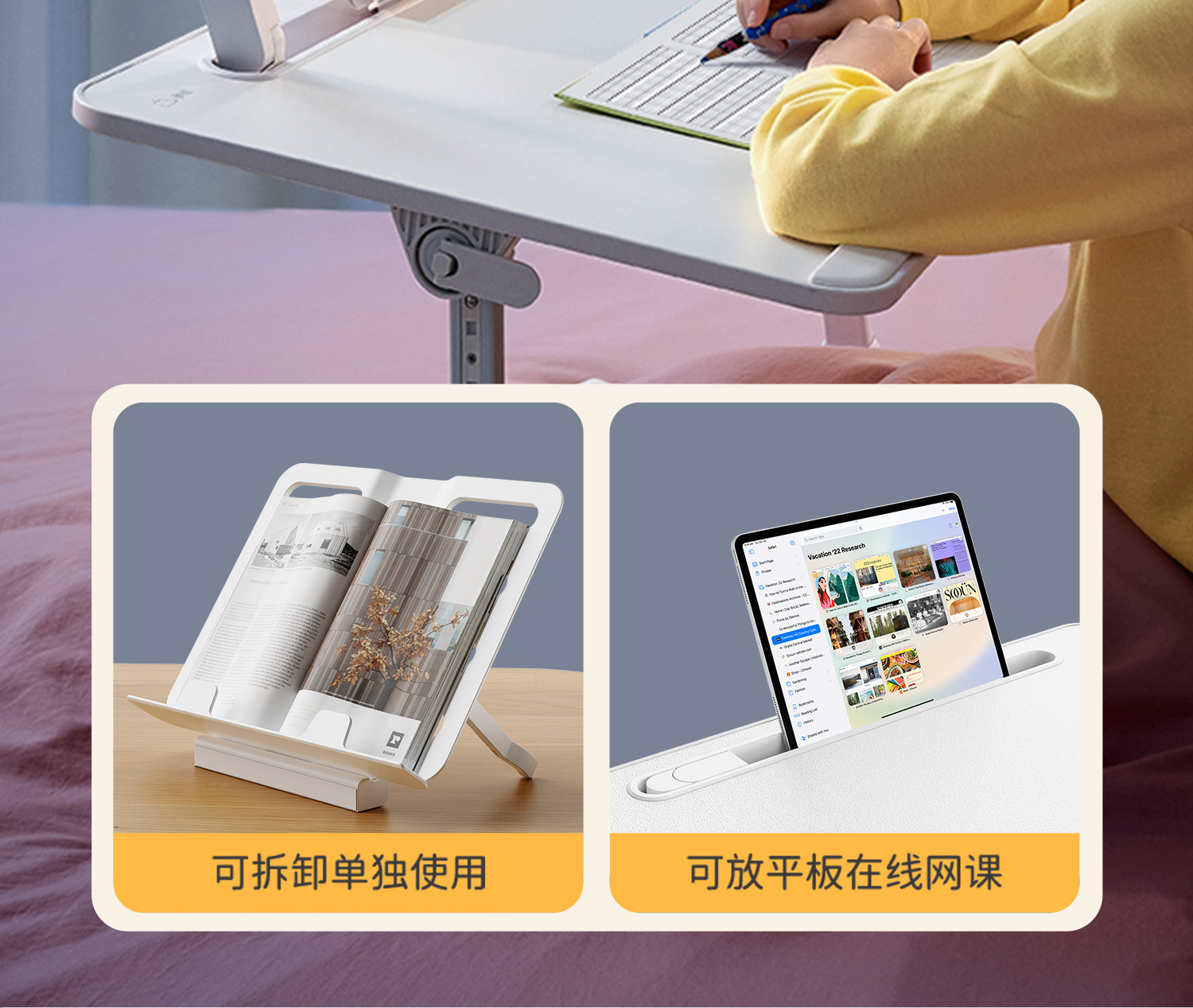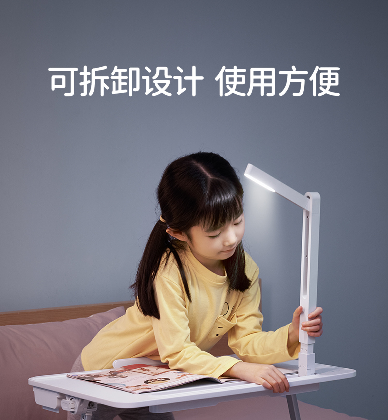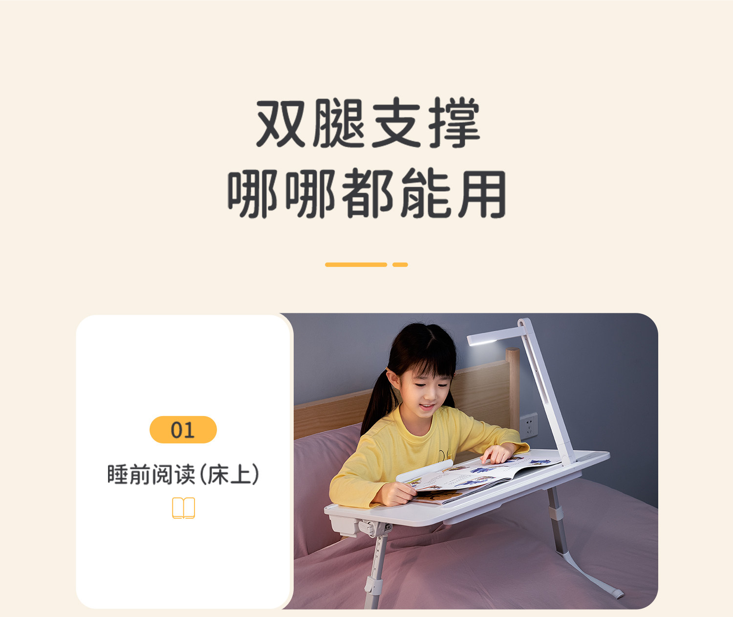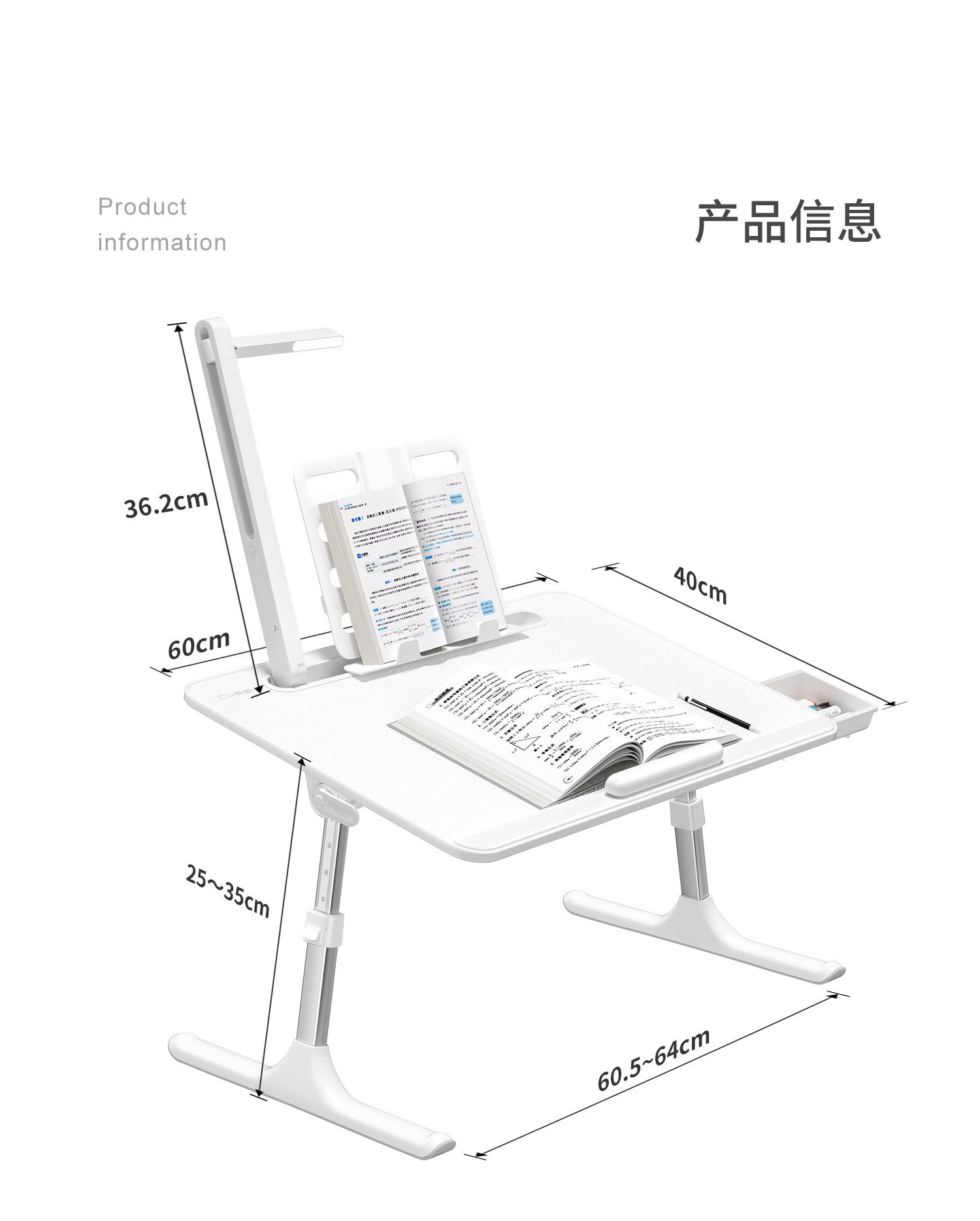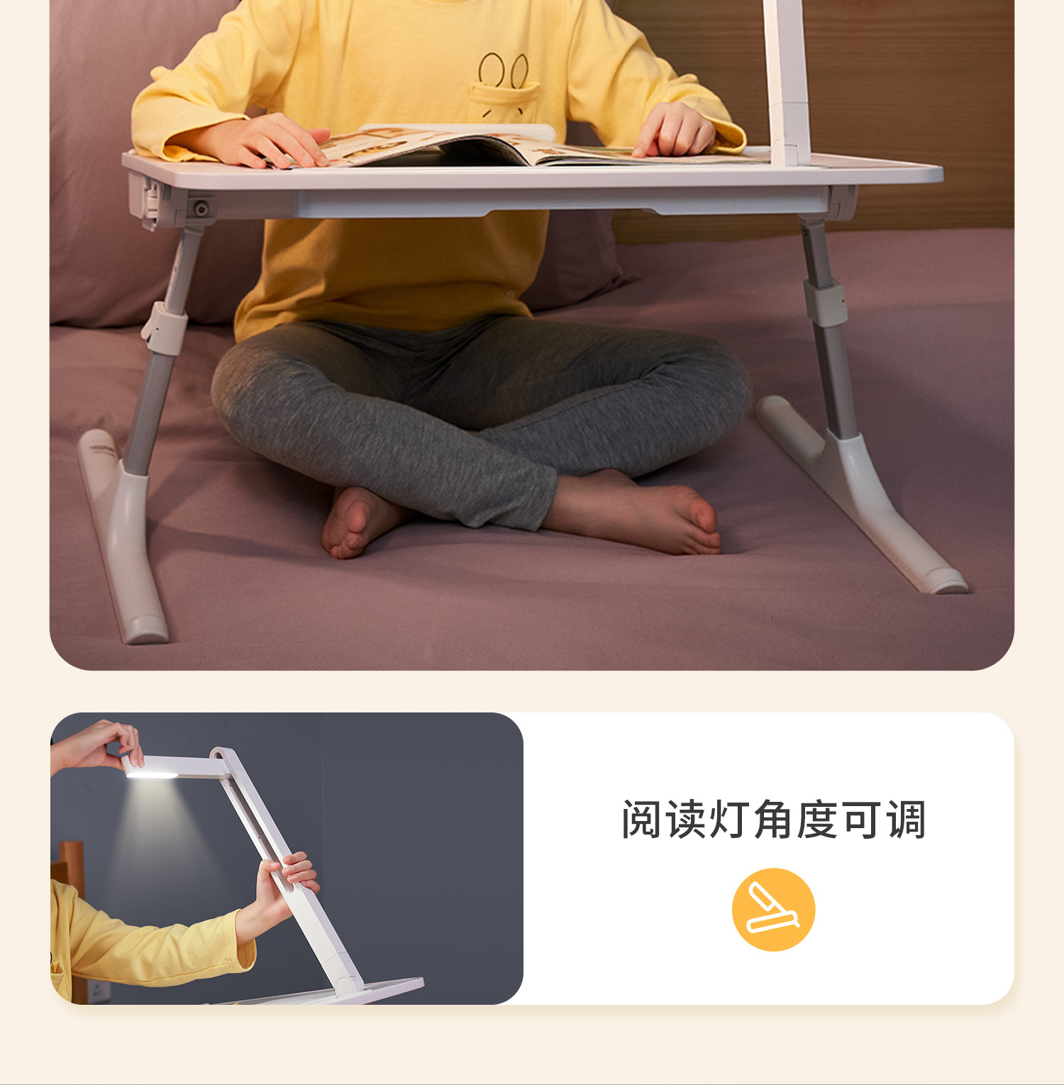 Saijing K3 Bed Study Table with Lamp, Small Foldable Desk for Homework, Reading Stand, Office Computer Desk, Small Table Board, Bedroom Adjustable Picture Book Table, Mobile Reading Table with Lamp for Bay Window