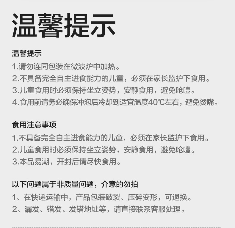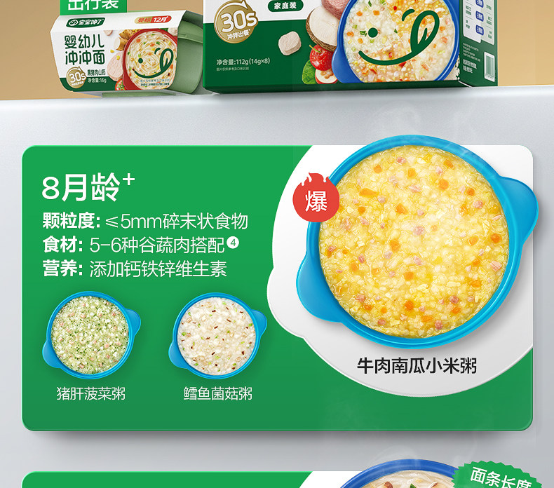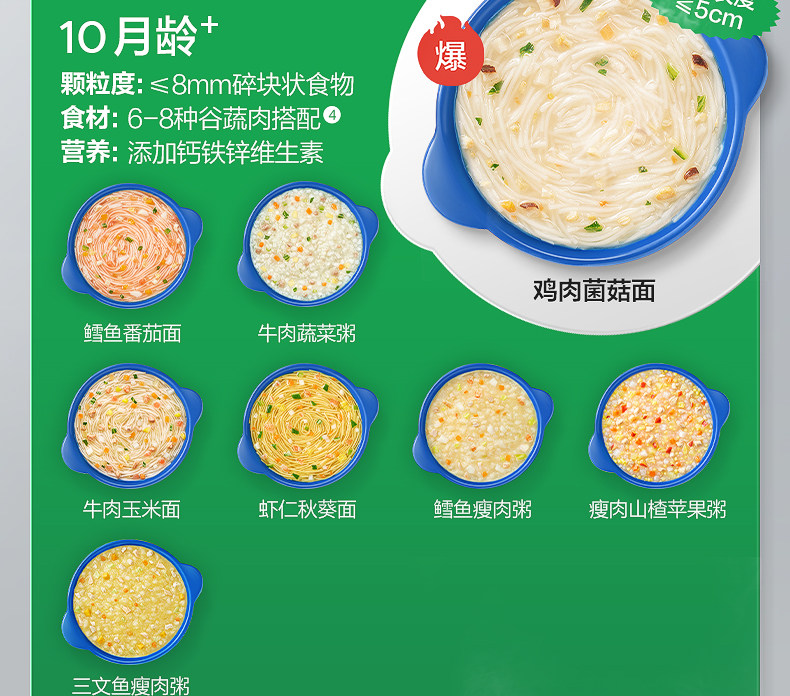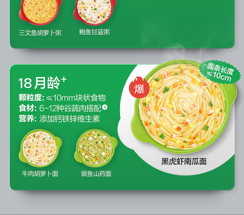 | Taste | ---【10 Boxes of Chongchong Porridge and Noodles Are Cost-Effective】---,[Travel Outfit 10 Boxes|August + Chongchong Porridge】Beef, Pumpkin and Millet Porridge*4+Pork Liver and Spinach Porridge*4+Cod and Mushroom*2,[Travel Outfit 10 Boxes|October + Porridge and Noodle Combination] Cod Tomato Noodles*3+Chicken Mushroom Noodles*3+Beef Vegetable Porridge*2+Lean Meat Hawthorn Apple Porridge*2,[Travel Outfit 10 Boxes|December + Chongchong Noodles] Beef and Pumpkin Noodles*4 Boxes + Black Tiger Shrimp Cheese Noodles*3 Boxes + Black Pork and Yam Noodles*3 Boxes,[Travel Outfit 10 Boxes|December + Porridge and Noodle Combination] Beef and Pumpkin*3+Beef and Yam*3+Black Tiger Shrimp Cheese*2+Black Pork and Yam*1+Cod and Shrimp*1,[Travel Outfit 10 Boxes|18 Months + Chongchong Noodles] Black Tiger Shrimp Pumpkin Noodles*4 Boxes + Italian Tomato Beef Noodles*3 Boxes + Beef Carrot Noodles*3 Boxes,[Travel Outfit 10 Boxes|18 Months + Chongchong Noodles] Black Tiger Shrimp and Pumpkin Noodles*5 Boxes + Beef and Carrot Noodles*3 Boxes + Whitebait and Yam Noodles*2 Boxes,---[Chongchong Porridge and Noodles Travel Stocking Pack]---,[Travel Outfit 8 Boxes|October + Porridge and Noodle Combination] Cod Tomato Noodles*2 Boxes + Chicken Mushroom Noodles*2 Boxes + Beef Vegetable Porridge*2 Boxes + Lean Meat Hawthorn Apple Porridge*2 Boxes,[Travel Outfit 8 Boxes|December + Chongchong Porridge] Beef and Yam Porridge*2+Lean Meat and Mushroom Porridge*2+Cod and Shrimp Porridge*2 Boxes+Salmon and Carrot Porridge*2 Boxes,[Travel Outfit 8 Boxes|December + Chongchong Noodles] Beef and Pumpkin Noodles*3 Boxes + Black Tiger Shrimp Cheese Noodles*3 Boxes + Black Pork and Yam Noodles*2 Boxes,[Travel Outfit 8 Boxes|December + Porridge Noodles] Beef Pumpkin Noodles*2+Beef Yam Porridge*2+Black Tiger Shrimp Cheese Noodles*2+Black Pork Yam Noodles*1+Cod and Shrimp Porridge*1,[Travel Outfit 8 Boxes|18 Months + Chongchong Noodles] Black Tiger Shrimp Pumpkin Noodles*3 Boxes + Italian Tomato Beef Noodles*3 Boxes + Beef Carrot Noodles*2 Boxes,[Travel Outfit 8 Boxes|18 Months + Chongchong Noodles] Beef and Carrot Noodles*3 Boxes+Black Tiger Shrimp and Pumpkin Noodles*3 Boxes+Herring and Yam Noodles*2 Boxes,---[Chongchong Porridge and Noodles Family Stocking Pack]---,【8 Bags Family Pack|October + Chongchong Porridge】Beef and Vegetables*2+Cod Lean Meat*2+Lean Meat Hawthorn and Apple*2+Chicken Red Dates and Millet*2,【8 Bags Family Pack|October + Chongchong Noodles】Cod and Tomato Noodles*2+Chicken and Mushroom Noodles*2+Shrimp and Okra Noodles*2+Beef and Corn Noodles*2,【8 Bags Family Pack|October + Porridge and Noodle Combination] Cod Tomato Noodles*2 Bags + Chicken Mushroom Noodles*2 Bags + Beef Corn Noodles*2 Bags + Beef Vegetable Porridge*2 Bags,【8 Bags Family Pack|December + Chongchong Noodles] Beef and Pumpkin Noodles*2 Bags + Black Tiger Shrimp Cheese Noodles*2 Bags + Whitebait Vegetable Noodles*2 Bags + Black Pork Yam Noodles*2 Bags,【8 Bags Family Pack|December + Chongchong Porridge] Beef and Yam Porridge*2 Bags + Cod and Shrimp Porridge*2 Bags + Lean Meat and Mushroom Porridge*2 Bags + Abalone and Cabbage Porridge*2 Bags,【8 Bags Family Pack|18 Months + Upgraded Version of Chongchong Noodles] Black Tiger Shrimp and Pumpkin Noodles*3 Bags + Beef and Carrot Noodles*3 Bags + Whitebait and Yam Noodles*2 Bags,---[Chongchong Porridge and Noodles 5 Boxes Portable Pack]---,[5 Boxes of Travel Clothes | August + Chongchong Porridge] Beef, Pumpkin and Millet Porridge*2 Boxes + Pork Liver and Spinach Porridge*2 Boxes + Cod and Mushroom Porridge*1 Box,[5 Boxes of Travel Packs | October + Chongchong Porridge and Noodle Combination] Beef Corn Noodles * 2 Boxes + Cod Tomato Noodles * 2 Boxes + Beef Vegetable Porridge * 1 Box,[Travel Outfit 5 Boxes|October + Chongchong Porridge】Cod and Lean Meat Porridge*2 Boxes+Beef and Vegetable Porridge*2 Boxes+Lean Meat, Hawthorn and Apple Porridge*1 Box,[Travel Outfit 5 Boxes|October + Chongchong Noodles】Cod and Tomato Noodles*2 Boxes+Chicken and Mushroom Noodles*2 Boxes+Beef and Corn Noodles*1 Box,[5 Boxes of Travel Clothes | December + Chongchong Noodles] Beef and Pumpkin Noodles * 5 Boxes,[5 Boxes of Travel Clothes | December + Chongchong Noodles] Beef and Pumpkin Noodles * 3 Boxes + Black Tiger Shrimp Cheese Noodles * 1 Box + Black Pork and Yam Noodles * 1 Box,[5 Boxes of Travel Food | December + Chongchong Porridge] Beef and Yam Porridge*2 Boxes + Cod and Shrimp Porridge*1 Box + Salmon and Carrot Porridge*1 Box + Abalone and Cabbage Porridge*1 Box,[5 Boxes of Travel Clothes | 18 Months + Chongchong Noodles] Beef and Carrot Noodles * 2 Boxes + Black Tiger Shrimp and Pumpkin Noodles * 2 Boxes + Whitebait and Yam Noodles * 1 Box,---【Chongchong Noodle Series】---,[October+] Beef and Cornmeal 14G/Box,【October+】Chicken Mushroom Noodles 14G/Box,【October+】Shrimp and Okra Noodles 14G/Box,[October+] Cod and Tomato Noodles 14G/Box,【December+】Beef and Pumpkin Noodles 16G/Box,【December+】Black Tiger Shrimp Cheese Noodles 16G/Box,【December+】Silver Fish Vegetable Noodles 16G/Box,【December+】Black Pork Yam Noodles 16G/Box,【18 Months+】Italian Tomato Beef Noodles 22G/Box,【18 Months+】Black Tiger Shrimp Pumpkin Noodles 22G/Box,【18 Months+】Silver Fish & Yam Noodles 22G/Box,【18 Months+】Beef and Carrot Noodles 22G/Box,---【Chongchong Porridge Series】---,【August+】Beef, Pumpkin and Millet Porridge 12G/Box,【August+】Pork Liver and Spinach Porridge 12G/Box,[October+] Beef and Vegetable Porridge 14G/Box,【October+】Salmon and Lean Meat Porridge 14G/Box,【October+】Lean Meat Hawthorn Apple Porridge 14G/Box,【October+】Cod Lean Meat Porridge 14G/Box,【December+】Beef and Yam Porridge 16G/Box,【December+】Lean Meat Mushroom Porridge 16G/Box,【December+】Cod and Shrimp Porridge 16G/Box,【December+】Salmon and Carrot Porridge 16G/Box,【December+】Abalone and Cabbage Porridge 16G/Box,---[Chongchong Porridge and Noodles 4 Boxes Portable Pac
