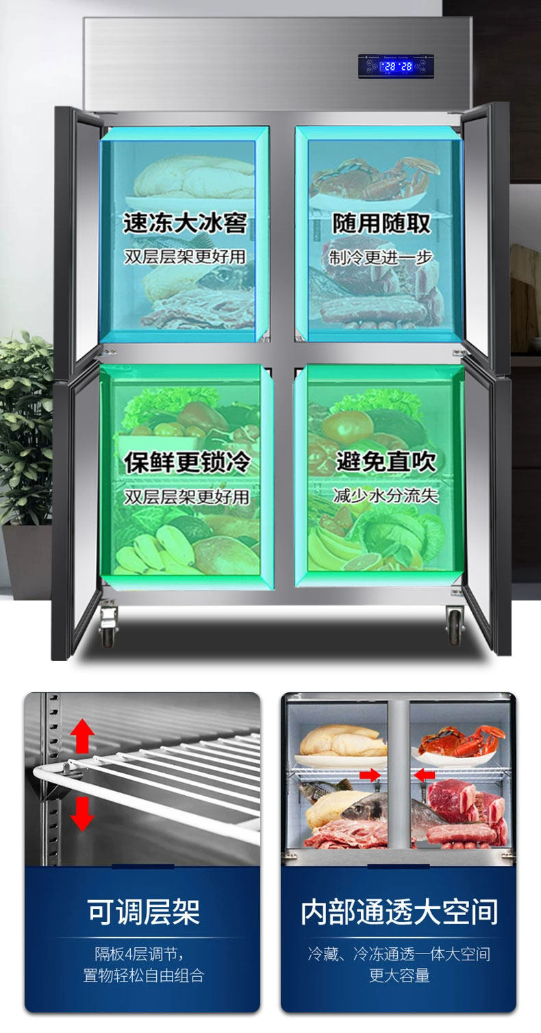 Four-Door Refrigerator Commercial Large-Capacity Fresh-Keeping Refrigerated Display Cabinet 4-Door Vertical Freezer Six-Door Dual-Temperature Freezer