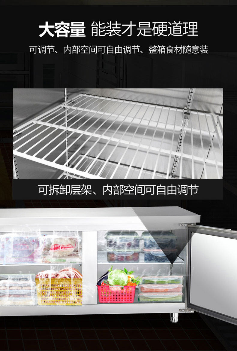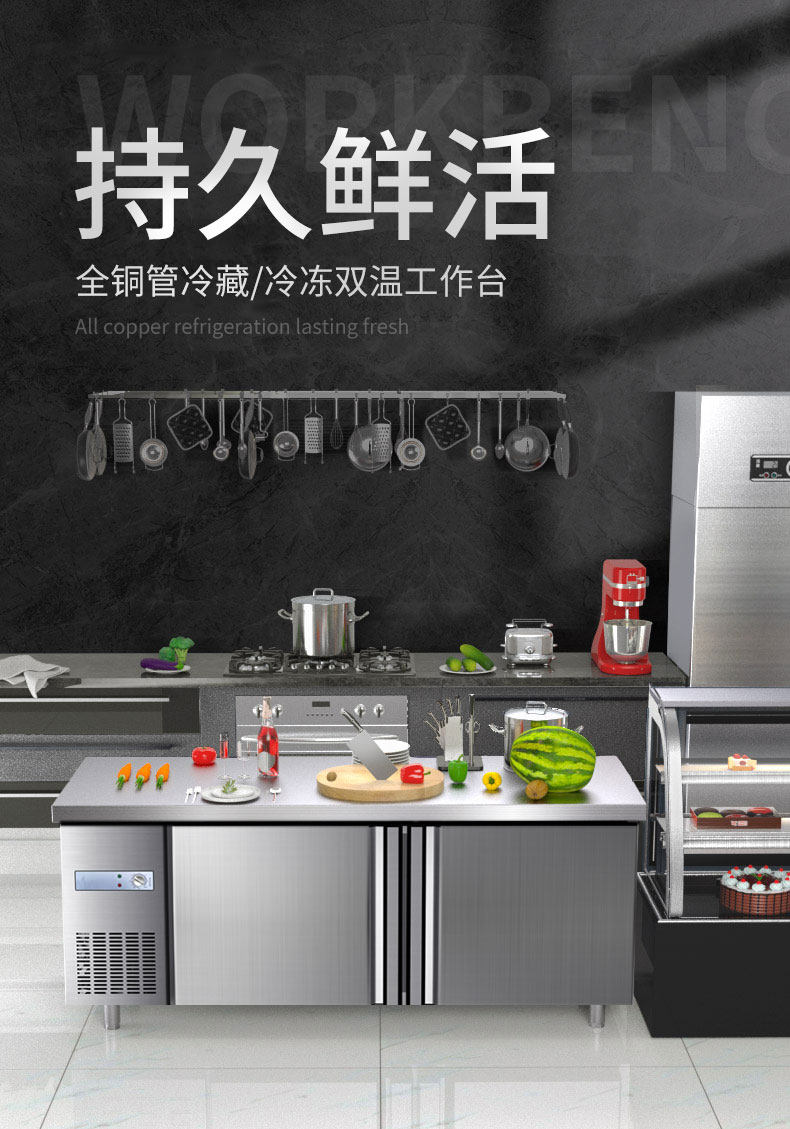 Horizontal Refrigerator Commercial Workbench Kitchen Refrigeration Refrigeration Fresh-Keeping Flat Cold Refrigerator Milk Tea Shop Stainless Steel Operating Table