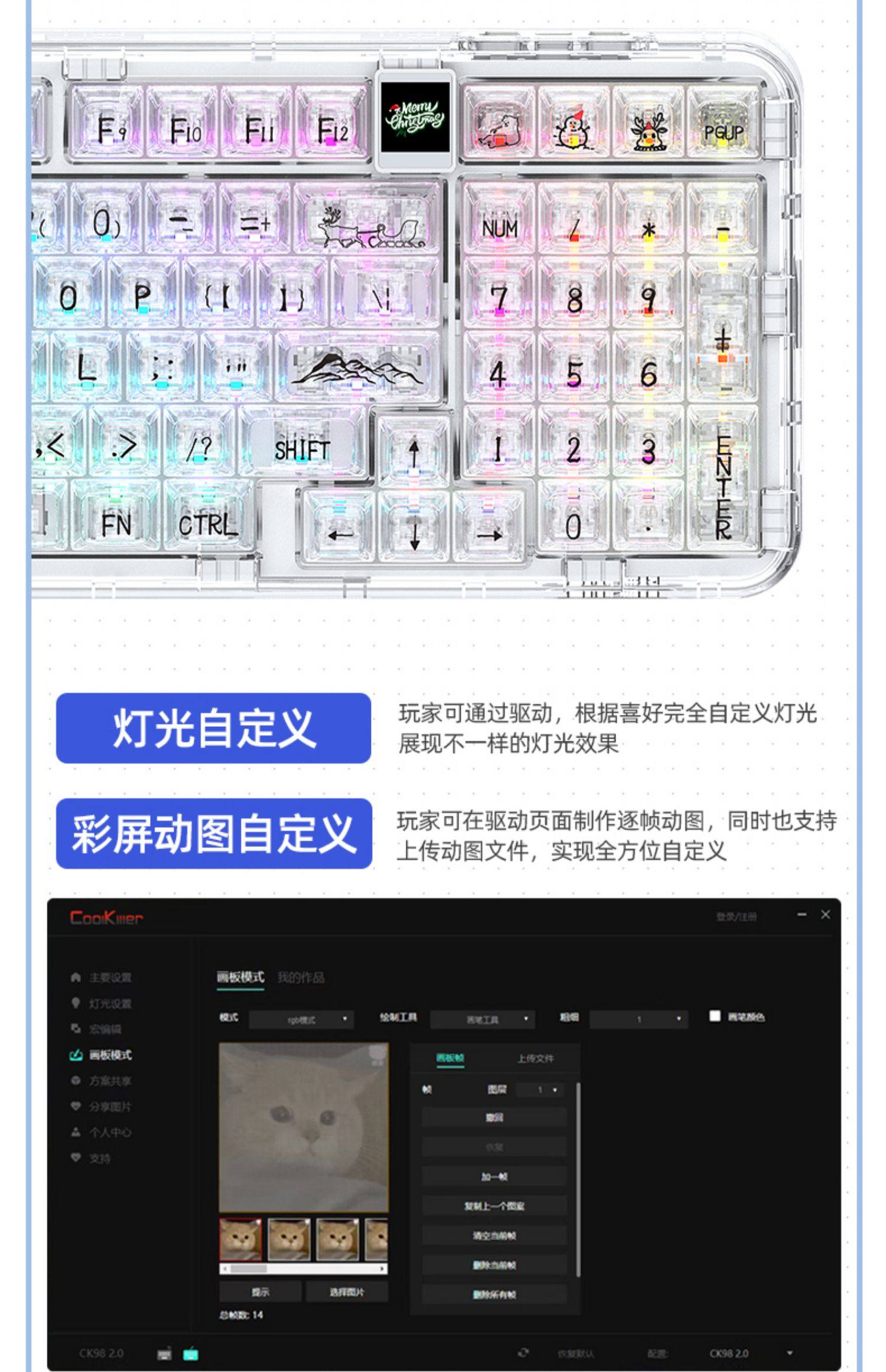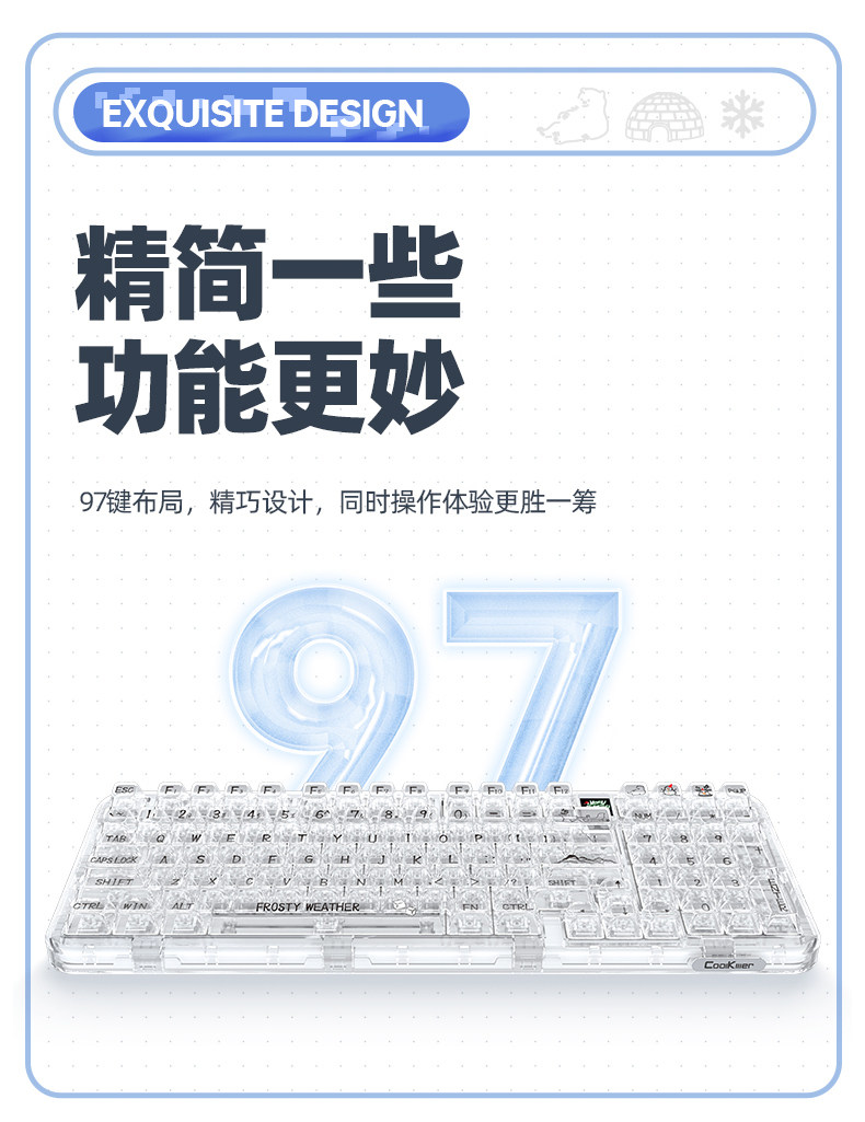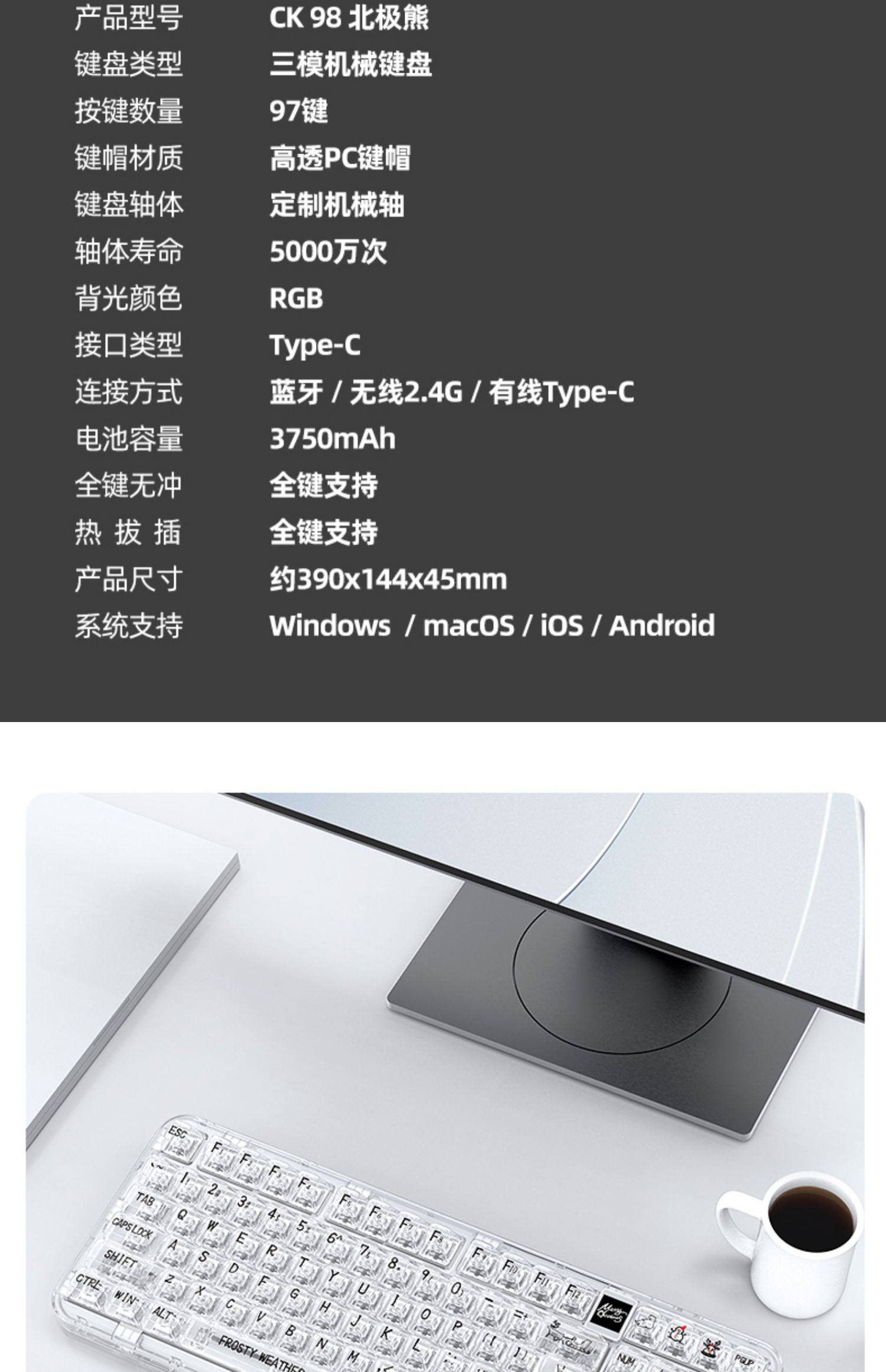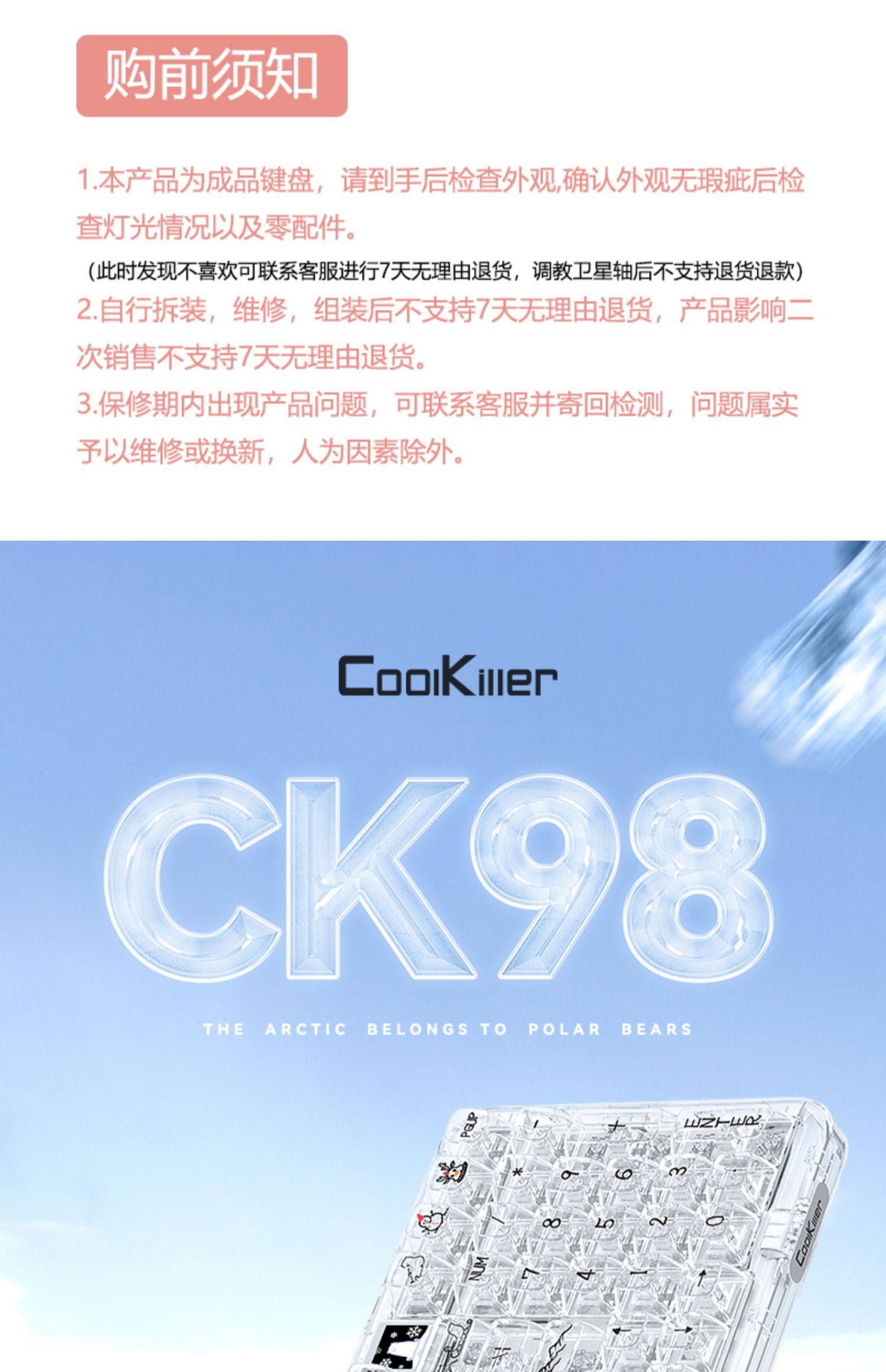 Coolkiller Wireless Three-Mode Ck98 Polar Bear Customized Mechanical Keyboard Three-Mode Transparent 275