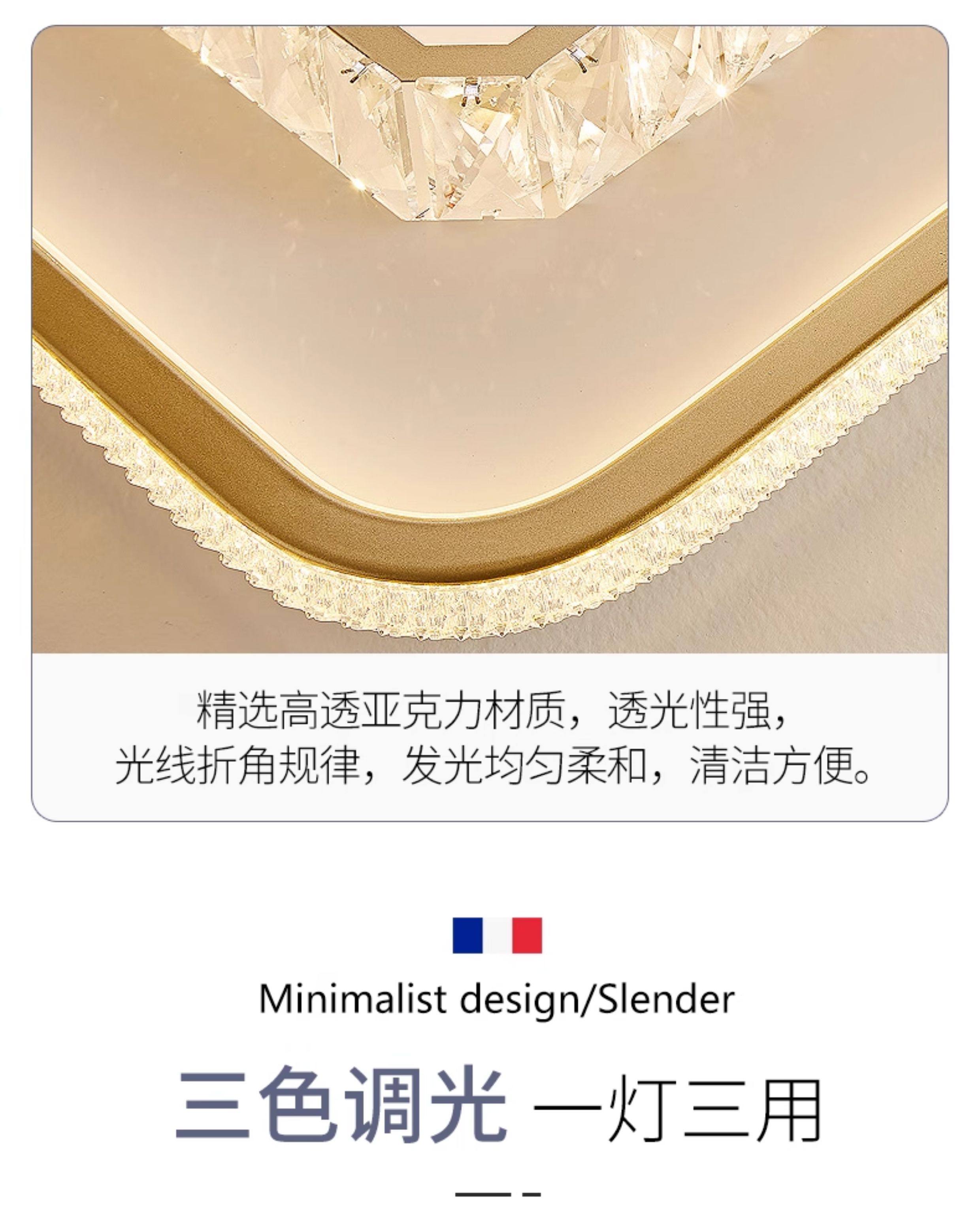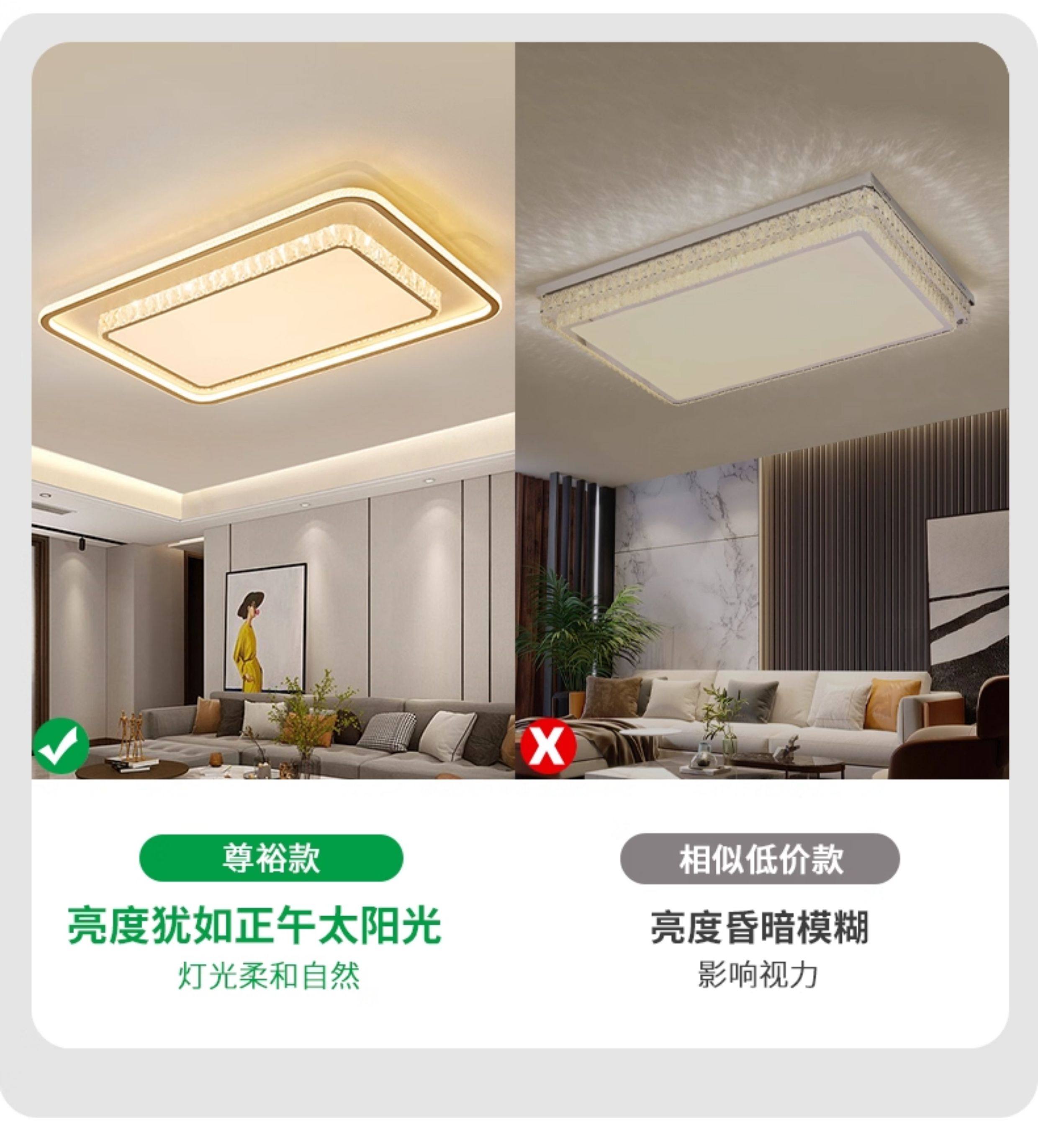 Crystal Lamp, Living Room Ceiling Lamp, Light Luxury Bedroom Lamp, Rectangular Main Lamp, Extra Bright, Zhongshan Lighting Factory Direct Sales Flagship Store