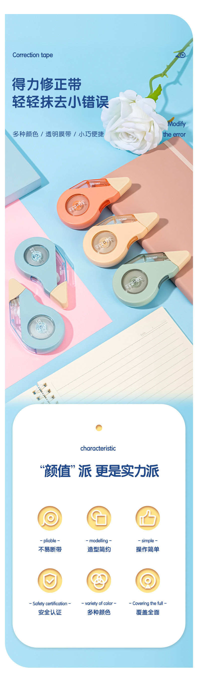Durable Correction Tape for Elementary Students, Silent Correction Tape for Middle School Students, Large Capacity Correction Tape, Affordable and Stylish Correction Tape for Girls, High-Tech Correction Tape for High School Students