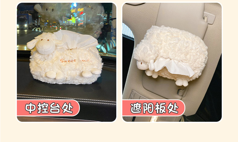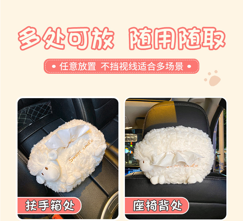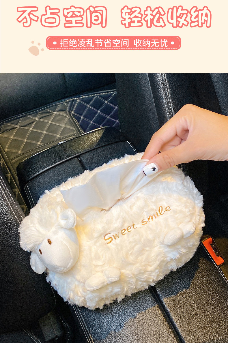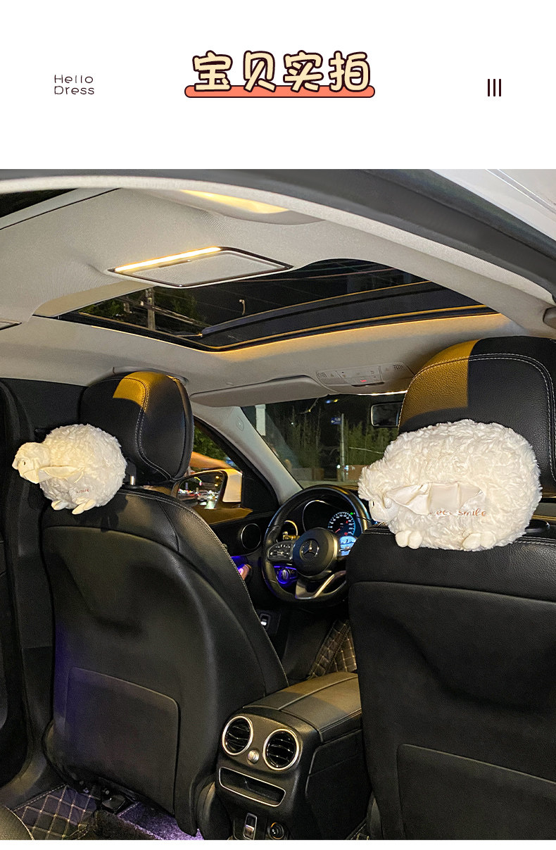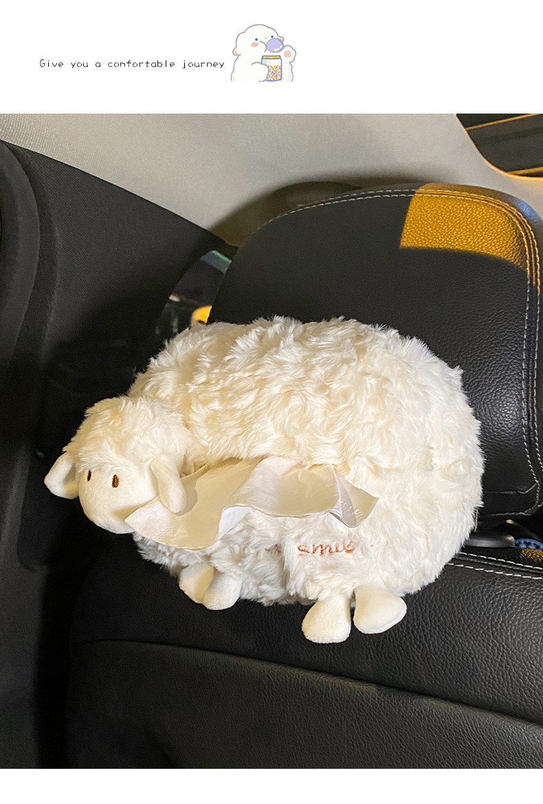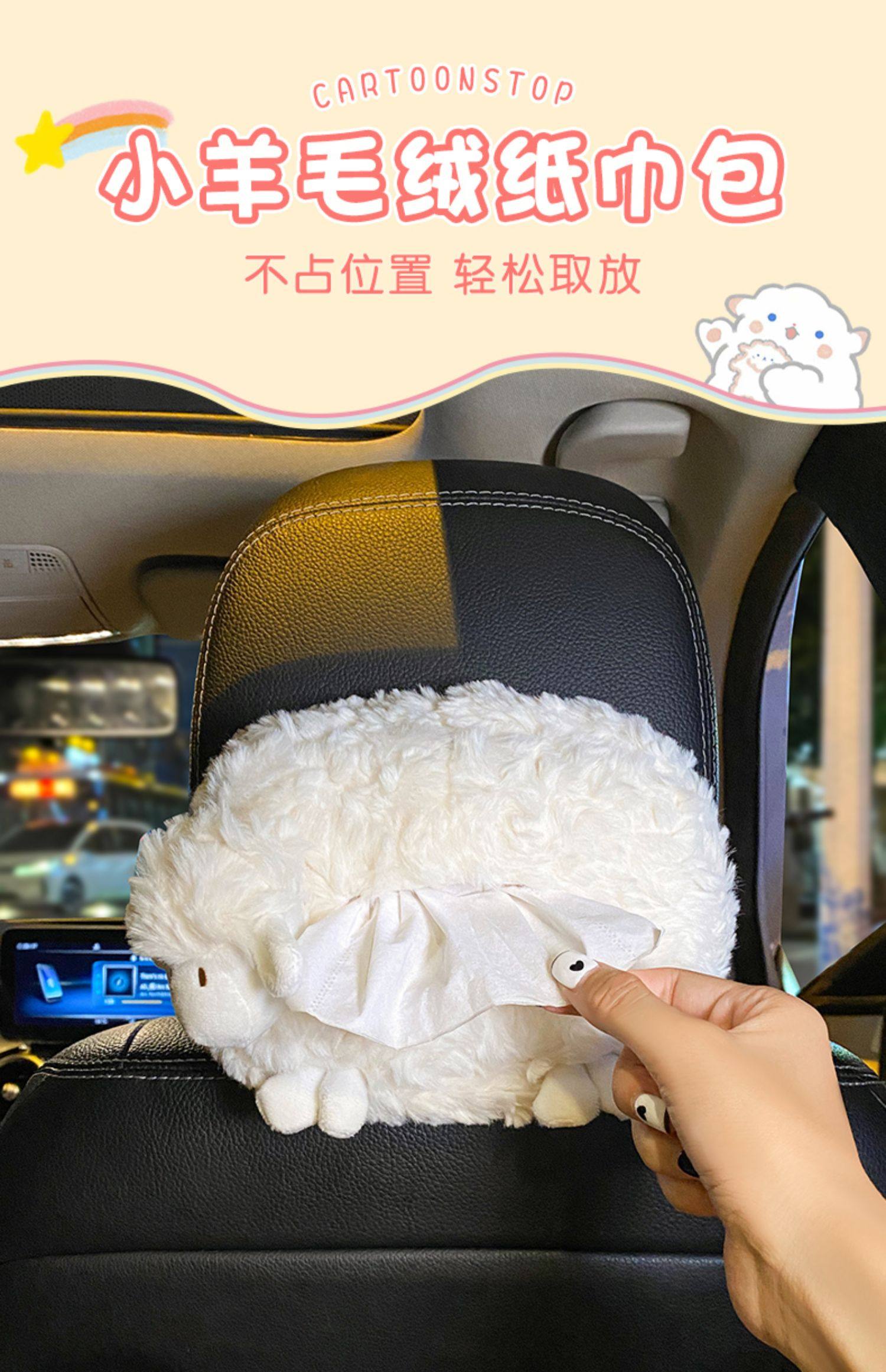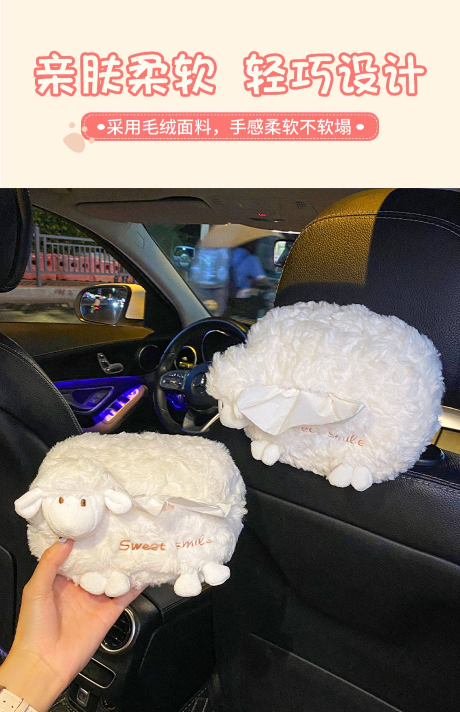 Car Tissue Box, Cute Doll, Ins-Style Little Sheep, Hanging Tissue Bag for Car Interior, Car Supplies
