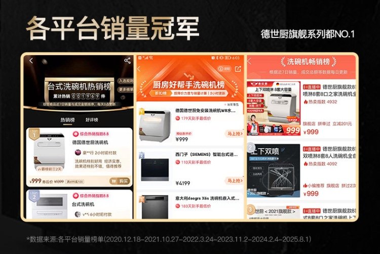 Deshi Kitchen Automatic Countertop 8-Person Large Capacity Top and Bottom Spray Small Household Drying and Disinfecting Q8 Countertop Dishwasher