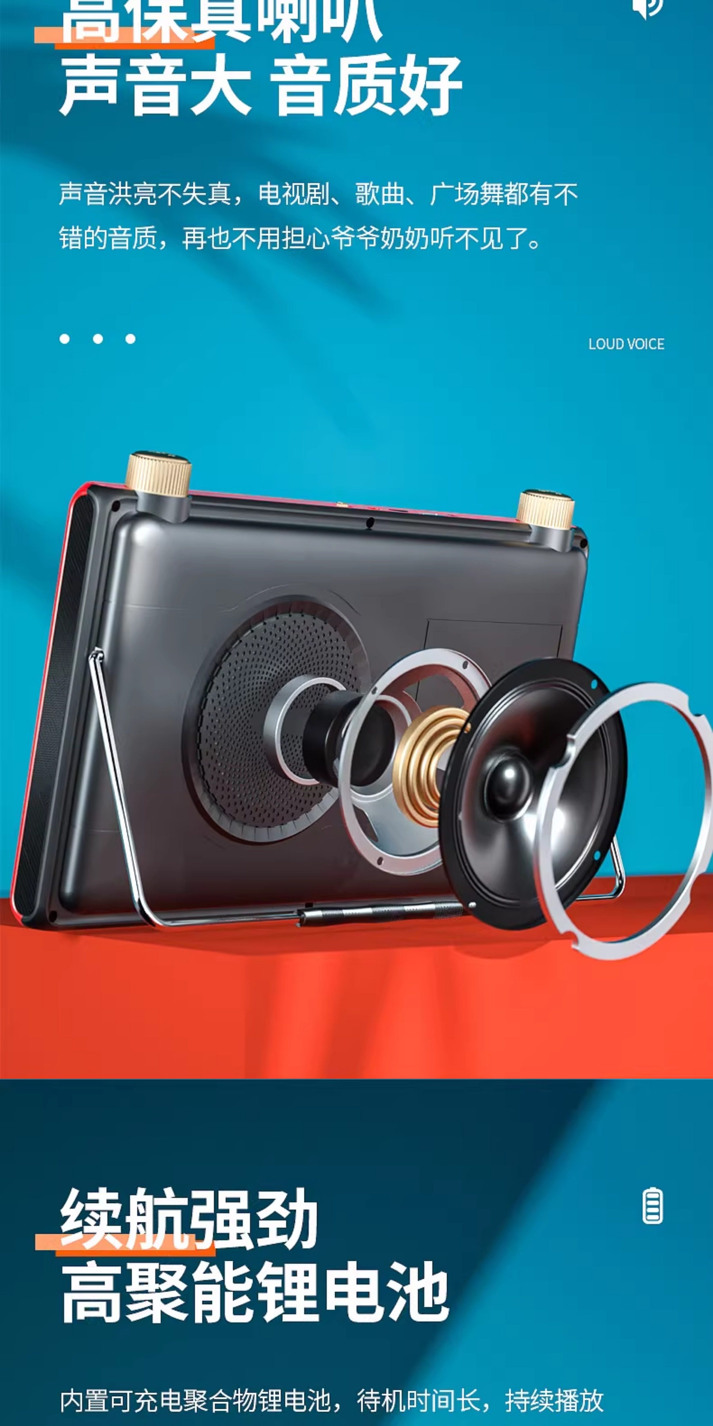 Portable Small Tv for the Elderly to Watch Operas, Dance Videos, Listen to Music and Sing, with Radio Function