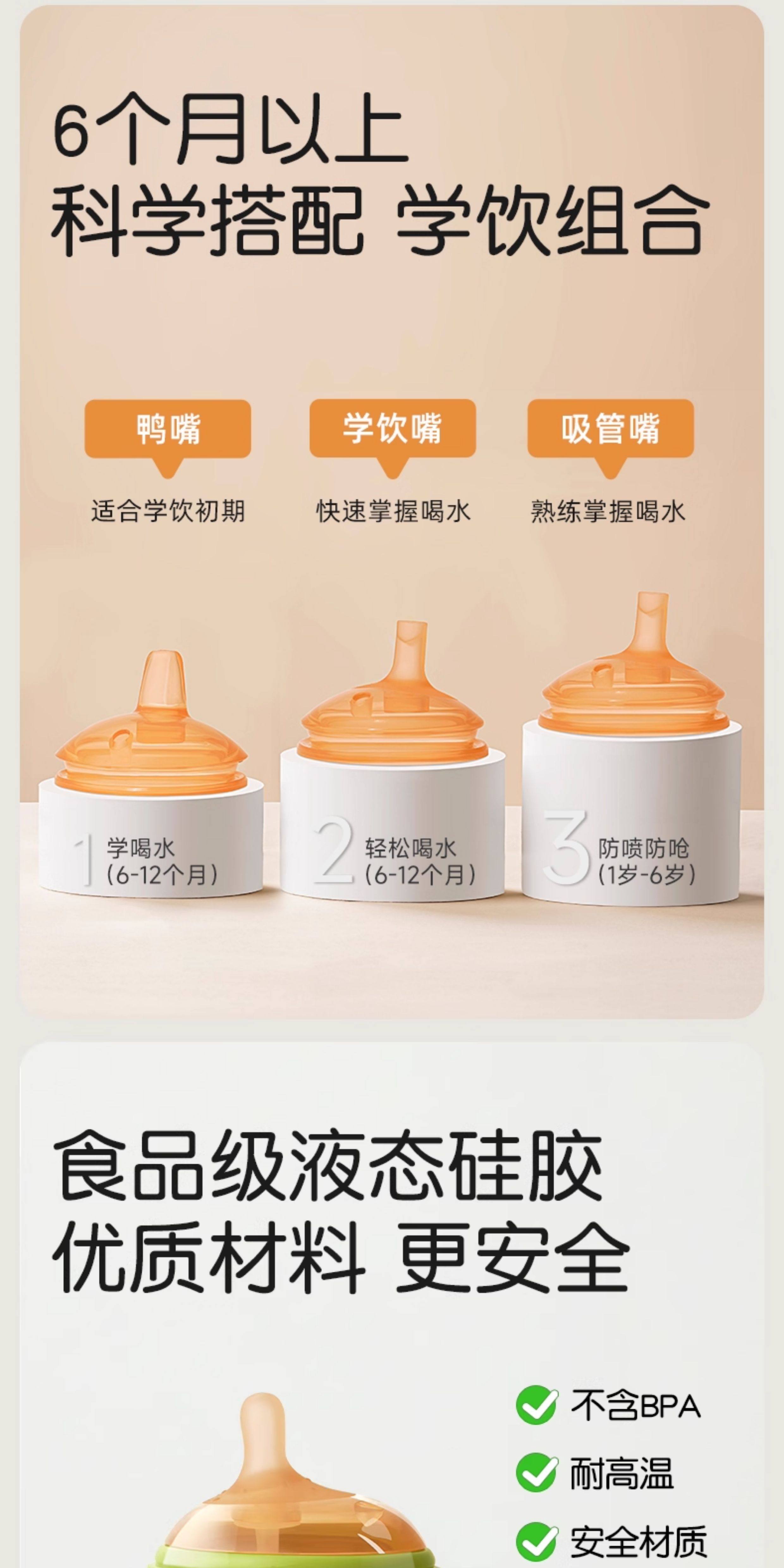 | Color Classification | 260ml [0-6 Months] 1 Hole + 2 Holes,260ml [6-10 Months] 3-Hole Nipple × 2,260ml [6-12 Months] 3 Holes + Duckbill,260ml [6-12 Months] 3 Holes + Cross,260ml [6-12 Months] 3 Holes + Cross + Duckbill,260ml [Learning to Drink Combination] 3 Holes + Cross + Duckbill + Learning to Drink Mouth,260ml [over One Year Old] Straw Mouth × 2 |