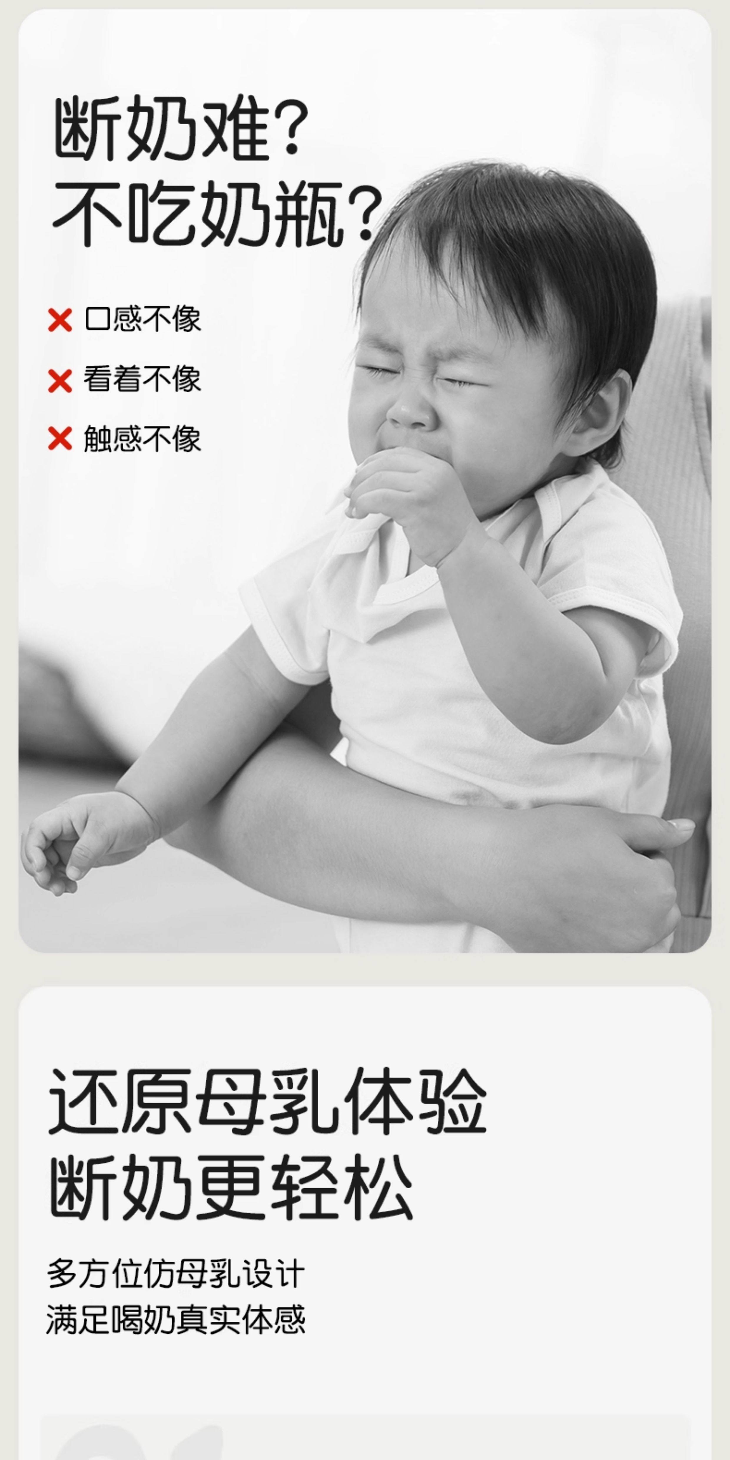Weaning Aid, Breast-Like Bottle for Newborns, Babies over 6 Months, 1 Year Old, 2 Years Old, 3 Years Old, Silicone Anti-Colic