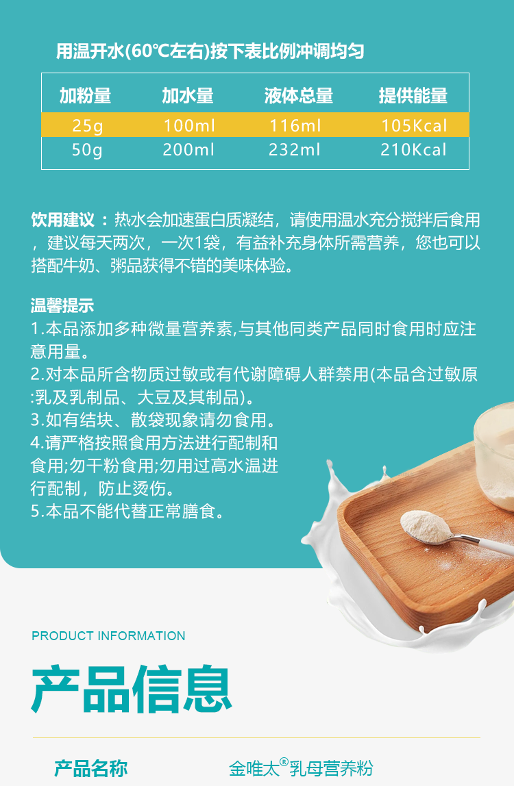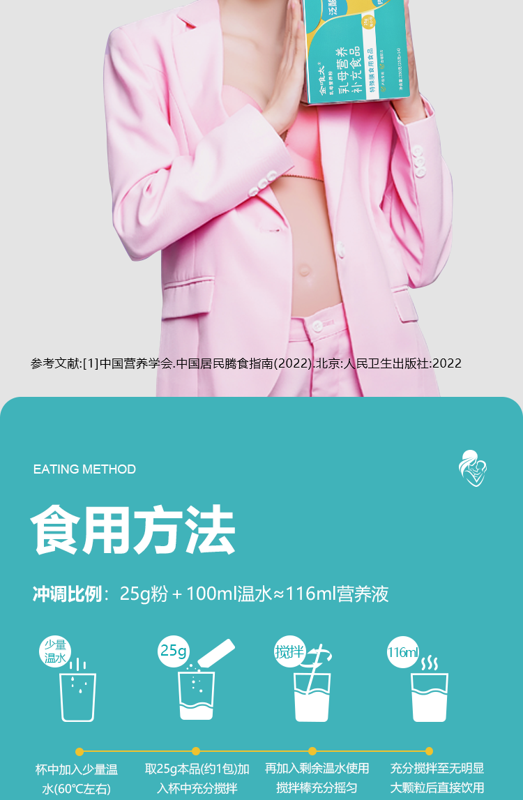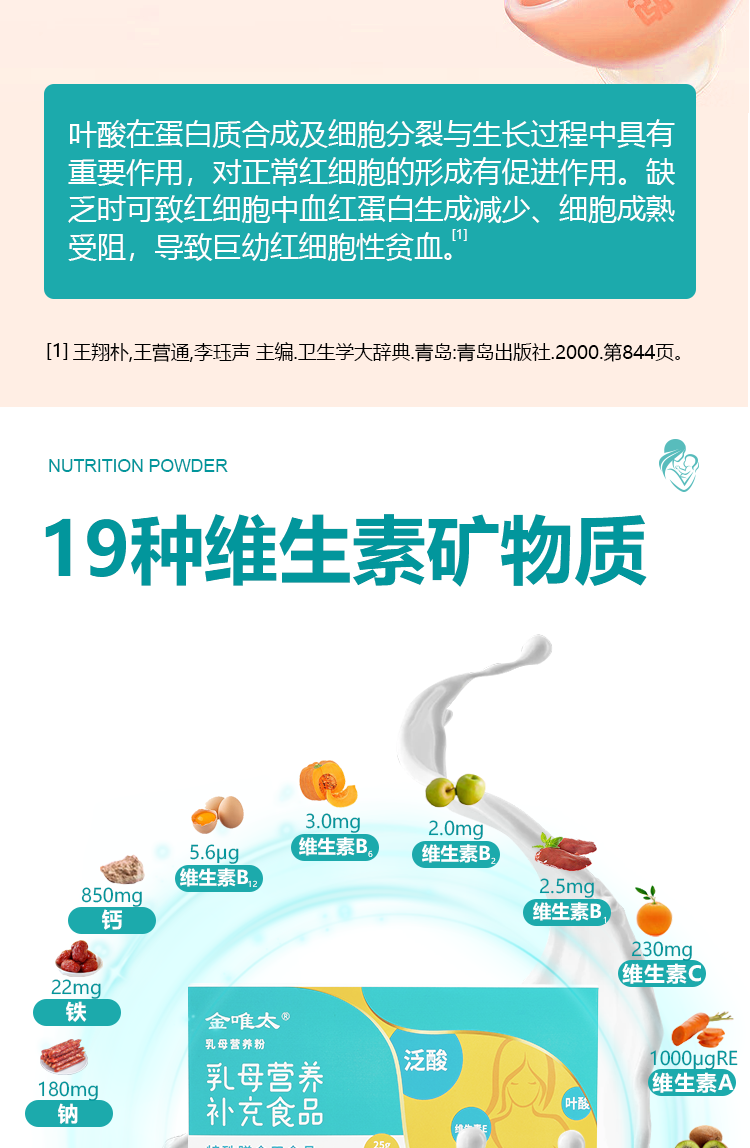 Jinweita Breastfeeding Nutritional Powder Supplements Nutrition for Lactating Mothers, Contains Vitamins and Minerals, Postpartum Folic Acid, Calcium, Iron