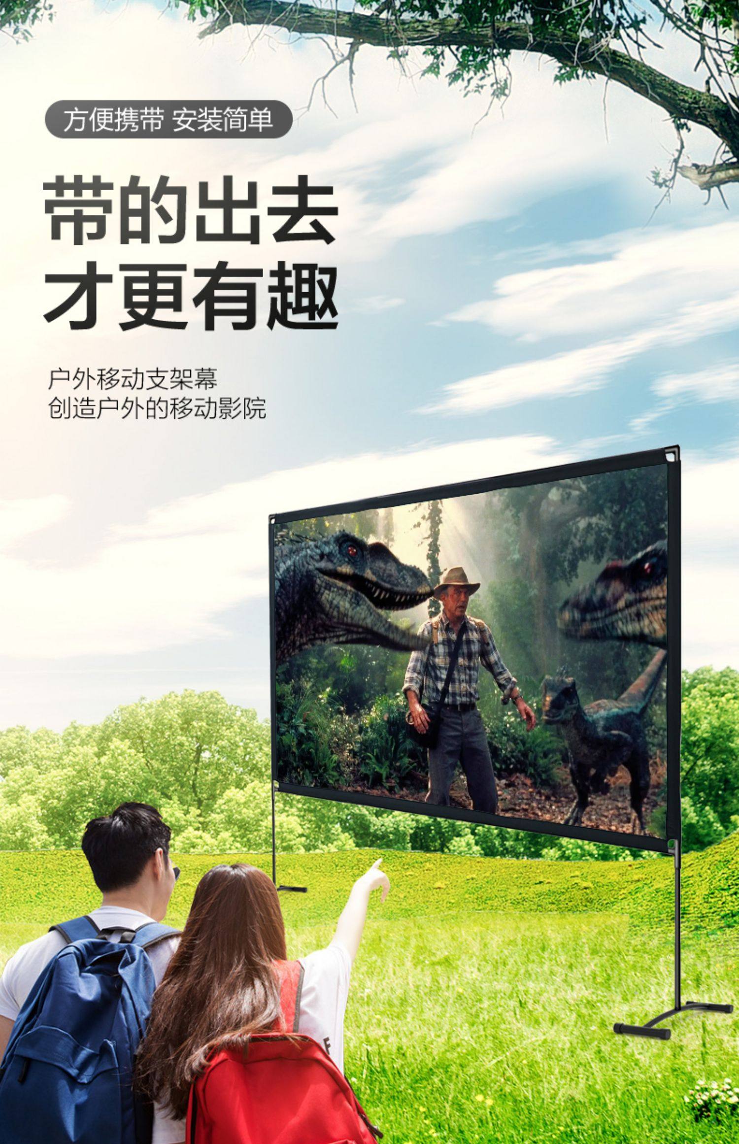 Projector Outdoor Portable Screen Manual Stand Floor-Standing Projection Screen Quick Folding Stand Pole Camping Screen