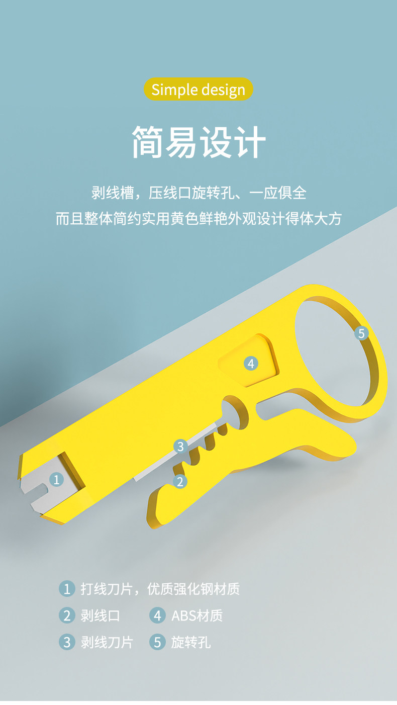 Yellow Small Wire Stripping Knife, Wire Stripping Tool, Wire Stripper, Network Cable Wire Cutter, Telephone Line Wire Cutter, Small Wire Stripping Knife