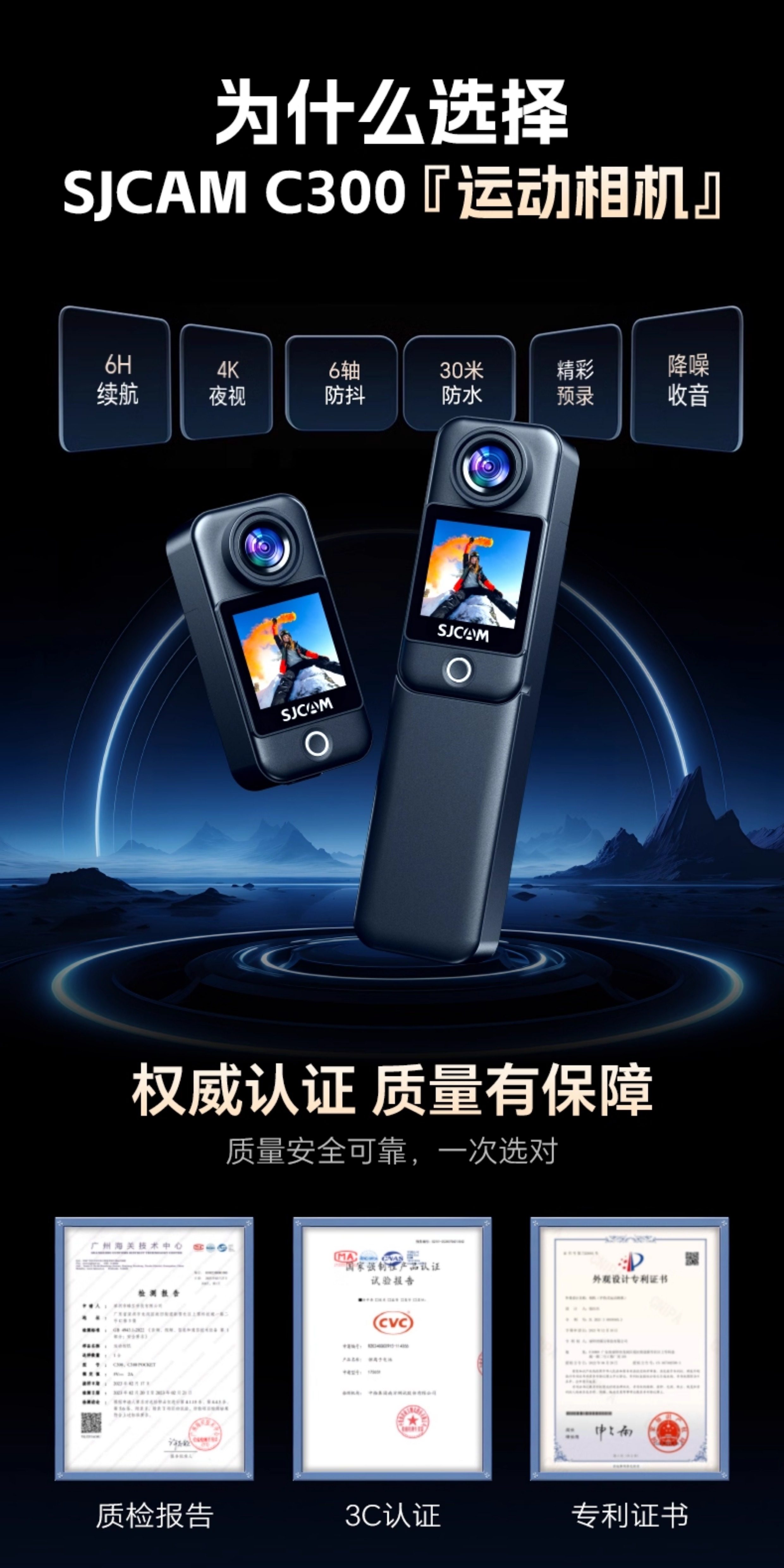 Sjcam Speedy Fox C300 Thumb Action Camera Motorcycle Driving Recorder Camera 360 Panoramic Vlog
