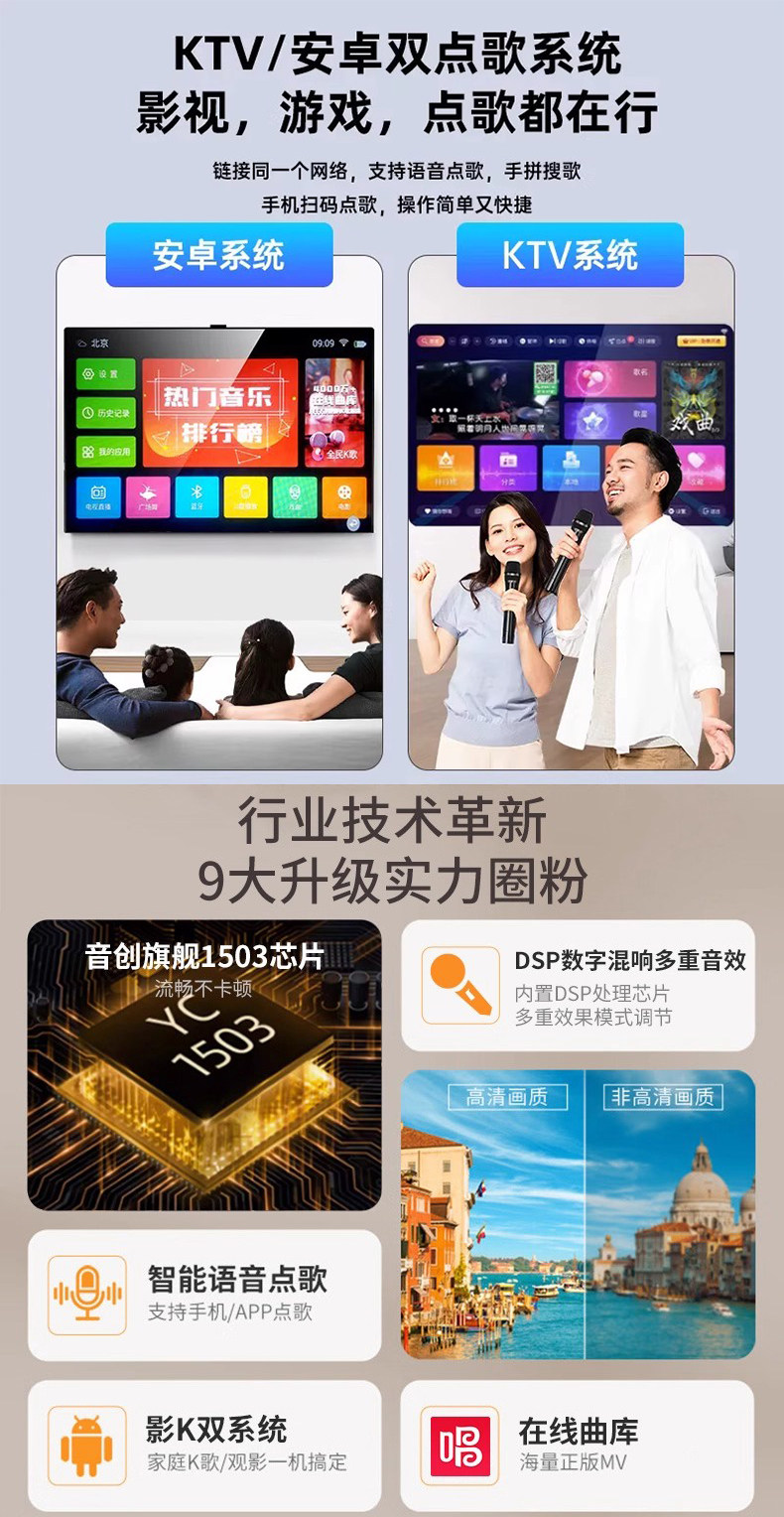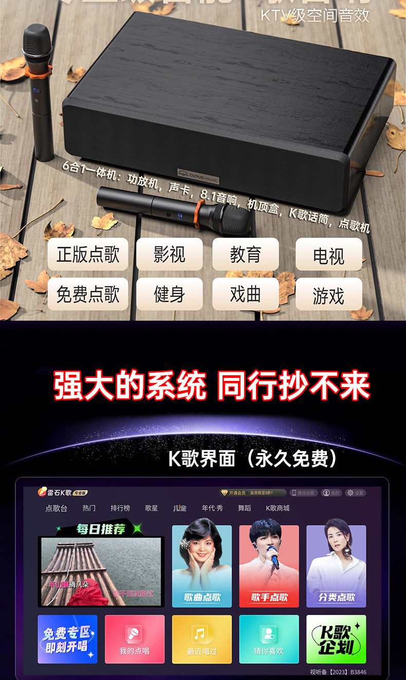 | Color Classification | 【Beware of Counterfeits and Substandard Products】Look for the Mark. Inferior Products on the Market Will Not Have the (Do Not Purchase This Item).★,[Tmall Top 5 List Top1] Top 1 in Hot Selling★You Can’T Go Wrong Buying According to the List!★Consult Customer Service for New Product Discounts (Do Not Take This Photo)★,[Upgraded Dual-Mic Version Black] 800W Power Sound Field✅Get 1 Year of Vip Membership for K Song✅Ktv Level Bel Canto✅Millions of Music Library Movies and Tv Shows,[Top Version with Dual Microphones in Black] 1000W Power Sound Field✅Free Karaoke + Film and Television Permanent Vip Membership✅Professional-Grade Vocal Tuning✅Millions of Music Library Movies and Tv Shows,【Premium Dual-Mic Black Edition】1200W Power Sound System✅Free Karaoke + Film and Television + Live Broadcast Permanent Vip Membership✅Professional-Grade Sound Card Tuning✅Millions of Music Library Movies and Tv Shows✅External Speakers Available★,[Extreme Dual Wheat Version Black] 1200W Power Sound Field★True 7-Driver Audio✅Free Karaoke + Film and Television + Live Broadcast Permanent Vip Membership✅Professional-Grade Sound Card Tuning✅Millions of Music Library Movies and Tv Shows✅External Speakers Available★★,【Authentic Dongguan Source Factory】 【Beware of Counterfeits and Pirated Goods from Shenzhen Huaqiangbei】 over 1000+ Customers Have Been Scammed (Do Not Purchase This Item)★,[Store Manager Promise] Enjoy Day Delivery⭐60-Day Money-Back Guarantee if You Are Not Satisfied with the Trial⭐36-Month Warranty (Do Not Take This Item)★,[Upgraded Dual-Mic Version Black] 800W Power Sound Field✅Get 1 Year of Vip Membership for K Song✅Ktv Level Bel Canto✅Millions of Music Library Movies and Tv Shows✅✅,[Top Version with Dual Microphones in Black] 1000W Power Sound Field✅Free Karaoke + Film and Television Permanent Vip Membership✅Professional-Grade Vocal Tuning✅Millions of Music Library Movies and Tv Shows✅,【Premium Dual-Mic Black Edition】1500W Power Sound System★True 8-Unit Sound✅Free Karaoke + Film and Television + Live Broadcast Permanent Vip Membership✅Professional Sound Card Tuning✅Millions of Music Library Movies and Tv Shows✅External Speakers/Subwoofer Can Be Connected✅,[Extreme Dual Wheat Version Black] 1200W Power Sound Field★True 7-Driver Audio✅Free Karaoke + Film and Television + Live Broadcast Permanent Vip Membership✅Professional-Grade Sound Card Tuning✅Millions of Music Library Movies and Tv Shows✅External Speakers Available★ |