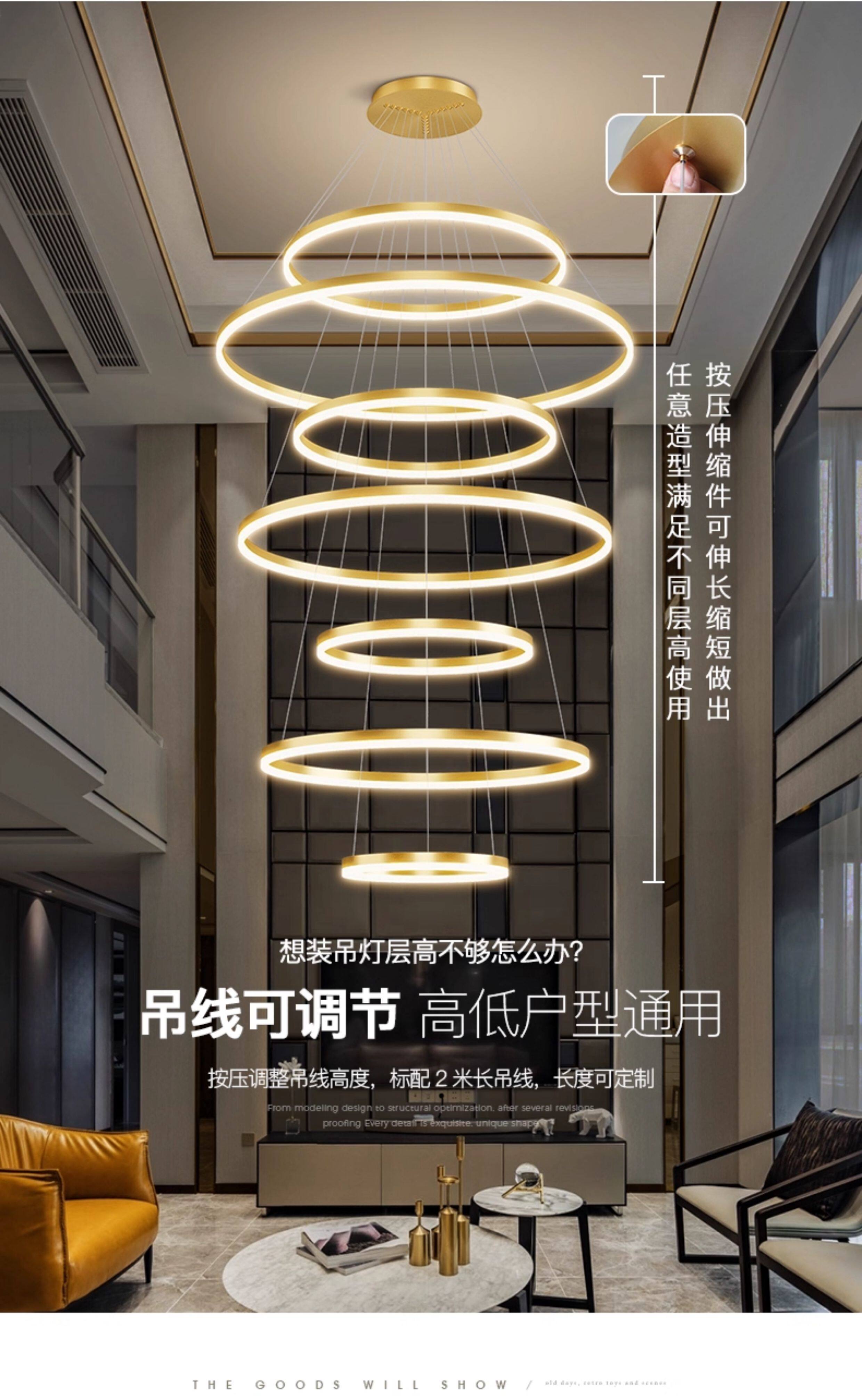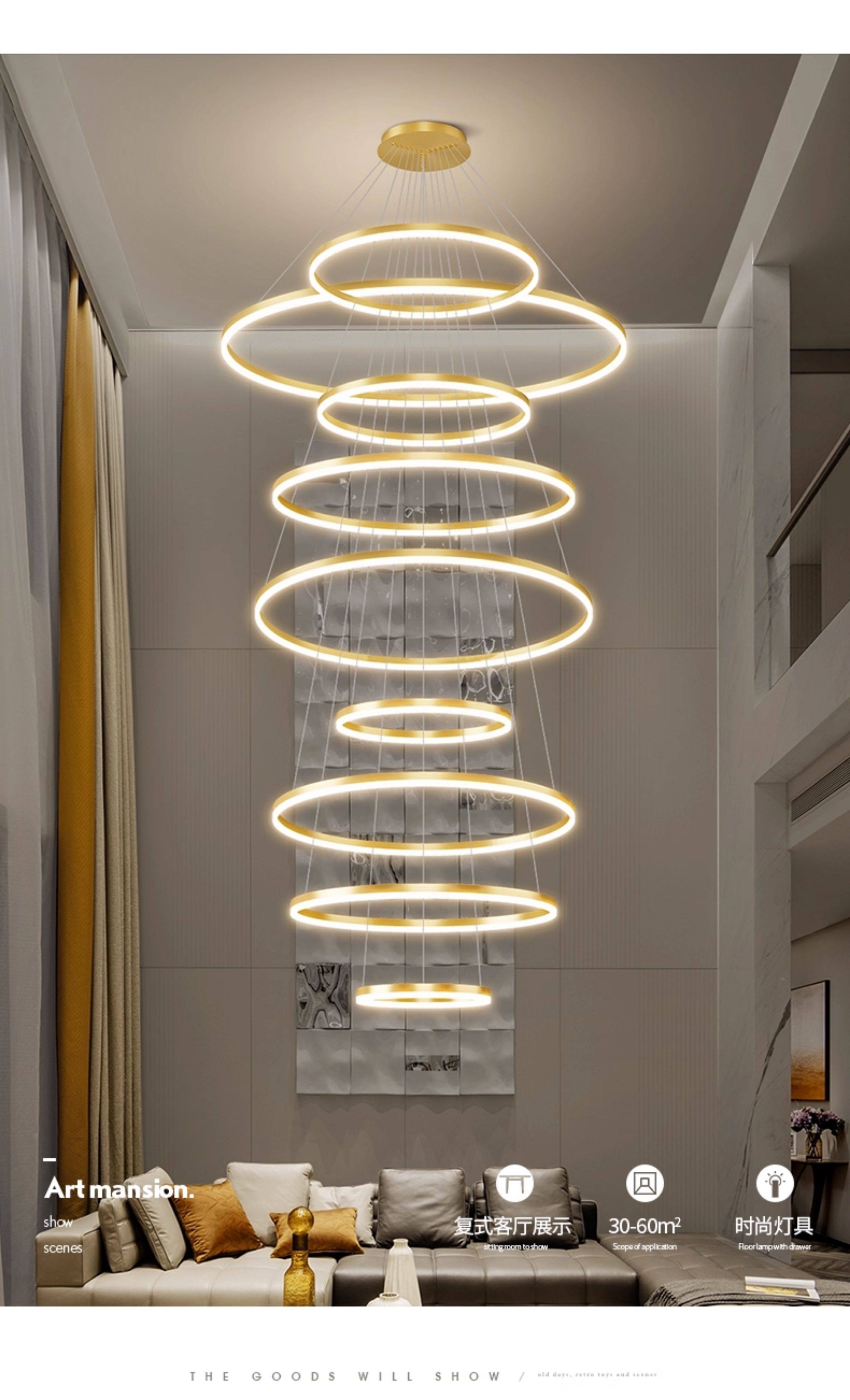 Lamps, Living Room Chandelier, Mezzanine Light Luxury, Simple Modern Chandelier, Led Villa High-Ceiling Duplex Chandelier