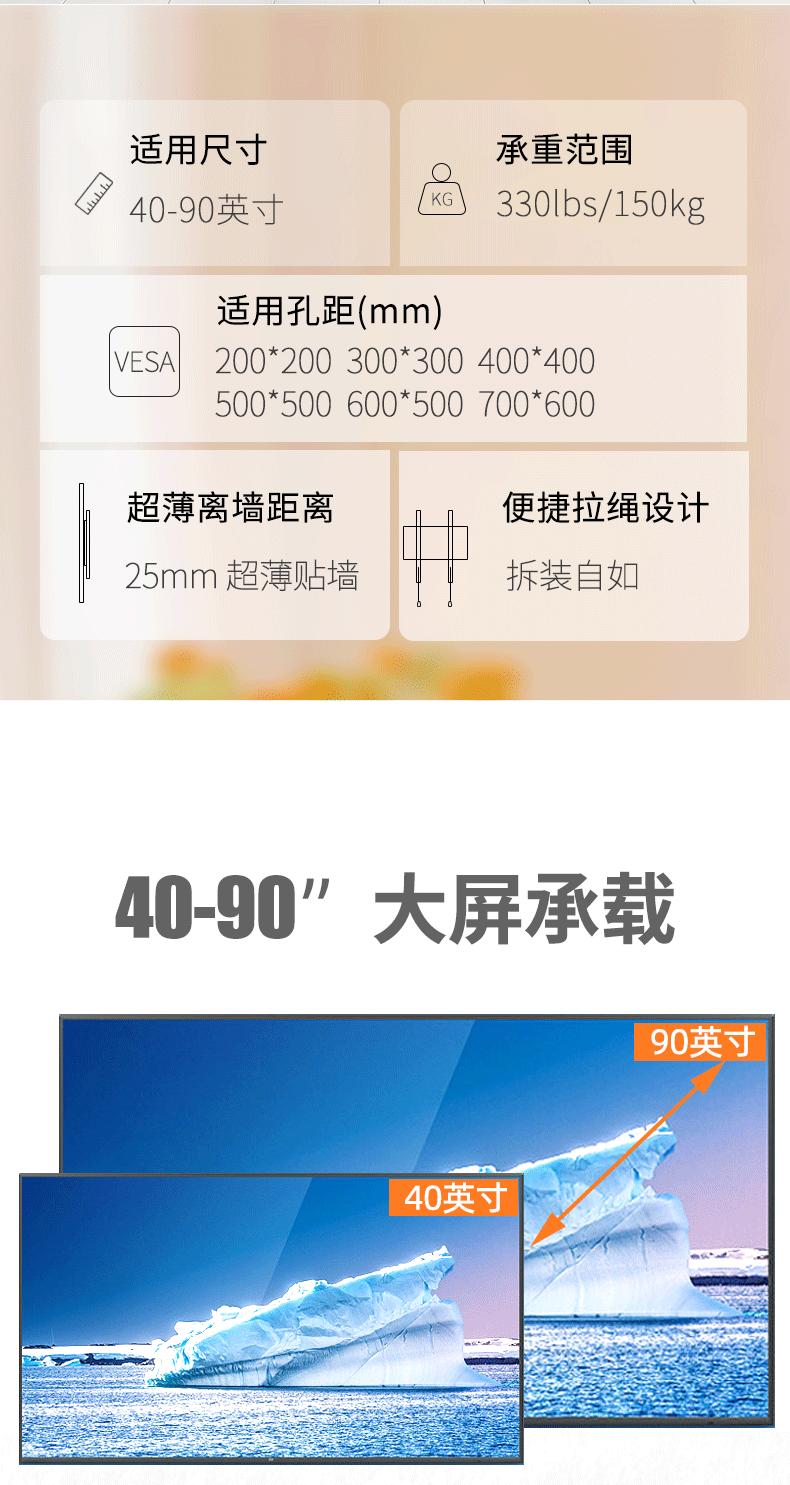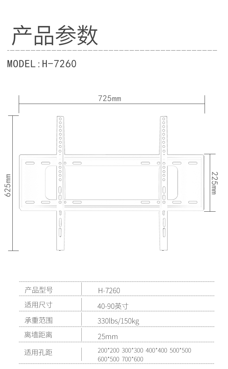 Tv Rack H7260 Wall Bracket Suitable for Skyworth Tcl Xiaomi 55 65 75 82 86inch Wall Hanging