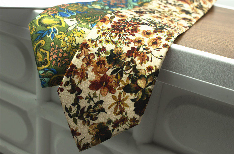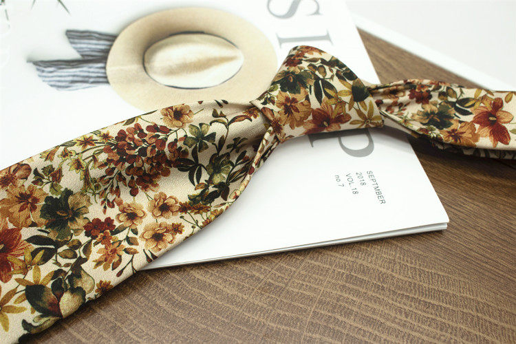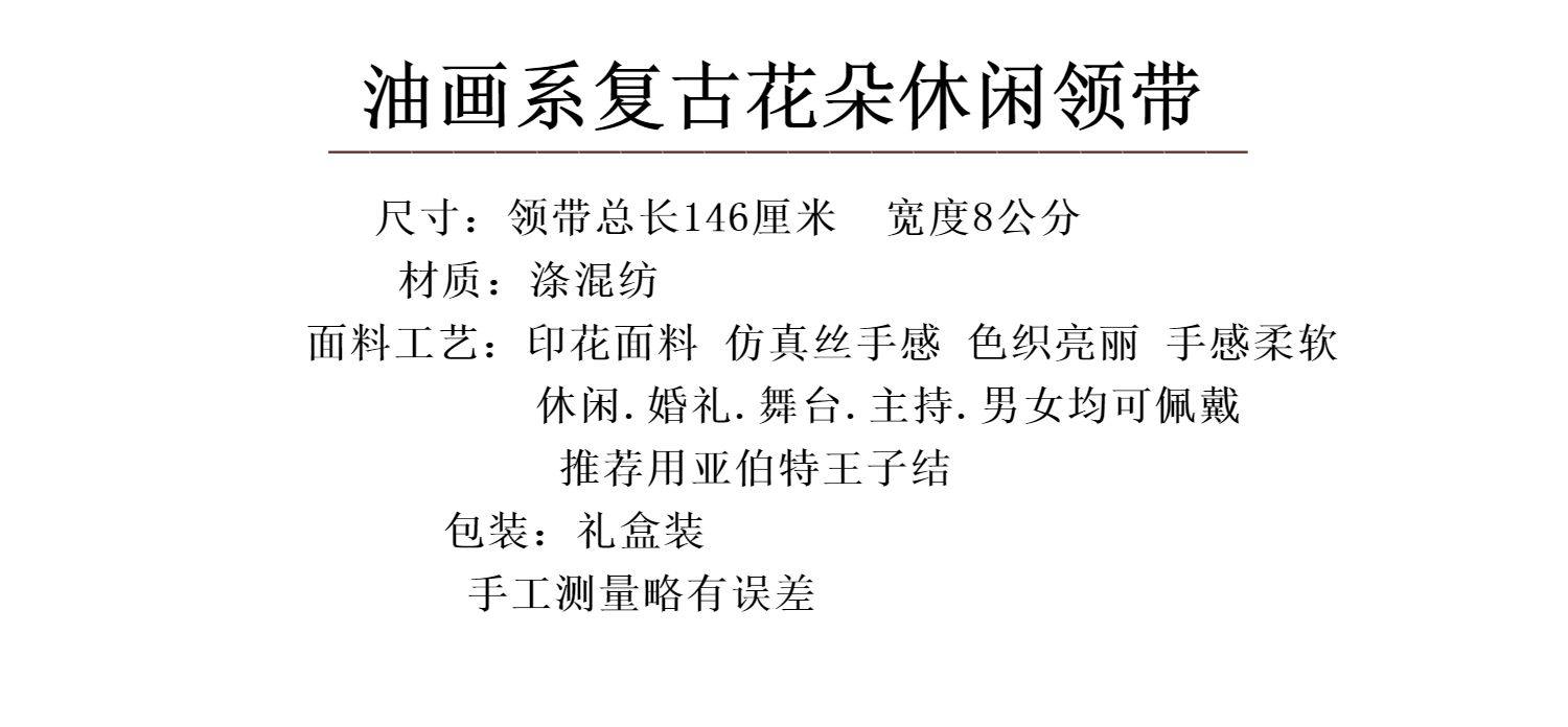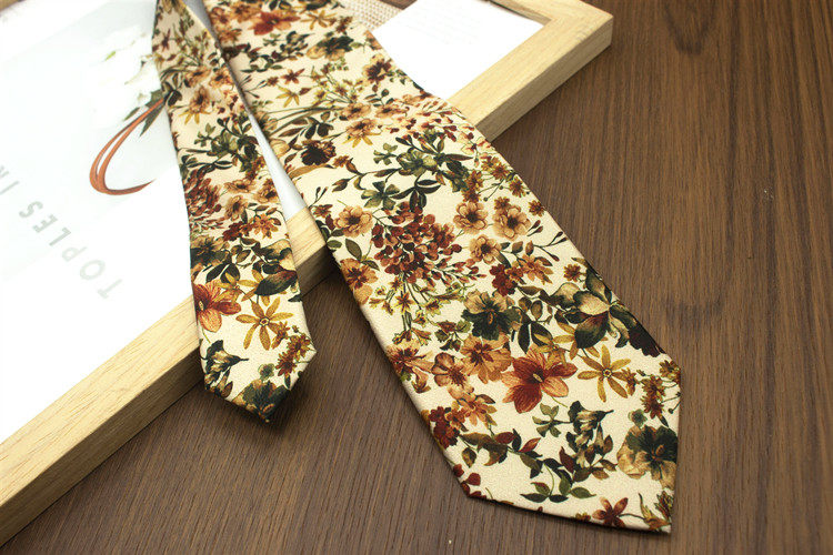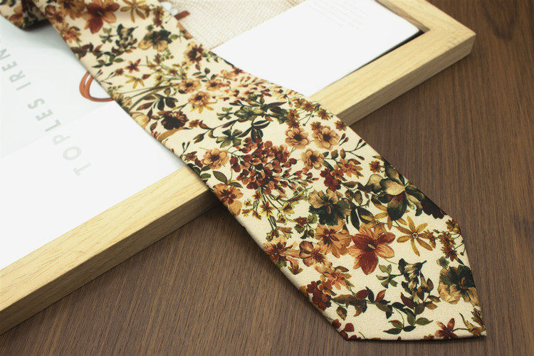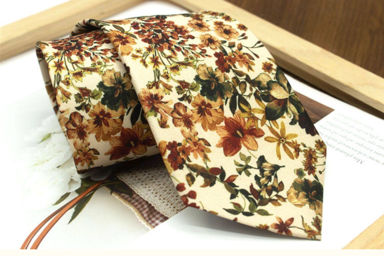 Oil Painting Series Floral Print Vintage Mysterious Pattern Men's and Women's Casual Tie Wedding Stage Coffee Color Yellow