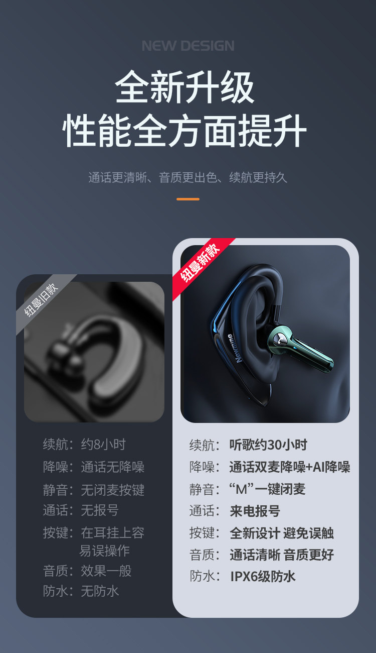 Newman Bluetooth Headset Wireless Single-Ear Ear-Hook Type Heavy Bass Running Sports Business Car Driving Headset Sl88