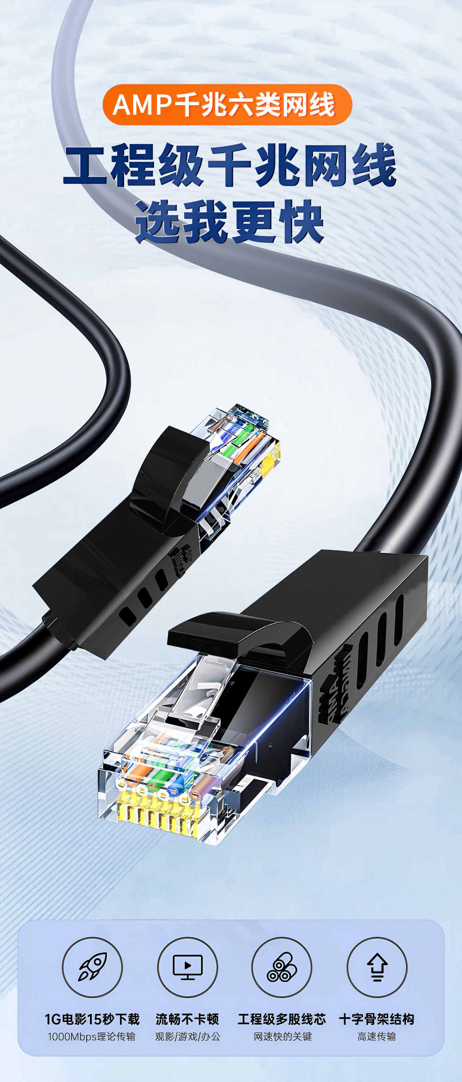 | Color Classification | Black[Category 6 Gigabit],White[Category 6 Gigabit],Gray[Category 6 Gigabit],Blue[Category 6 Gigabit],Yellow[Category 6 Gigabit],Red[Category 6 Gigabit],Green[Category 6 Gigabit],Orange[Category 6 Gigabit],Black Oxygen-Free Copper[Category 6A 10 Gigabit]The Network Is Faster,White Oxygen-Free Copper[Category 6A 10 Gigabit]The Network Is Faster,Gray Oxygen-Free Copper[Category 6A 10 Gigabit]The Network Is Faster,Sky Blue Oxygen-Free Copper[Category 6A 10 Gigabit]The Network Is Faster,Blue Oxygen-Free Copper[Category 6A 10 Gigabit]The Network Is Faster,White[Category 5E Gigabit],Black[Category 5E Gigabit] |