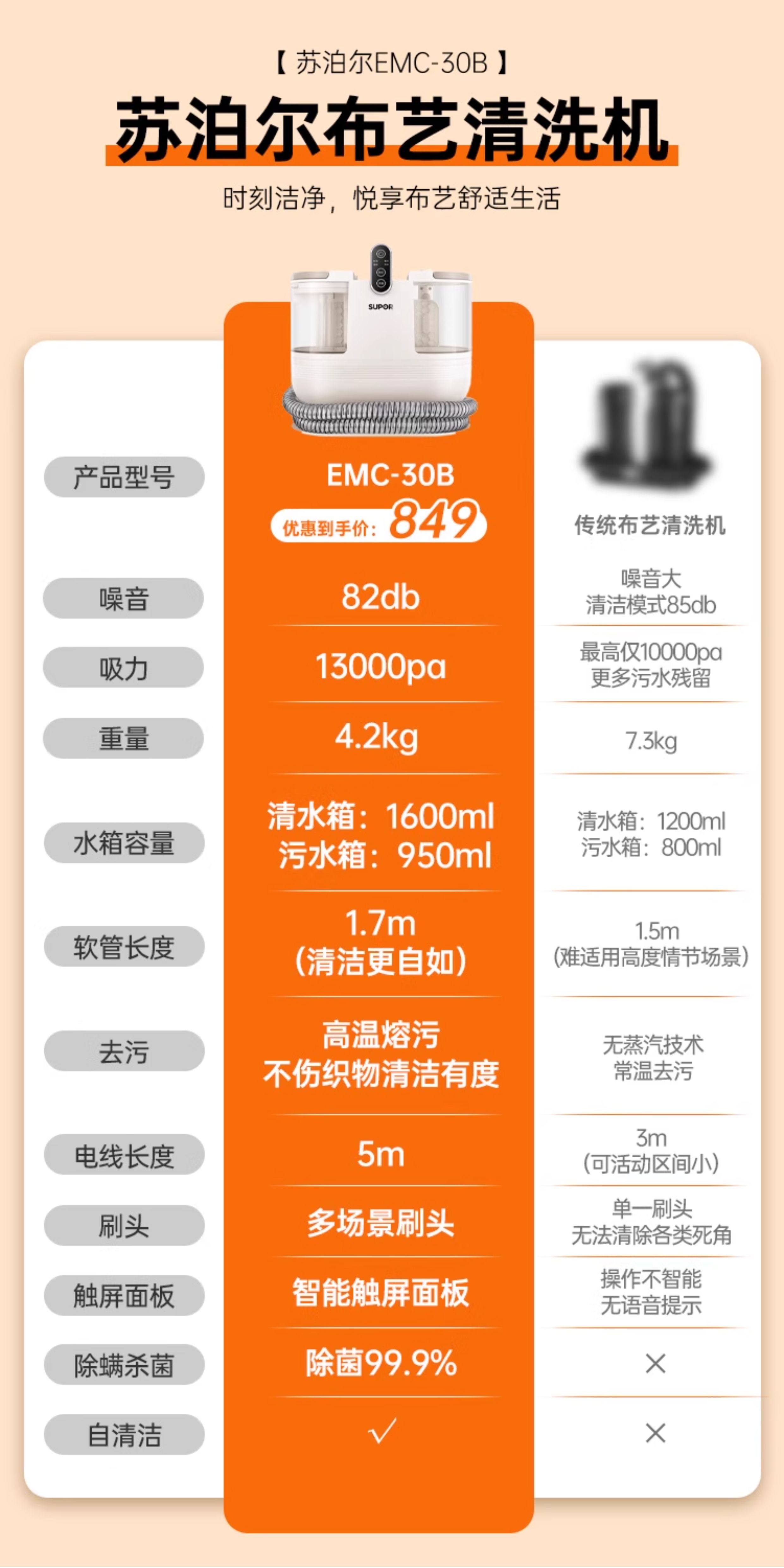 Supor Fabric Sofa Cleaning Machine High Temperature No-Disassembly Spray-Extraction Integrated Carpet Curtain Mattress Cleaning Machine 30B