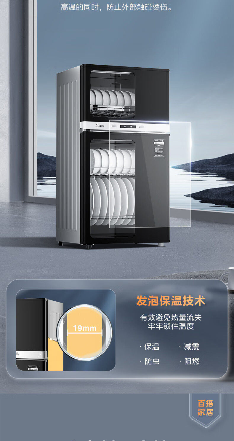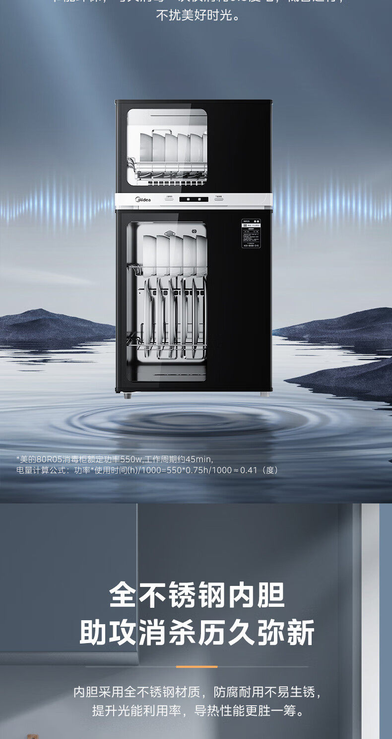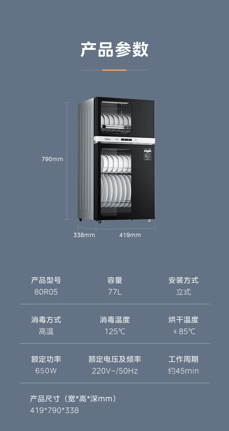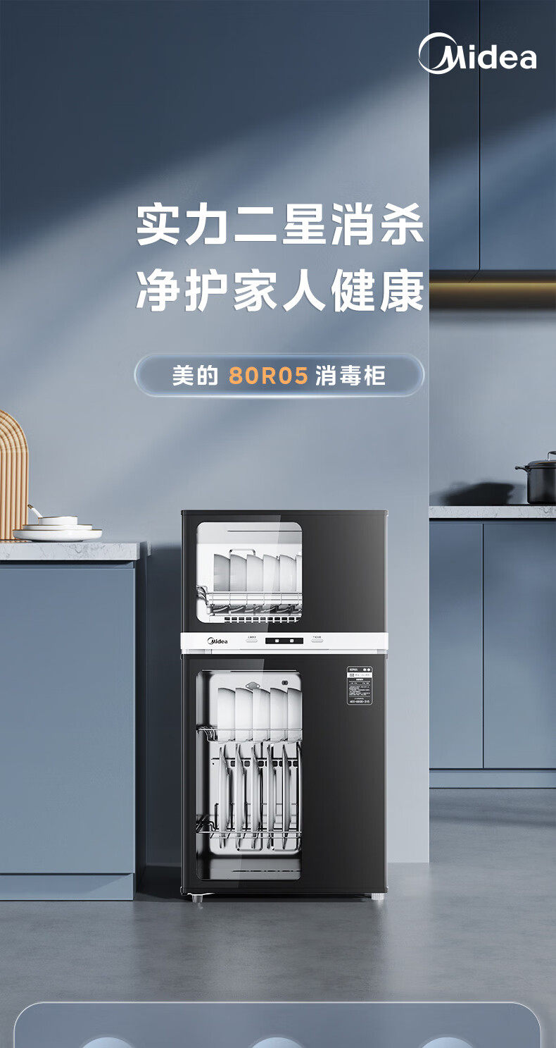 Midea Disinfection Cabinet for Home Use, Medium Temperature Drying, Antibacterial, High Temperature Disinfection, All-In-One Small Vertical Disinfection Cupboard 80R05