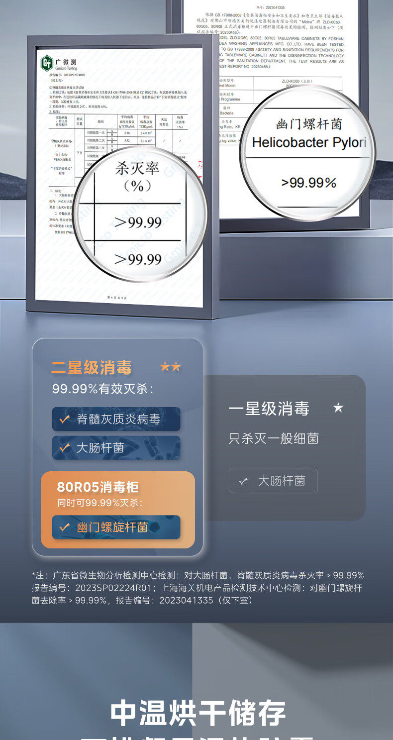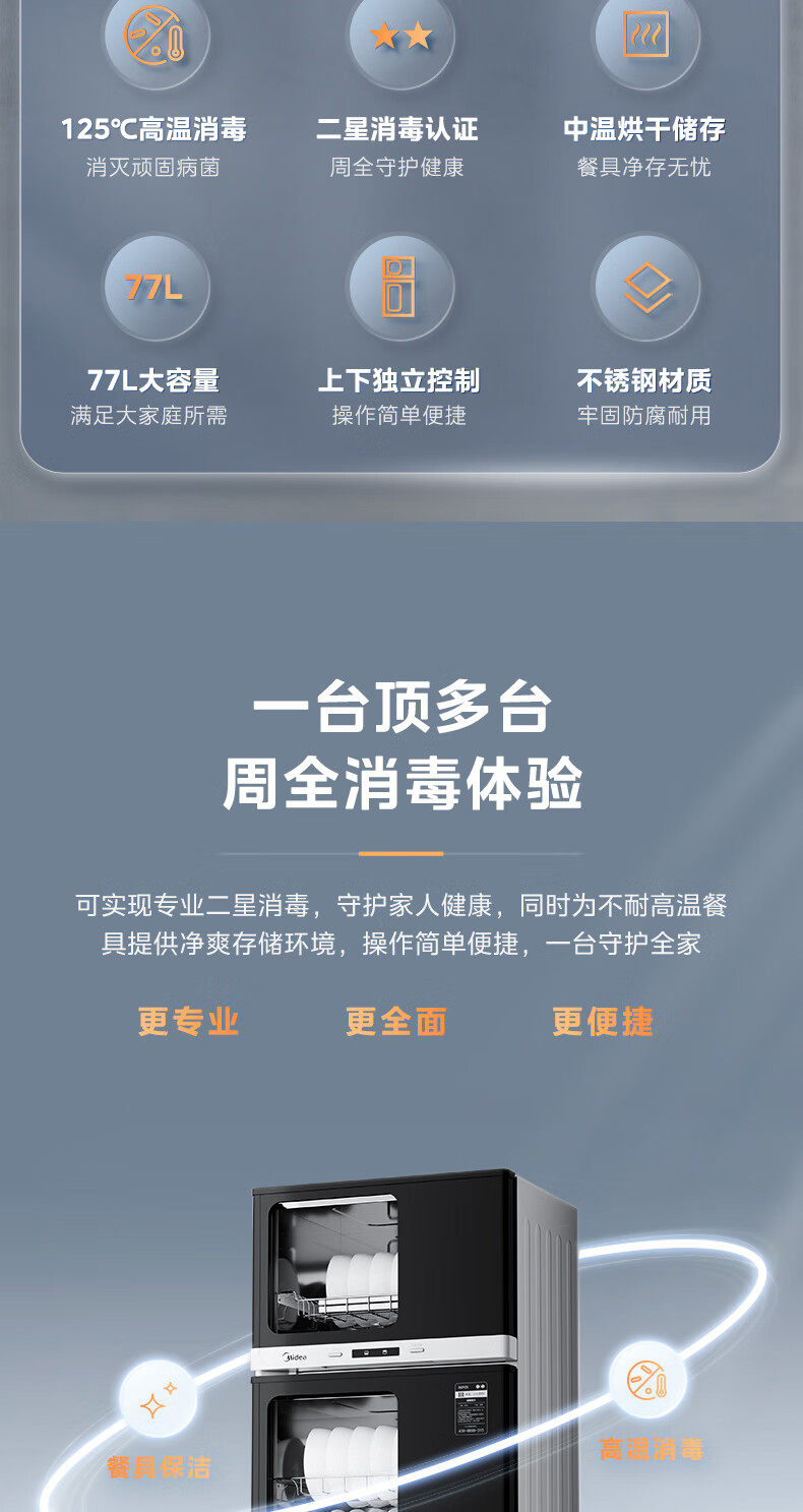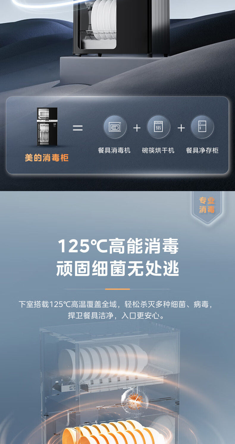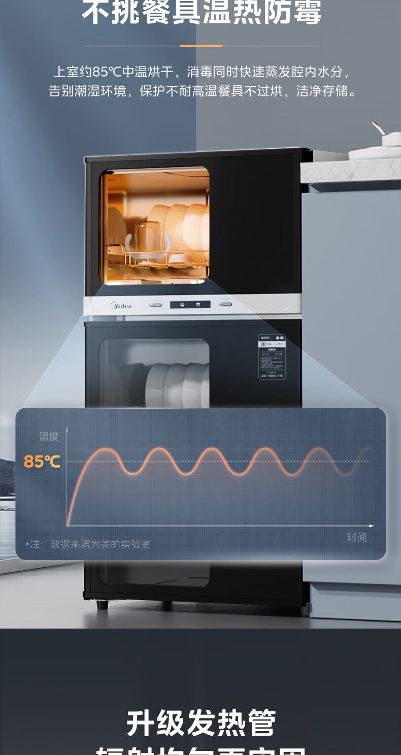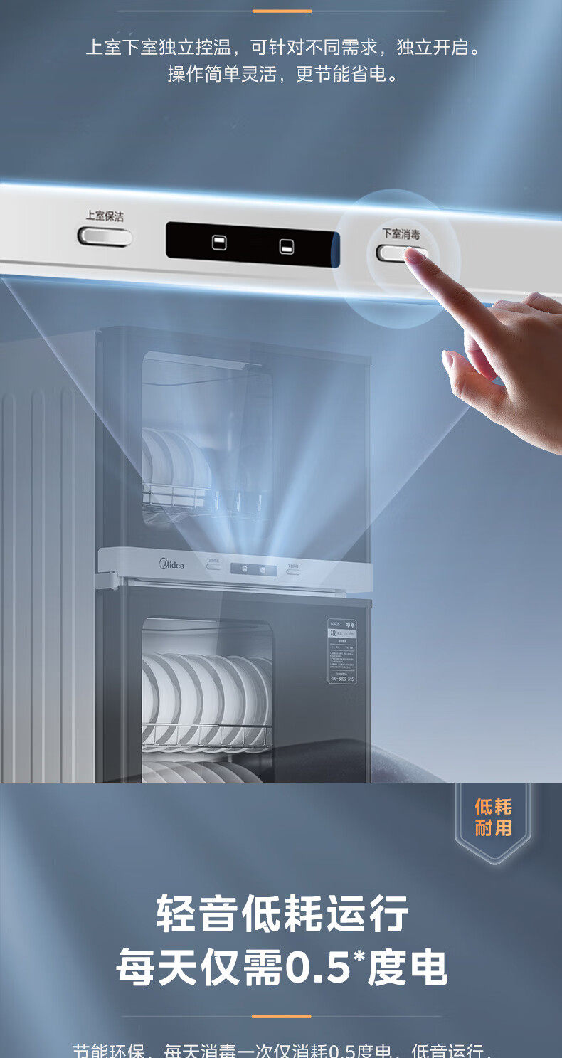 Midea Disinfection Cabinet for Home Use, Medium Temperature Drying, Antibacterial, High Temperature Disinfection, All-In-One Small Vertical Disinfection Cupboard 80R05