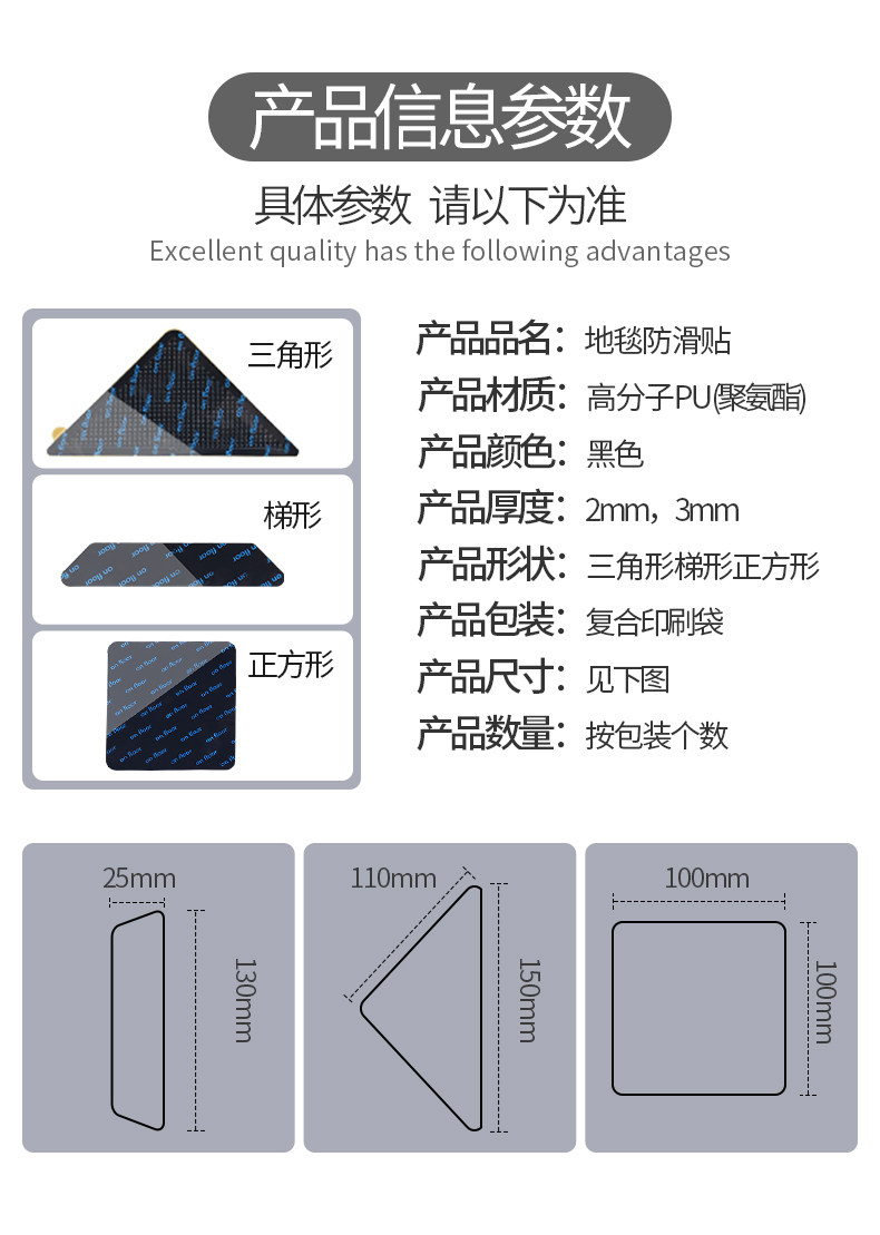 | Color Classification | [1 Pack of 8 Tablets](Trapezoid) Carpet Anti-Slip Stickers,[1 Pack of 4 Tablets](Square) Carpet Anti-Slip Stickers,[1 Pack of 4 Tablets](Triangle) Carpet Anti-Slip Stickers,[2 Packs of 16 Tablets](Trapezoid) Carpet Anti-Slip Stickers,[2 Packs of 8 Tablets](Square) Carpet Anti-Slip Stickers,[2 Packs of 8 Tablets](Triangle) Carpet Anti-Slip Stickers,[3 Packs of 24 Tablets](Trapezoid) Carpet Anti-Slip Stickers,[3 Packs of 12 Tablets](Square) Carpet Anti-Slip Stickers,[3 Packs of 12 Tablets](Triangle) Carpet Anti-Slip Stickers |