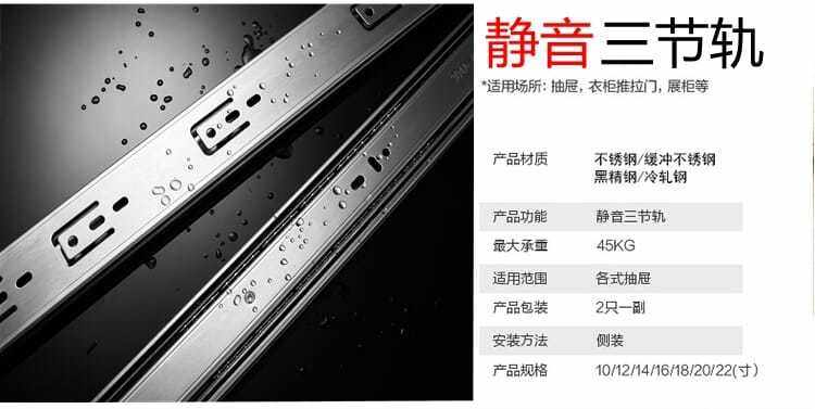 | Color Classification | Thickened Black Stainless Steel; 8inch / 20cm,Thickened Black Stainless Steel; 10inch / 25cm,Thickened Black Stainless Steel; 12inch / 30cm,Thickened Black Stainless Steel; 14inch / 35cm,Thickened Black Stainless Steel; 16inch / 40cm,Thickened Black Stainless Steel; 18inch / 45cm,Thickened Black Stainless Steel; 20inch / 50cm,Thickened Black Stainless Steel; 22inch / 55cm,Silent Rebound Free Handle; 10inch / 25cm,Silent Rebound Free Handle; 12inch / 30cm,Silent Rebound Free Handle; 14inch / 35cm,Silent Rebound Free Handle; 16inch / 40cm,Silent Rebound Free Handle; 18inch / 45cm,Silent Rebound Free Handle; 20inch / 50cm,Thickened Stainless Steel; 10inch / 25cm,Thickened Stainless Steel; 12inch / 30cm,Thickened Stainless Steel; 14inch / 35cm,Thickened Stainless Steel; 16inch / 40cm,Thickened Stainless Steel; 18inch / 45cm,Thickened Stainless Steel; 20inch / 50cm,Damping Buffer Stainless Steel; 10inch / 25cm,Damping Buffer Stainless Steel; 12inch / 30cm,Damping Buffer Stainless Steel; 14inch / 35cm,Damping Buffer Stainless Steel; 16inch / 40cm,Damping Buffer Stainless Steel; 18inch / 45cm,Damping Buffer Stainless Steel; 20inch / 50cm,Rebound Stainless Steel Handle Free 10inch / 25cm,Rebound Stainless Steel Handle Free 12inch / 30cm,Rebound Stainless Steel Handle Free 14inch / 35cm,Rebound Stainless Steel Handle Free 16inch / 40cm,Rebound Stainless Steel Handle Free 18inch / 45cm,Rebound Stainless Steel Handle Free 20inch / 50cm,Damping Buffer Black Stainless Steel; 8inch / 20cm,Damping Buffer Black Stainless Steel; 10inch / 25cm,Damping Buffer Black Stainless Steel; 12inch / 30cm,Damping Buffer Black Stainless Steel; 14inch / 35cm,Damping Buffer Black Stainless Steel; 16inch / 40cm,Damping Buffer Black Stainless Steel; 18inch / 45cm,Damping Buffer Black Stainless Steel; 20inch / 50cm,Damping Buffer Black Stainless Steel; 22inch / 55cm,Slide Rail.,Slide Rail @,Slide Rail % |