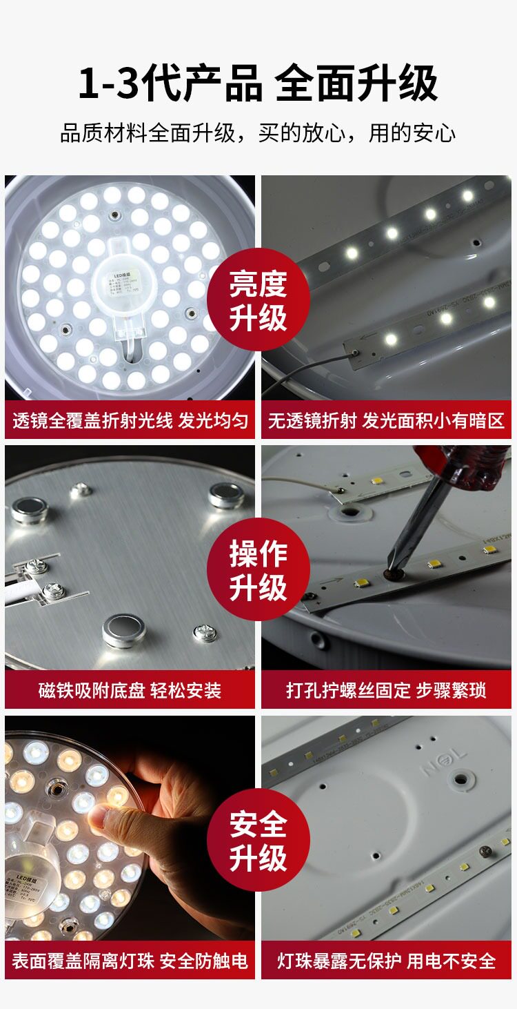 | Color Classification | Three-Year Warranty, Free Replacement if Broken⭐90 Days No Reason to Return or Exchange,[Grab at a Loss!]Super Bright 12W White Light Round (5-10㎡With),Super Bright 12W White Light Round (8-12㎡With)[Single Pack],Super Bright 12W White Light Round (8-12㎡With)[Buy One Get One Free],Super Bright 18W White Light Round (10-15㎡With)[Single Pack],Super Bright 18W White Light Round (10-15㎡With)[Buy One Get One Free],Super Bright 24W White Light Round (12-18㎡With)[Single Pack],Super Bright 24W White Light Round (12-18㎡With)[Buy One Get One Free],Super Bright 36W White Light Round (15-20㎡With)[Single Pack],Super Bright 36W White Light Round (15-20㎡With)[Buy One Get One Free],Three-Color Dimming Round 24W Super Bright (12-18㎡With)[Single Pack],Three-Color Dimming Round 36W Super Bright (15-20㎡With)[Single Pack],Three-Color Dimming 80W Double Circle Round Super Bright (45-60㎡With)[Single Pack],Three-Color Dimming 120W Double Circle Round Super Bright (50-70㎡With)[Single Pack],Three-Color Dimming 120W Double Circle Round-Remote Control Model (50-70㎡With)[Single Pack],↓The Following Is the Square Model,Super Bright 18W White Light Square (10-15㎡With)[Single Pack],Super Bright 18W White Light Square (10-15㎡With)[Buy One Get One Free],Super Bright 24W White Light Square (12-18㎡With)[Single Pack],Super Bright 24W White Light Square (12-18㎡With)[Buy One Get One Free],Super Bright 36W White Light Square (15-20㎡With)[Single Pack],Super Bright 36W White Light Square (15-20㎡With)[Buy One Get One Free],Upgraded Super Bright 18W White Light Square (10-15㎡With)[Single Pack],The Following Is the Driver Installation Instructions!,Super Bright 36W White Light 40cm 4 Strips,Super Bright 48W White Light 50cm 4 Strips,Super Bright 54W White Light 40cm 6 Strips,Super Bright 72W White Light 50cm 6 Strips,Three-Color Dimming 36W 40cm 4 Strips,Three-Color Dimming 40W 40cm 5 Strips,Three-Color Dimming 48W 50cm 4 Strips,Three-Color Dimming 54W 40cm 6 Strips,Three-Color Dimming 72W 50cm 6 Strips,Three-Color Dimming 96W 50cm 8 Strips,Three-Color Dimming 120W 50cm 10 Strips,Remote Control Model-Three-Color Stepless Dimming 96W 50cm 8 Strips,Remote Control Model-Three-Color Stepless Dimming 120W 50cm 10 Strips,Enjoy a 30-Day Free Trial⭐Magnetic Adsorption Without Drilling⭐Girls Can Also Easily Install It |