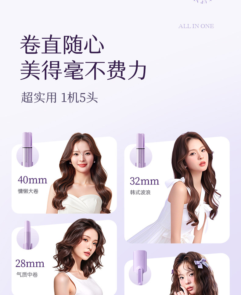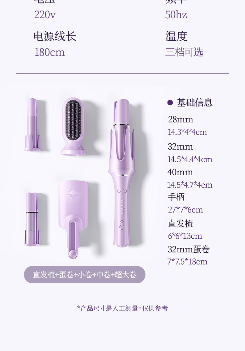 | Color Classification | 【⭐Five-In-One Interchangeable Head⭐】28Mm/32Mm/40Mm/Straight Hair Comb/32Mm Egg Roll,【⭐Three-In-One Interchangeable Head⭐】32Mm/Straight Hair Comb/32Mm Egg Roll,【 ⭐ Three-In-One Interchangeable Head ⭐ 】28Mm/32Mm/Straight Hair Comb,【Full Purple Edition】50 Million Negative Ions + Essential Oil Layer for Hair Care + Longer-Lasting Style + 5-Year Warranty + 3 Heat Settings,【Full Accessory Kit】50 Million Negative Ions + Essential Oil Layer for Hair Care + Longer-Lasting Style + 5-Year Warranty + 3 Heat Settings,[Exclusive Purple] 30 Million Negative Ions + 3 Levels of Temperature Adjustment + 3-Year Warranty,[Flagship Purple] Ceramic Glaze Hair Care + Essential Oil Layer + Three Levels of Temperature + 2-Year Warranty,[Ordinary Purple] Fixed Temperature,1 [Ordinary Purple] Fixed Temperature,1【⭐Five-In-One Interchangeable Head⭐】28Mm/32Mm/40Mm/Straight Hair Comb/32Mm Egg Roll,1【⭐Three-In-One Interchangeable Head⭐】32Mm/Straight Hair Comb/32Mm Egg Roll,1【⭐Three-In-One Interchangeable Head⭐】28Mm/32Mm/Straight Hair Comb,1 [Full Version Purple] 50 Million Negative Ions + Essential Oil Layer Hair Care + Longer Styling Time + 5-Year Warranty + 3 Levels of Temperature Adjustment,1 [Full Version of Powder] 50 Million Negative Ions + Essential Oil Layer Hair Care + Longer Styling Time + 5-Year Warranty + 3 Levels of Temperature Adjustment,1 [Exclusive Purple] 30 Million Negative Ions + 3 Levels of Temperature Adjustment + 3-Year Warranty,1 [Flagship Purple] Ceramic Glaze Hair Care + Essential Oil Layer + Three Levels of Temperature + 2-Year Warranty,1 [Upgraded Purple] 2 Levels of Temperature + Ceramic Glaze Hair Care + 1 Year Warranty,11 [Flagship Purple] Ceramic Glaze Hair Care + Essential Oil Layer + Three Levels of Temperature + 2-Year Warranty,11 [Full Version of Powder] 50 Million Negative Ions + Essential Oil Layer Hair Care + Longer Styling Time + 5-Year Warranty + 3 Levels of Temperature Adjustment |
