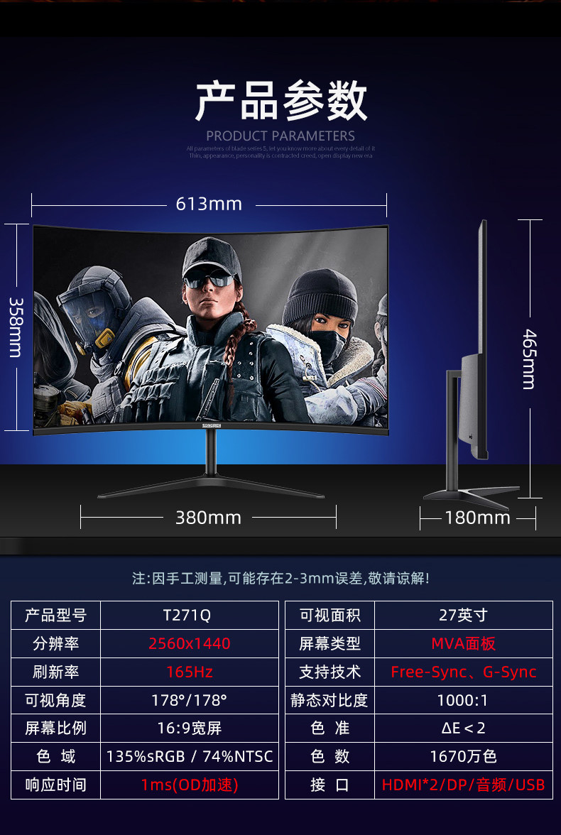 | Color Classification | 27inch Curved Surface 165Mhz,27inch Planar 165Mhz,27inch Flat 2K,27inch Curved Surface 2K 165Mhz |