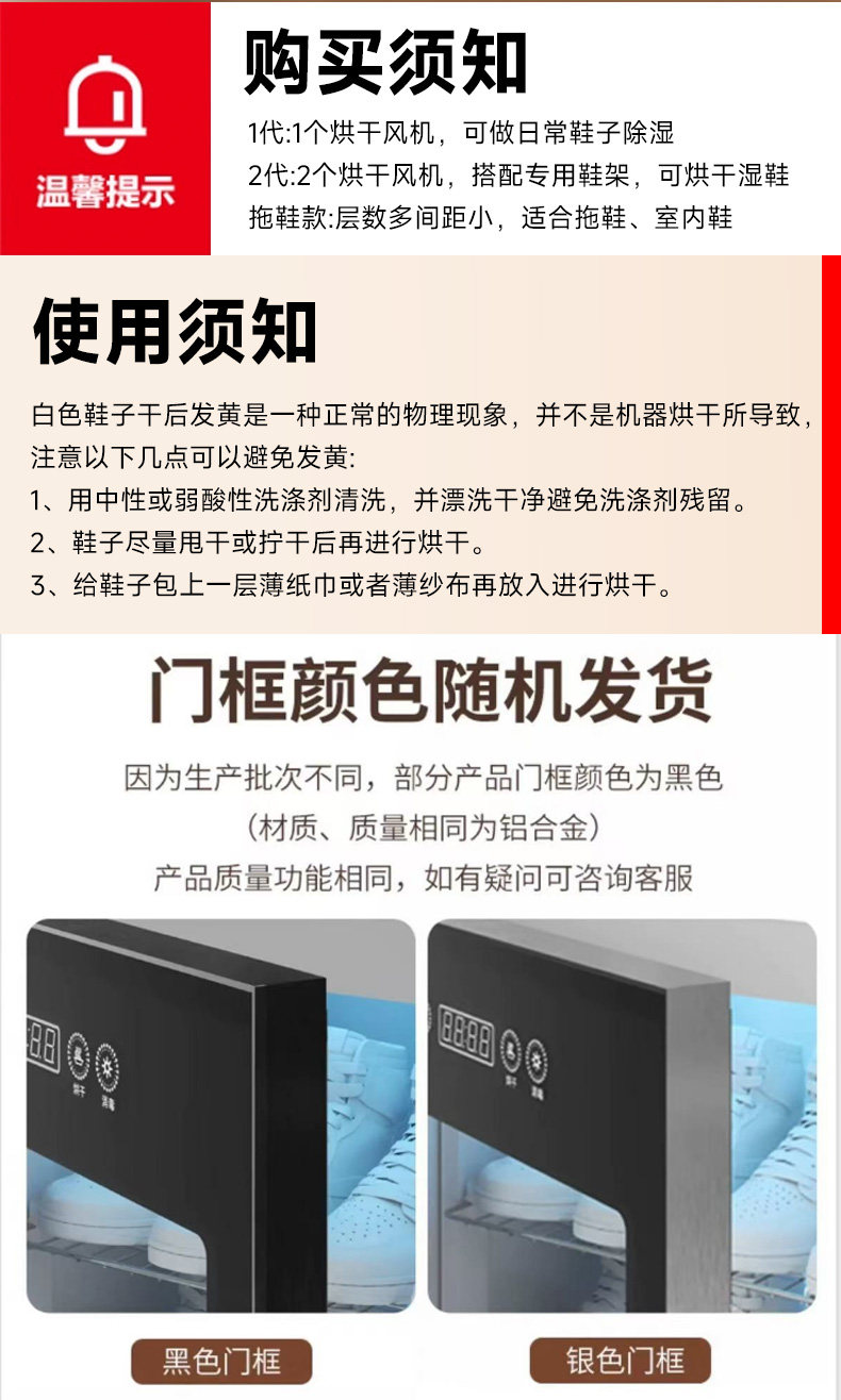 | Color Classification | Five Layers [2Nd Generation Upgraded Slipper Model] [Thickened Box + Aluminum Alloy Door Frame + Twin Turbo Speed Drying + Ultraviolet + Ozone + Sterile Hosting],Four Layers [2Nd Generation Upgraded Model] [Thickened Box + Aluminum Alloy Door Frame + Twin Turbo Speed Drying + Ultraviolet + Ozone + Sterile Hosting],Three Layers [2Nd Generation Upgraded Model] [Thickened Box + Aluminum Alloy Door Frame + Twin Turbo Speed Drying + Ultraviolet + Ozone + Sterile Hosting],Second Floor [2Nd Generation Upgraded Model] [Thickened Box + Aluminum Alloy Door Frame + Twin Turbo Speed Drying + Ultraviolet + Ozone + Sterile Hosting],Three Layers [2Nd Generation Standard Enhanced Model] [Shoes Can Be Dried + Ultraviolet Disinfection + Ozone Sterilization],Four Layers [1St Generation Standard Slipper Model] [Shoe Dehumidification + Ultraviolet Disinfection + Ozone Sterilization],Three Layers [1St Generation Standard Model] [Shoe Dehumidification + Ultraviolet Disinfection + Ozone Sterilization],Second Floor [1St Generation Standard Model] [Shoe Dehumidification + Ultraviolet Disinfection + Ozone Sterilization] (All Black Body) |