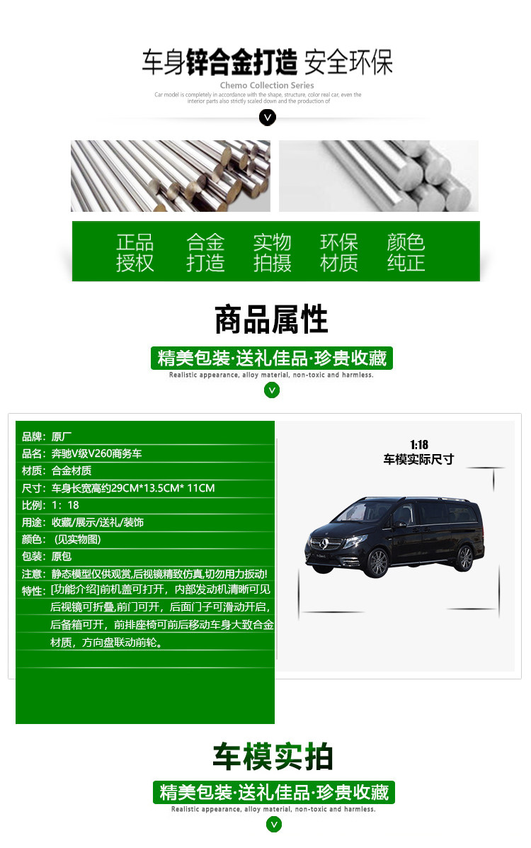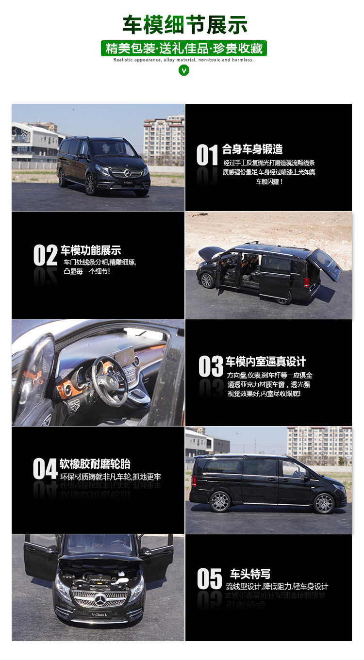 1:18 Original Mercedes-Benz V260L V-Class Mpv Viano Business Car Alloy Simulation Car Model for Collection and Gift Giving