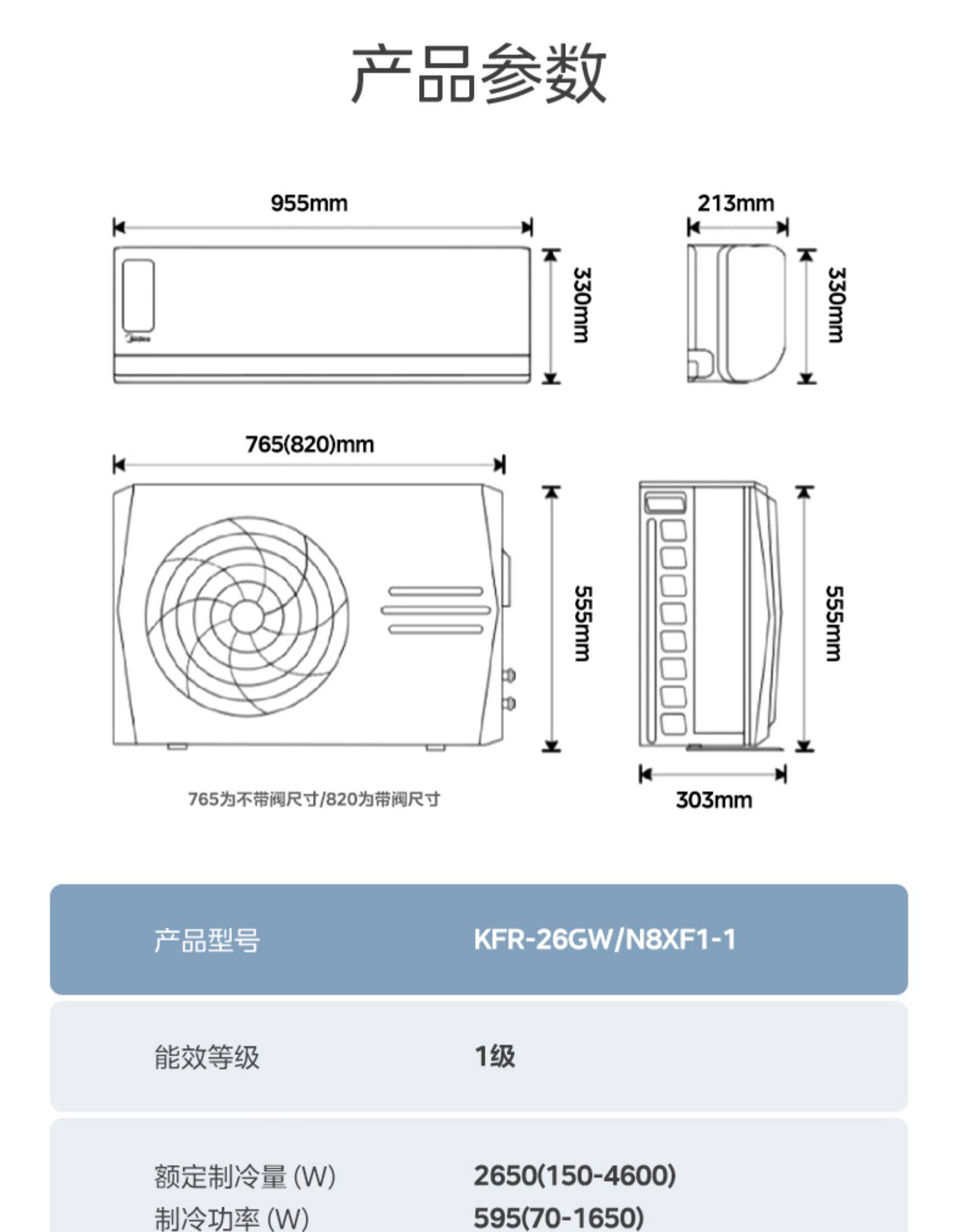 Outdoor Unit Dimensions 820X555X303 mm