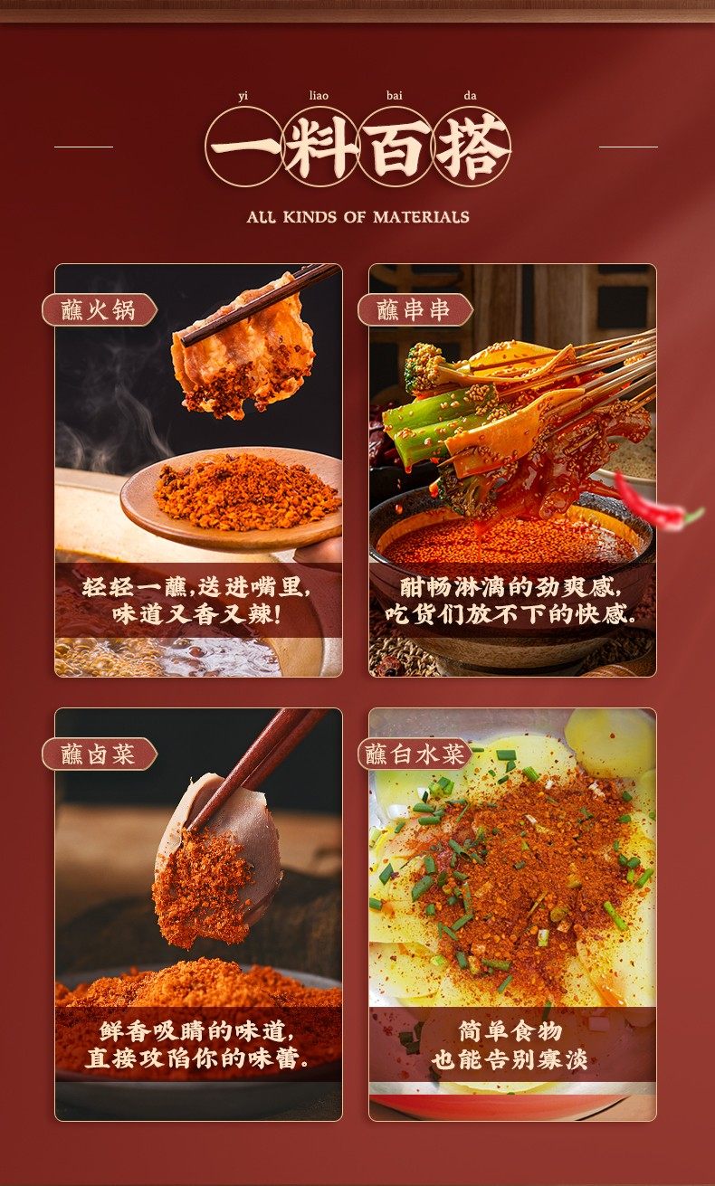 | Taste | Cuihong Spicy Dipping Sauce 2.53kg,Cuihong Spicy Dipping Sauce 2.53kg*8 Bags [Contact Customer Service for Discounts],Cuihong Five-Spice Dipping Sauce 2.5kg [Large Wholesale Quantity Can Be Negotiated],Cuihong Five-Spice Dipping Sauce 2.5kg*4 Bags,Cuihong Five-Spice Dipping Sauce 2.5kg*8 Bags [Contact Customer Service for Discounts],Cuihong Spicy Dipping Sauce 2g*1000 Bags [Full Box],Cuihong Spicy Dipping Sauce 100g*10 Bags [Small Bags Individually Packaged] |