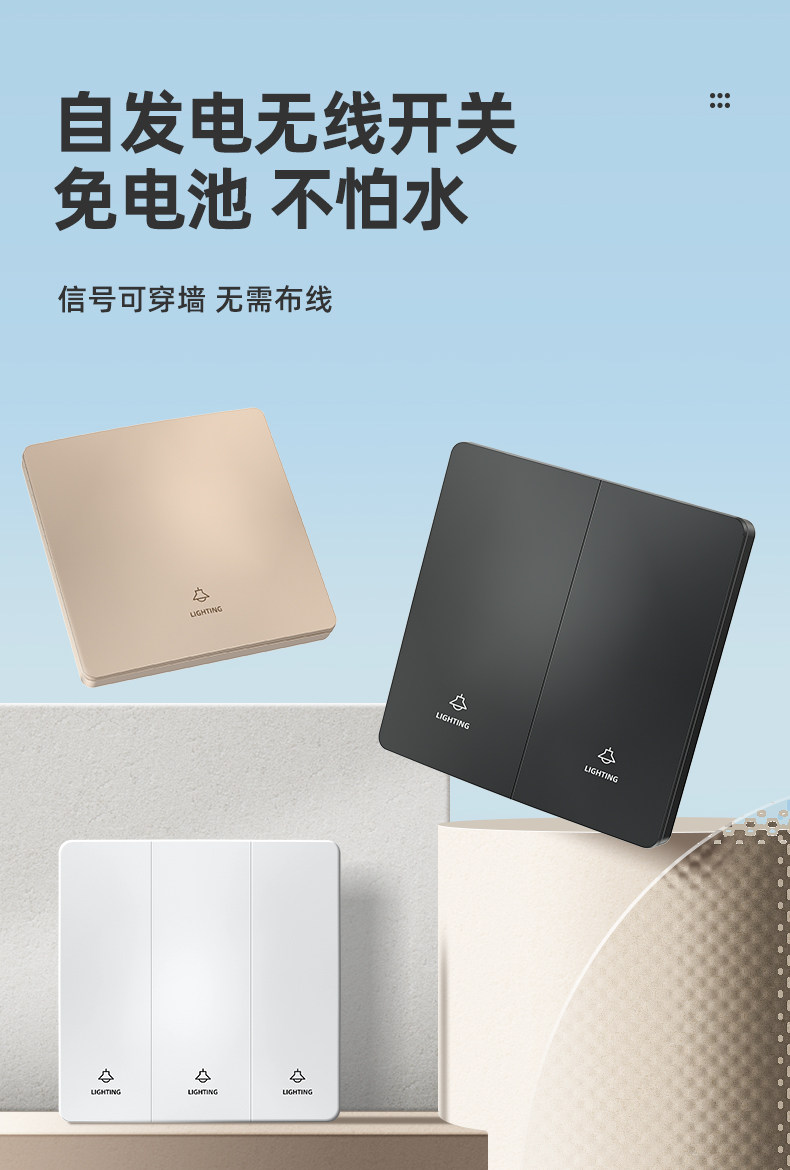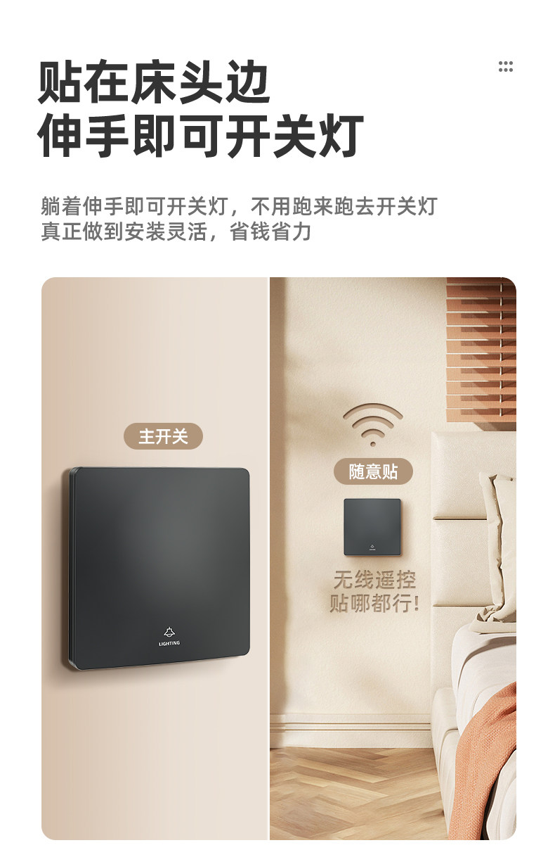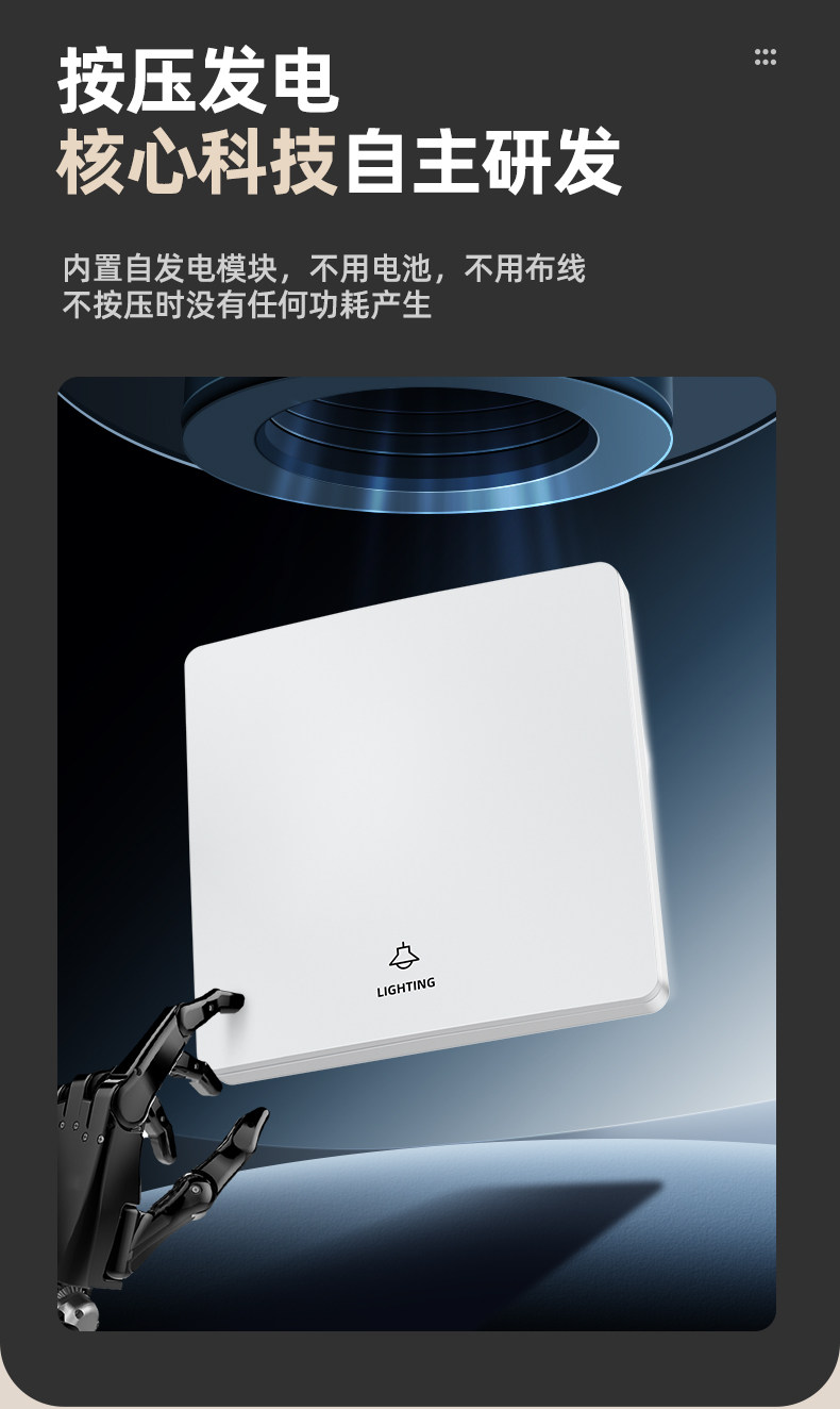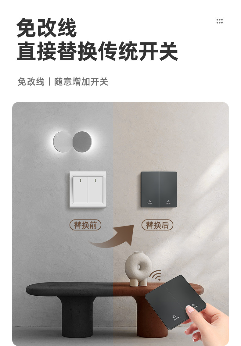 Self-Powered Wireless Remote Control Switch Panel, No Wiring Required, Dual-Control Smart Switch, Easy-To-Stick Switch Controller, Light-Off Gadget