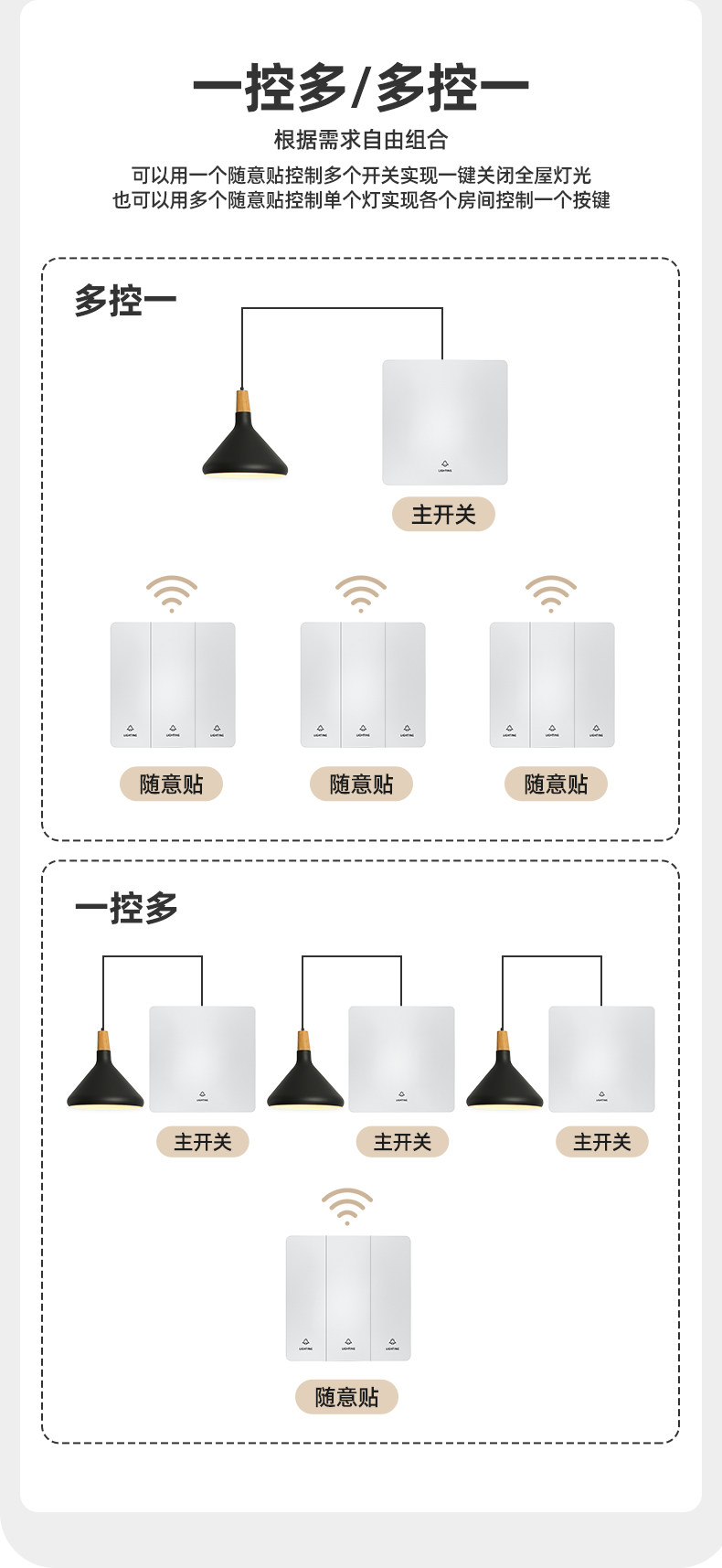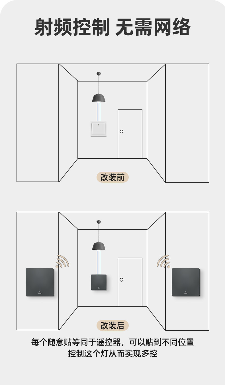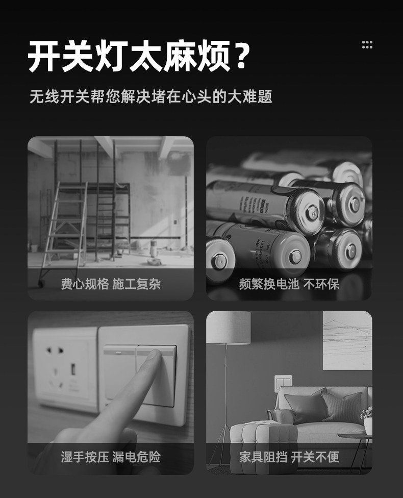 Self-Powered Wireless Remote Control Switch Panel, No Wiring Required, Dual-Control Smart Switch, Easy-To-Stick Switch Controller, Light-Off Gadget