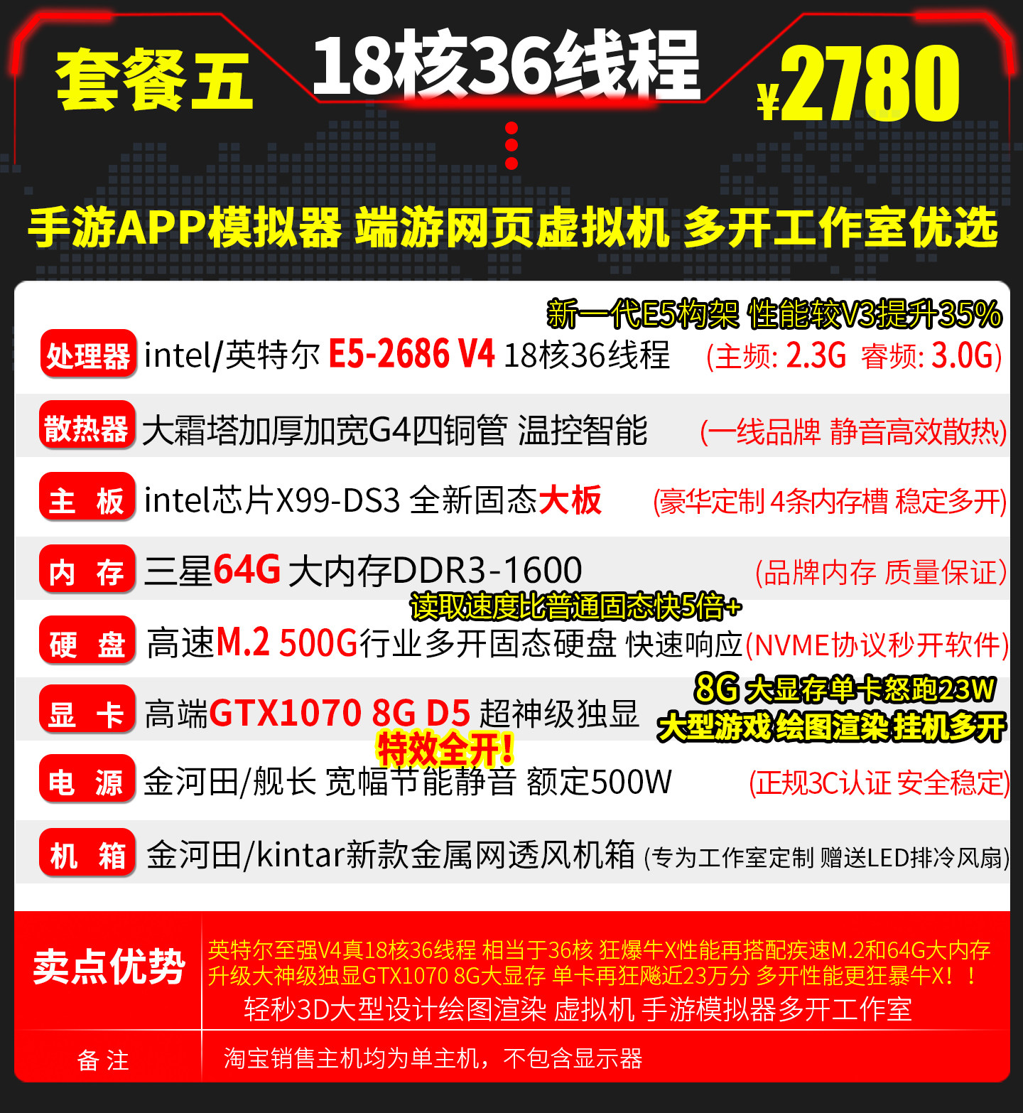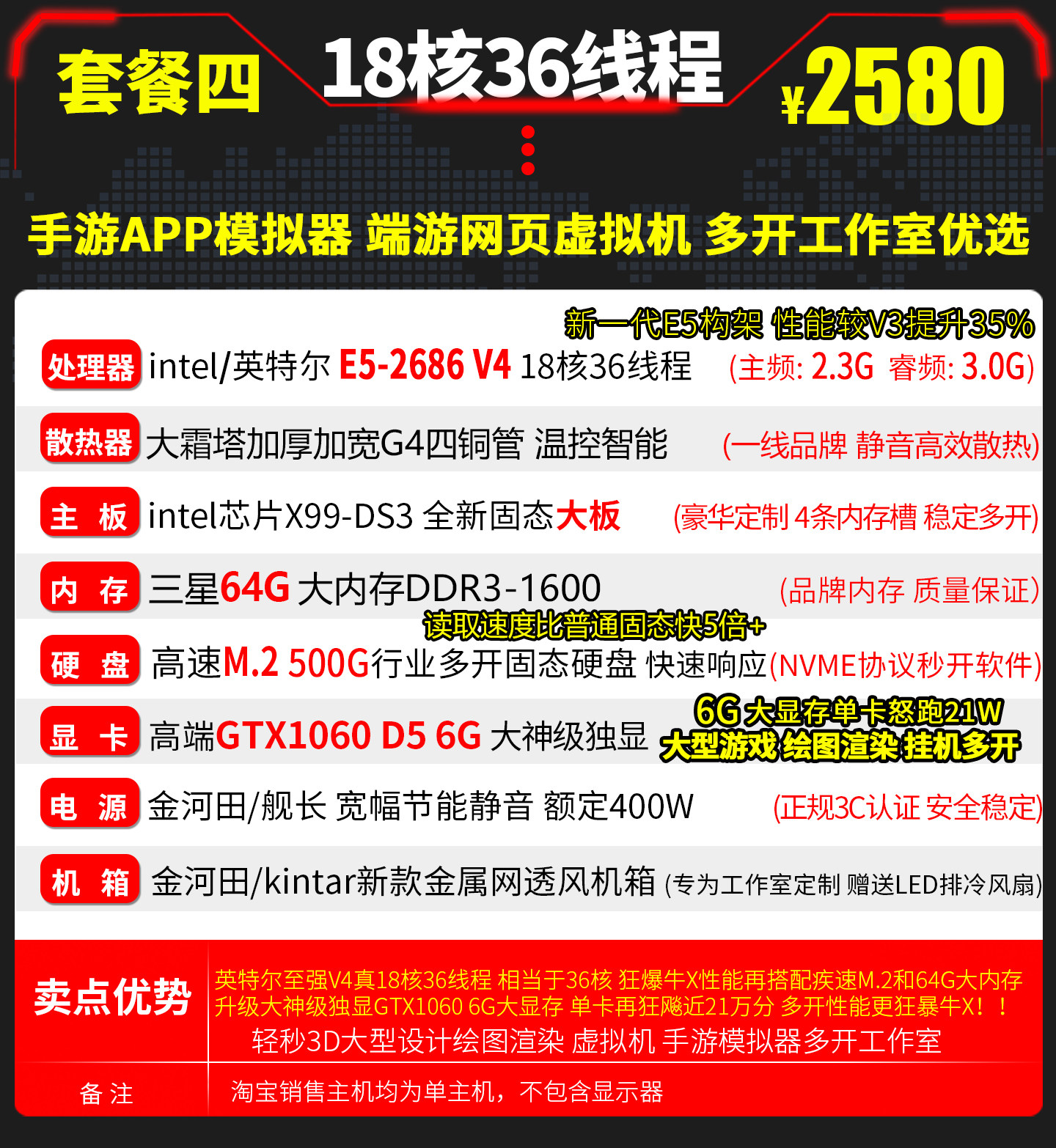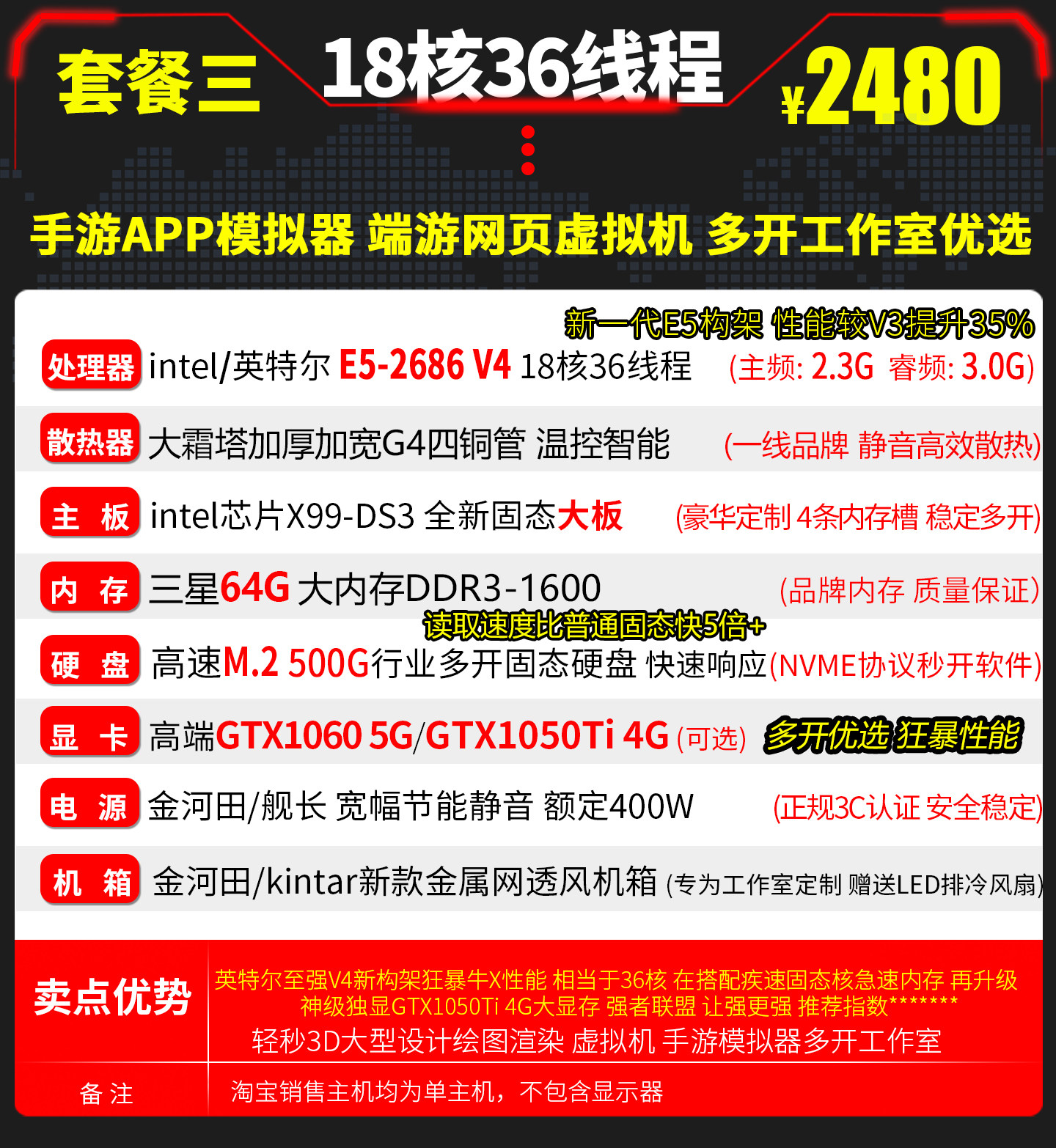 Xeon E5 Dual-Core 2686V4 Host for Gaming, Multi-Tasking, Studio Simulator, Computer Host Server, Virtual Machine