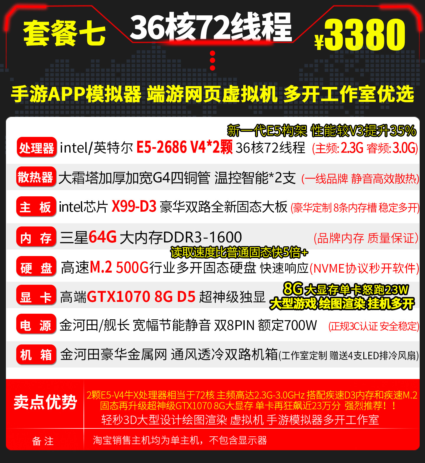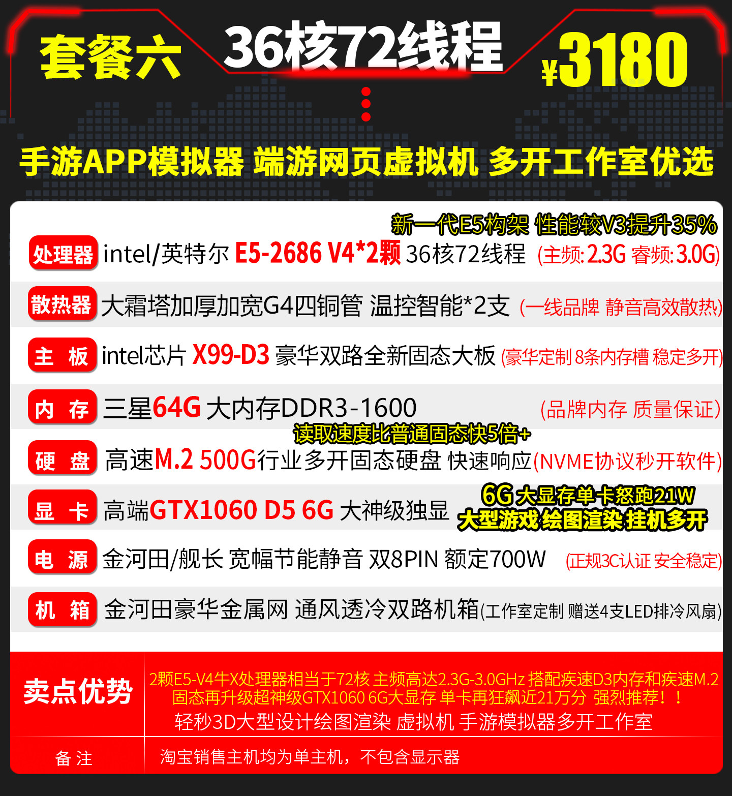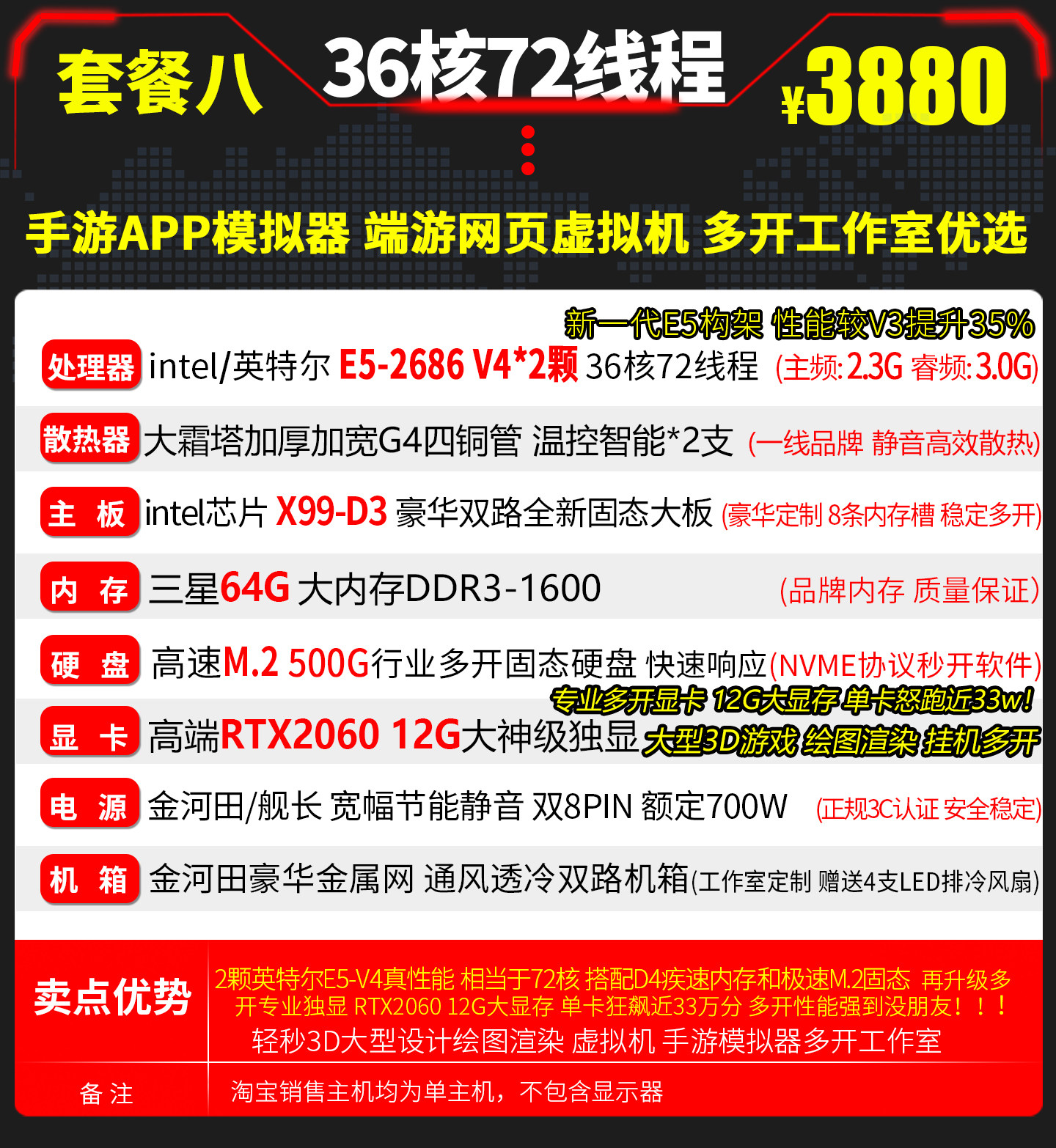 Xeon E5 Dual-Core 2686V4 Host for Gaming, Multi-Tasking, Studio Simulator, Computer Host Server, Virtual Machine