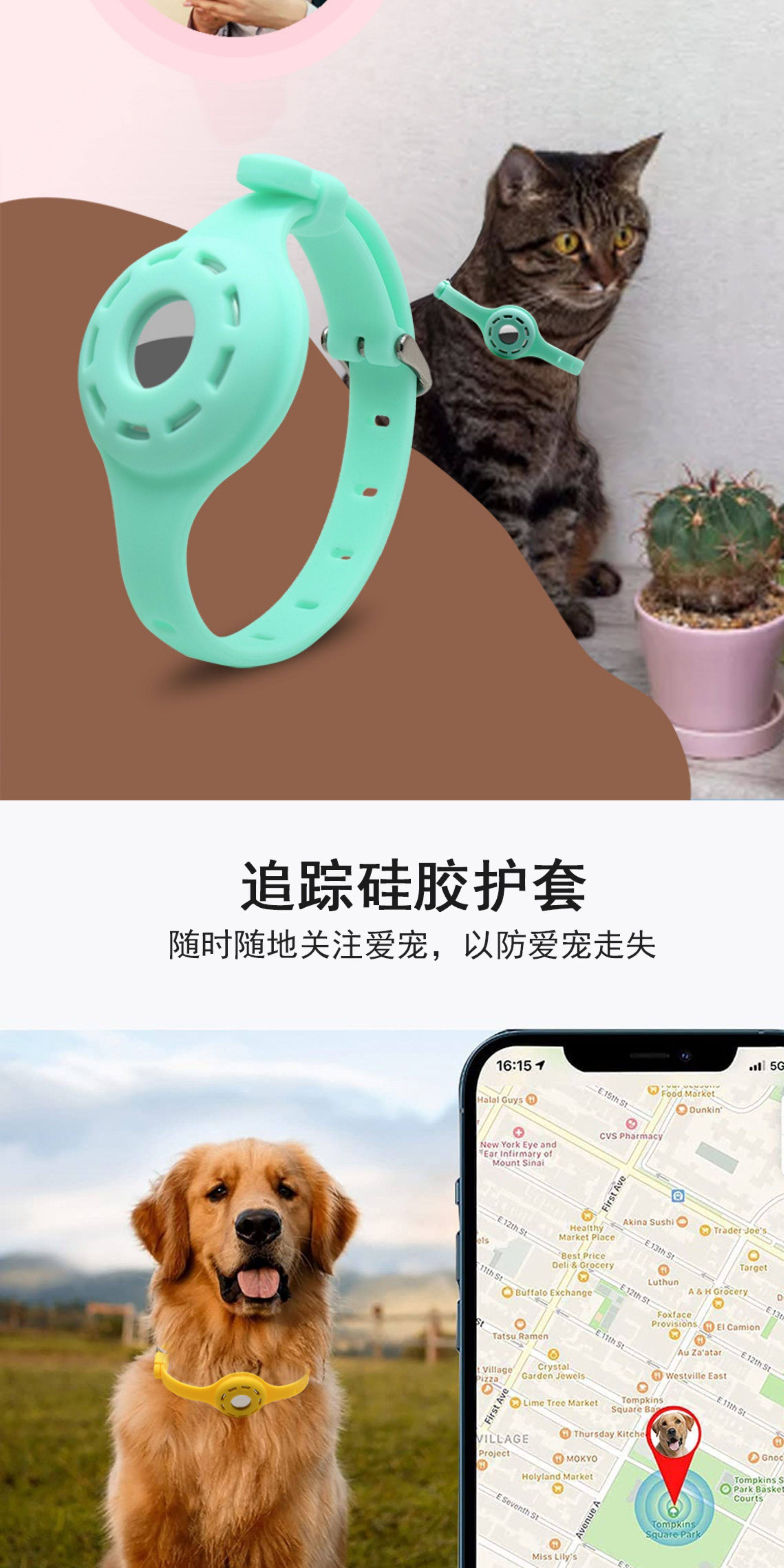 Pet Cat and Dog Airtag Silicone Integrated Protective Case Positioning Collar Fluorescent Anti-Loss Apple Tracker Neck Strap