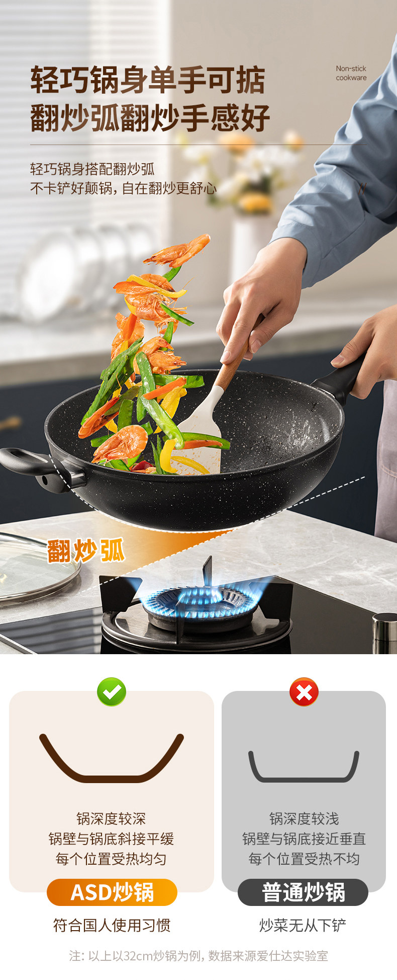 Aistar Non-Stick Frying Pan, Suitable for Induction Cookers and Gas Stoves, Multifunctional Household Cooking Pan, Flat-Bottomed Pan