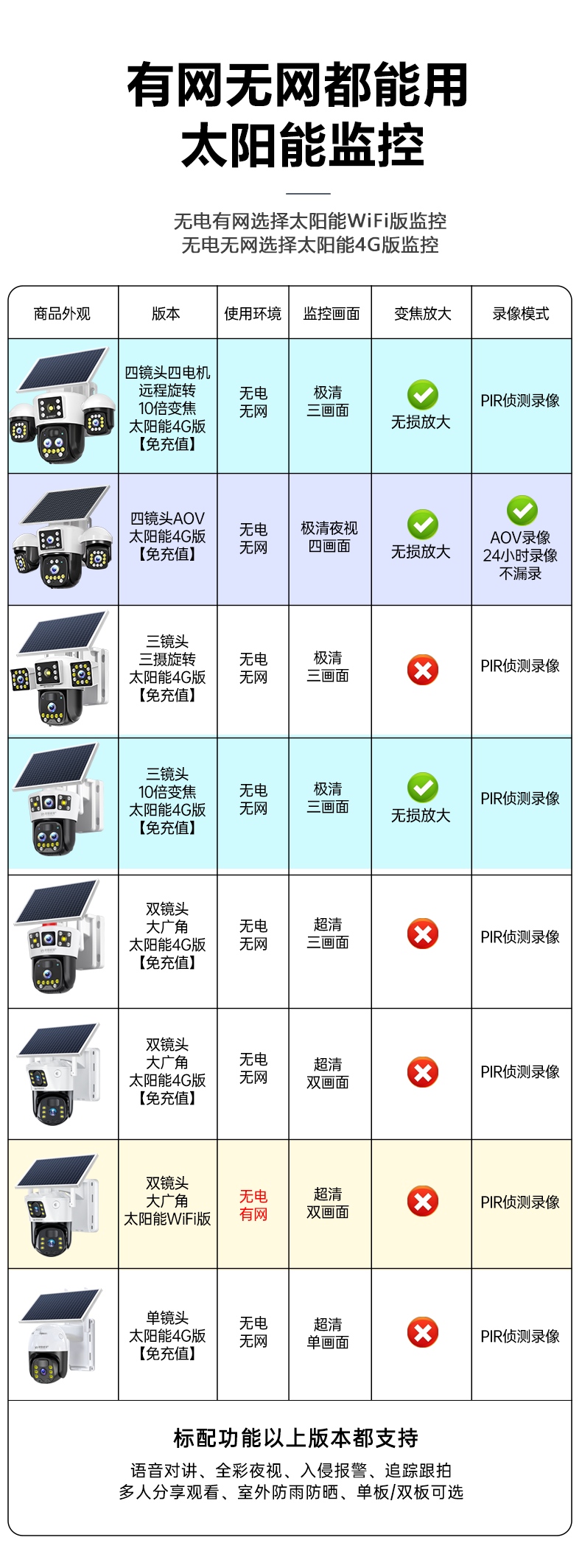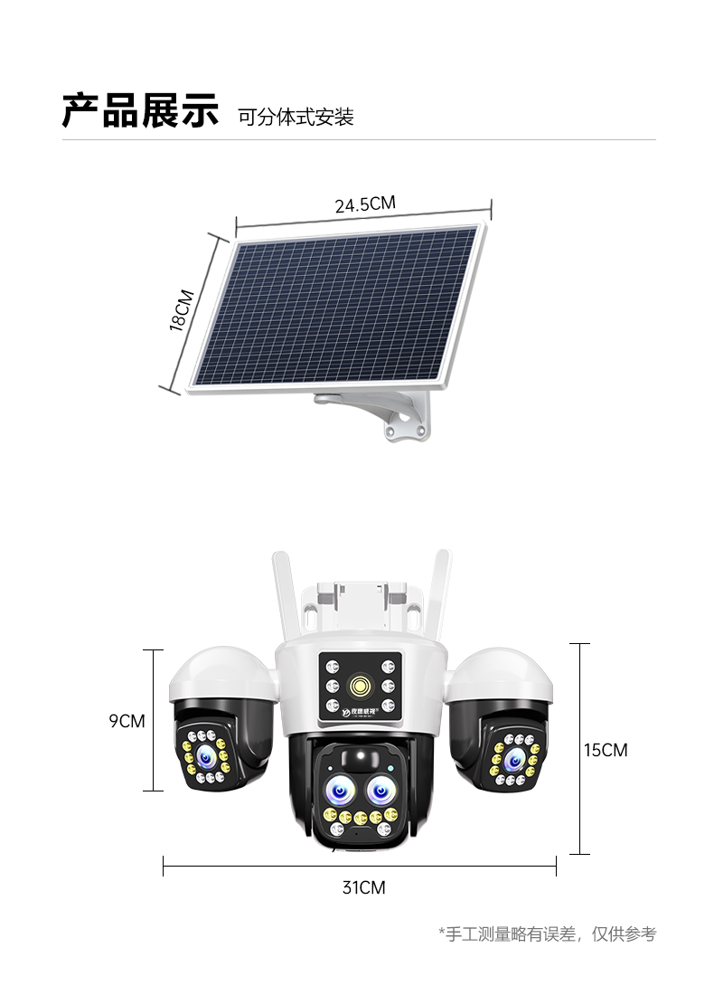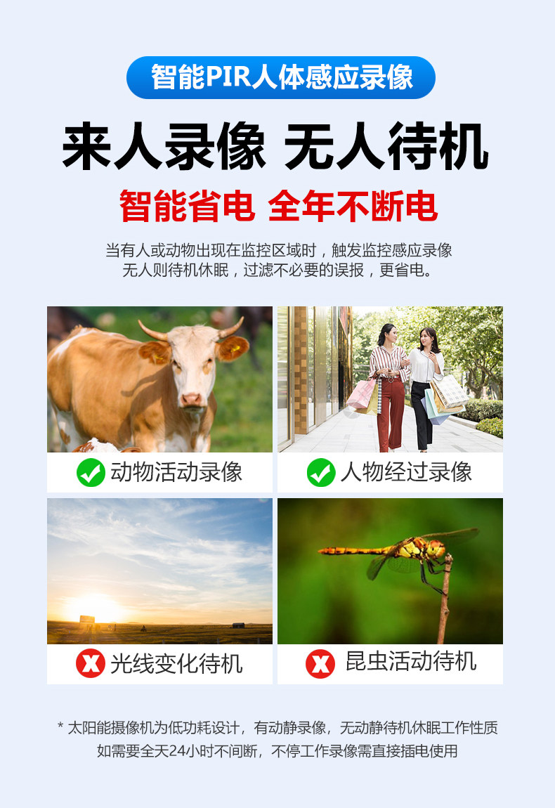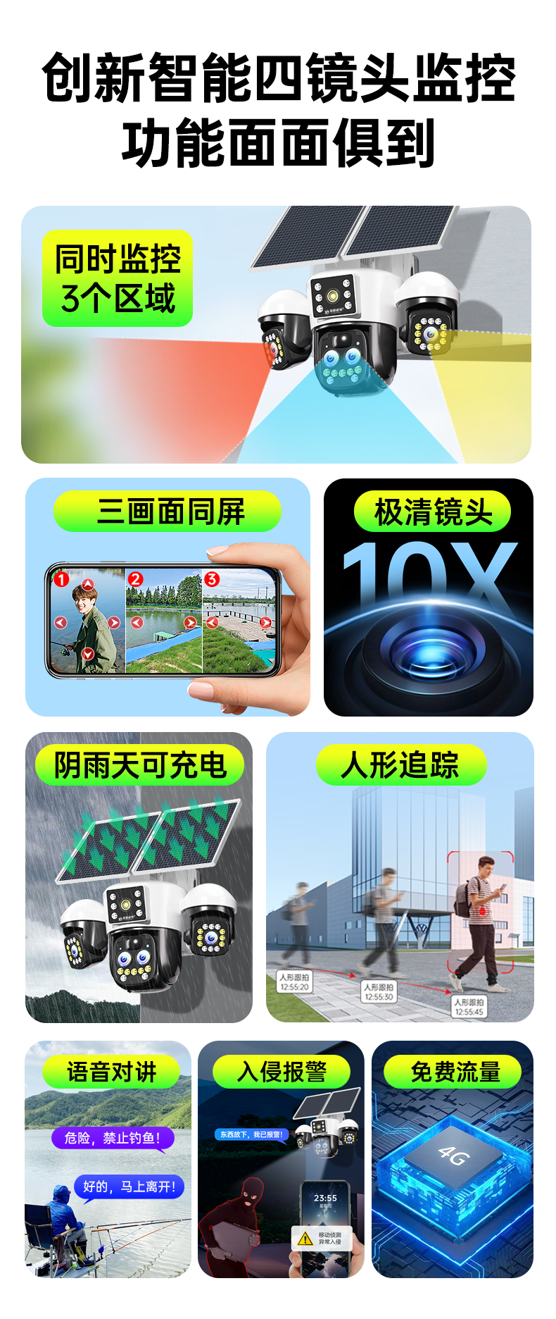 | Color Classification | 【Get 99 Years of Data】 【No Power, No Network Required】 No Power Supply Needed, No Broadband Connection Required + Remote Mobile Monitoring + Micro-Light Power Generation + Intruder Alert,【Free 99-Year Data】Dual Lens/Dual Screen 【No Power/No Network Required】No Power Supply Needed, No Broadband Required + Mobile Remote Monitoring + Low-Light Power Generation + Intruder Alert,[Free 99-Year Traffic] Dual Panels + Ultra-Wide Angle/Three-Light Model [No Electricity or Network Recommended] No Power Supply, No Broadband + Mobile Phone Remote Monitoring + Low-Light Power Generation + Alarm When Someone Comes,【Free 99-Year Data】Triple Lens 10X Zoom 【No Power, No Network Required】See Details Clearly, Near and Far + No Power Supply Needed, No Broadband Required + Remote Mobile Monitoring + Micro-Power Generation + Motion Detection Alarm,[Free 99-Year Traffic] Dual Boards + Three Lenses 10X Zoom [No Electricity or Network Recommended] See Details Clearly in Far and Near Pictures + No Power Supply, No Broadband + Mobile Phone Remote Monitoring + Low-Light Power Generation + Alarm When Someone Comes,【Free 99-Year Data】Triple Lens with Rotating Function. Panoramic View, No Blind Spots. 【No Power or Network Required】No Power Supply Needed, No Broadband Required + Remote Mobile Monitoring + Low-Light Power Generation + Intruder Alert,[Free 99-Year Traffic] Double Panels + Three Lenses Can Be Rotated. Panoramic View Without Blind Spots [No Electricity or Network Recommended] No Power Supply, No Broadband + Mobile Phone Remote Monitoring + Low-Light Power Generation + Alarm When Someone Comes,【Free 99-Year Data】Quad-Lens, Quad-View + Three Adjustable Angles 【No Power, No Network Required】24/7 Recording + Ai Smart Identification + No Power Supply, No Broadband Needed + Remote Mobile Monitoring + Micro-Power Generation + Alarm,[Free 99-Year Traffic] Dual Boards + Four Lenses and Four Screens + Three Adjustable Angles [Recommended Without Electricity or Network] 24-Hour Recording + Ai Intelligent Recognition + No Power Supply, No Broadband + Mobile Phone Remote Monitoring + Low-Light Power Generation + Alarm,【Free 99-Year Data】Independent Rotating Quad Lens + 10X Zoom. Panoramic, No Blind Spots. 【Battery & Network-Free Recommendation】See Details Clearly, Near and Far + No Power Supply, No Broadband Required + Remote Mobile Monitoring + Micro-Power Generation + Alarm,[Free 99-Year Traffic] Dual Panels + Independent Rotating Four Lenses + 10X Zoom. Panoramic View Without Blind Spots [Recommended Without Electricity or Network] See Details Clearly in Far and Near Pictures + No Power Supply, No Broadband + Mobile Phone Remote Monitoring + Low Light Power Generation + Alarm,【Battery-Free, Wi-Fi Enabled】Connect to Wi-Fi, No Power Supply Needed + Remote Mobile Monitoring + Micro-Power Generation + Motion-Activated Alarm |