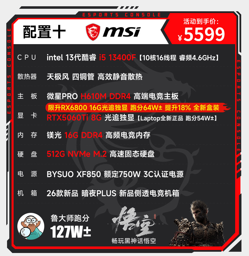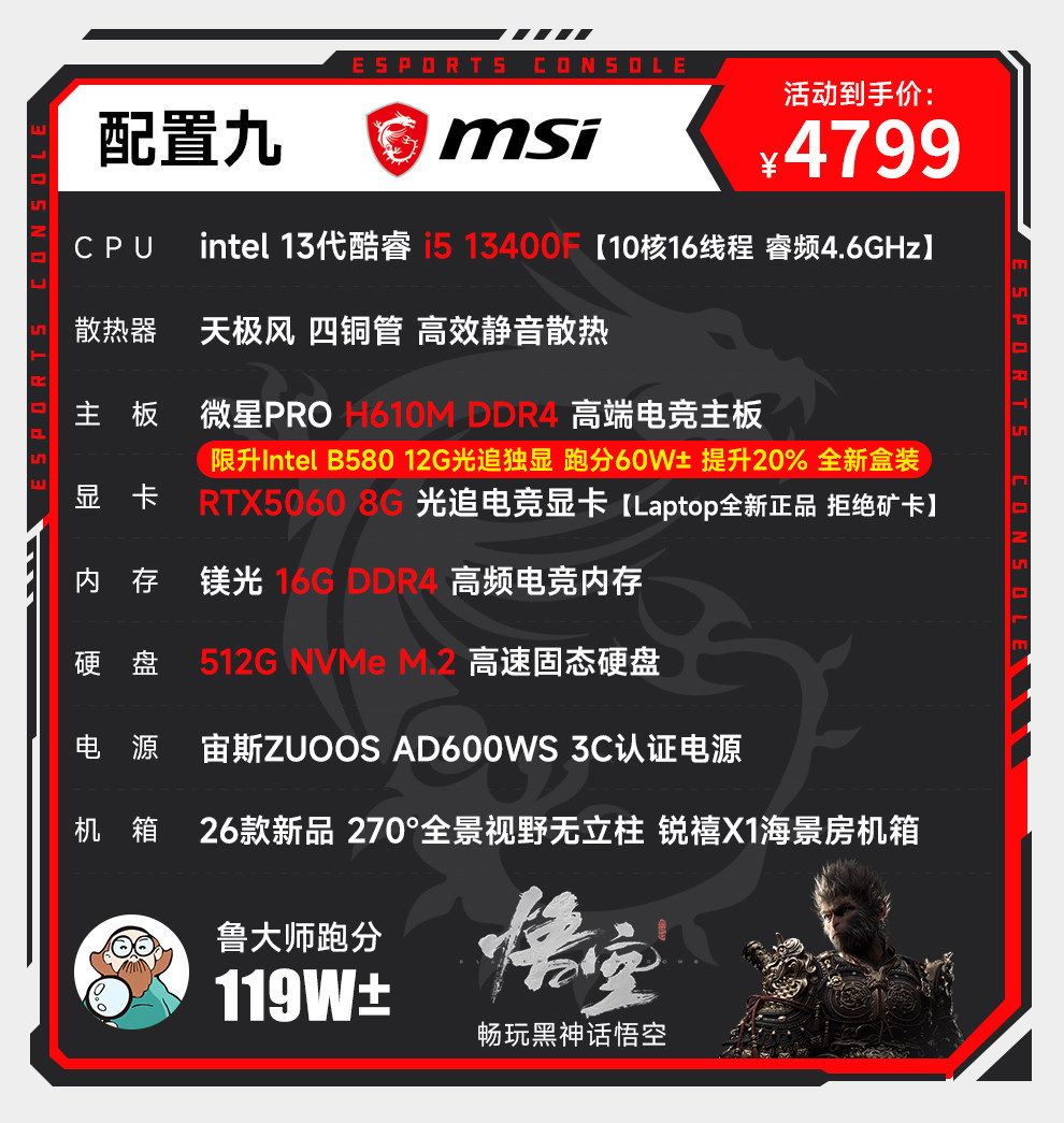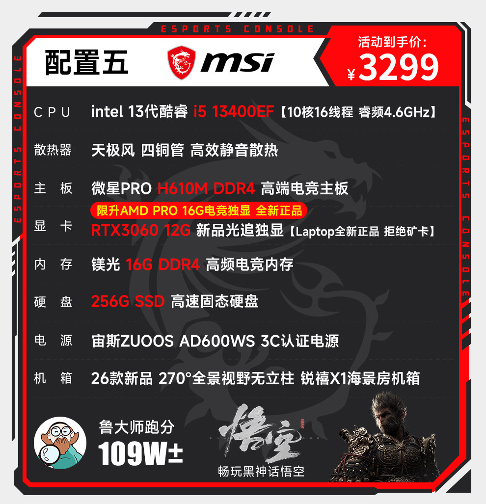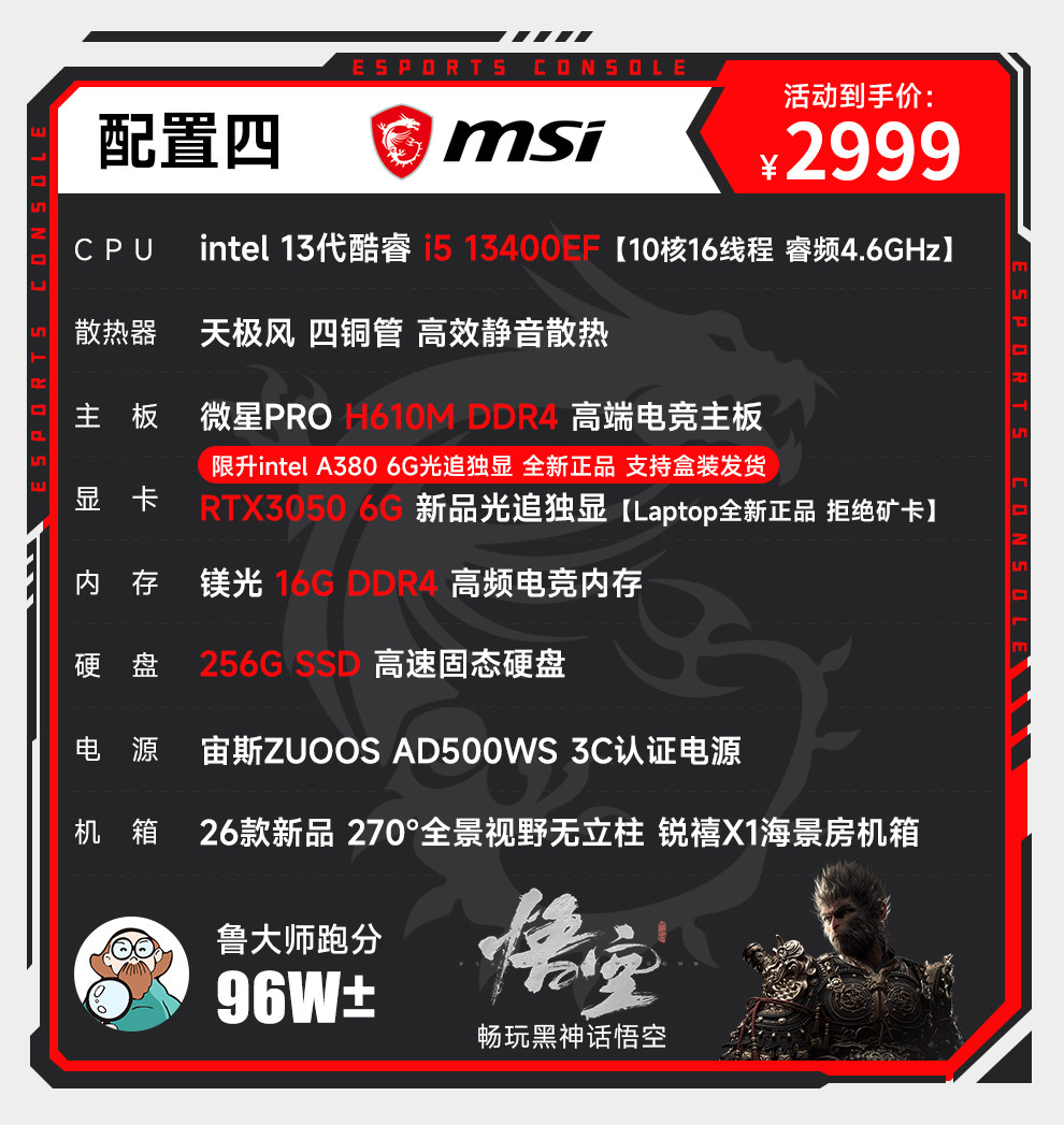 Msi I5 12600Kf Upgraded to 13400F/Rtx3060/4060/5060Ti Computer Desktop for Gaming, E-Sports, DIY Assembly, Complete Machine Designer
