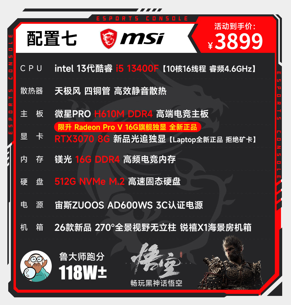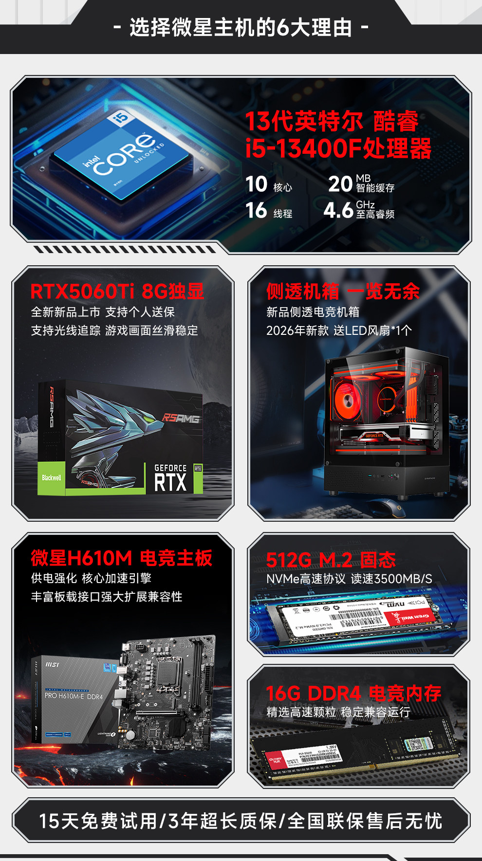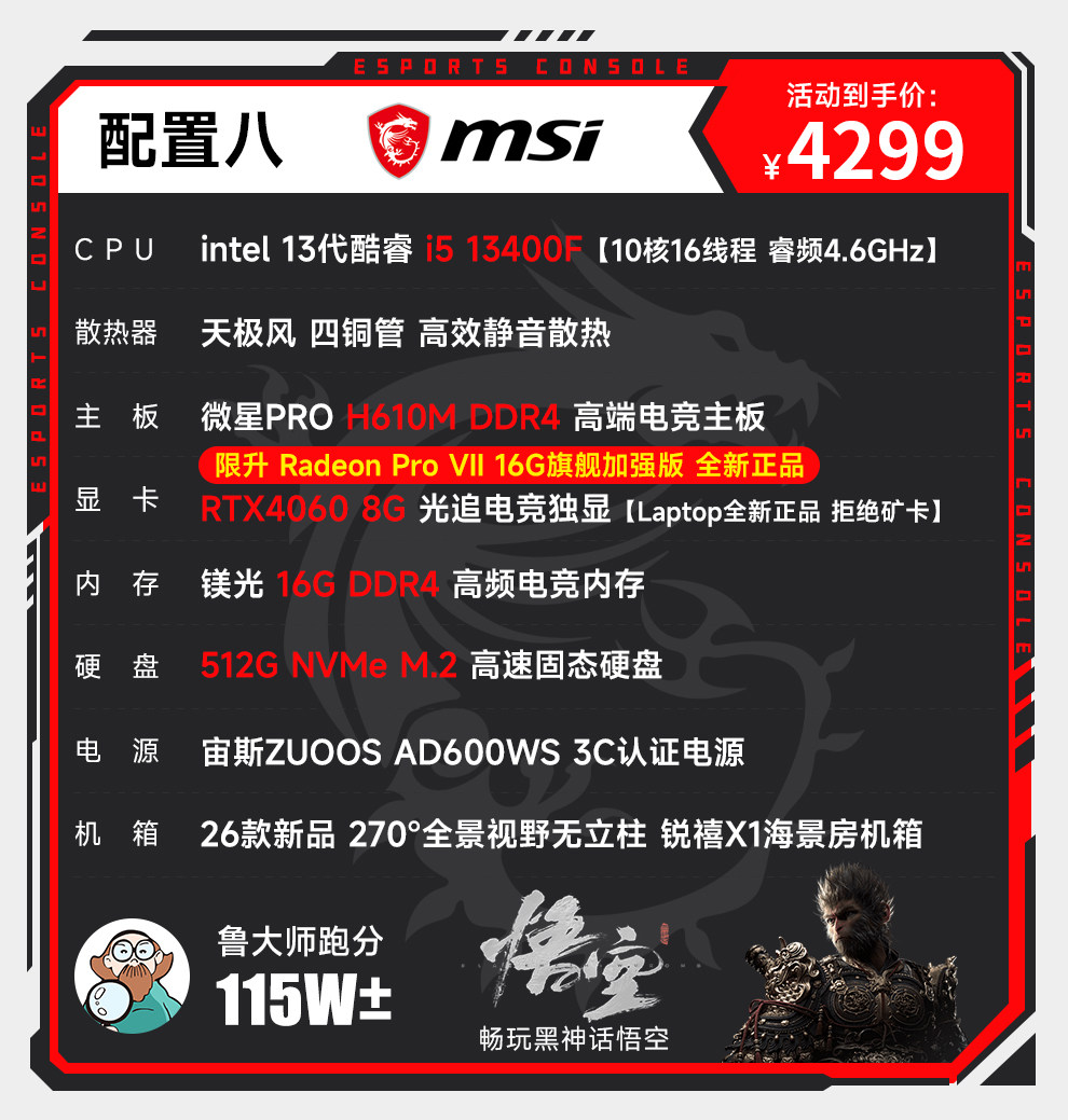 Msi I5 12600Kf Upgraded to 13400F/Rtx3060/4060/5060Ti Computer Desktop for Gaming, E-Sports, DIY Assembly, Complete Machine Designer