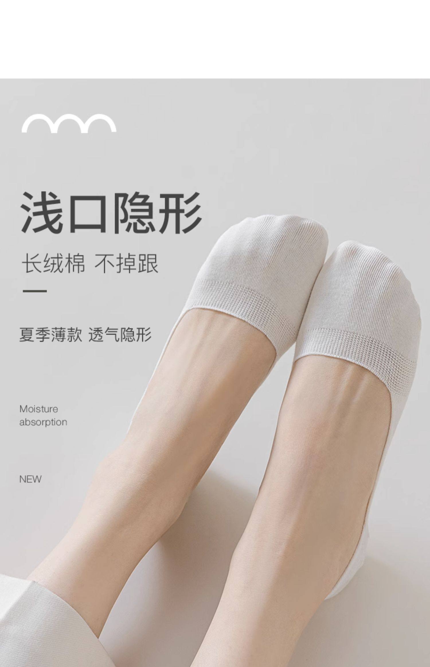 Women's No-Show Socks, Non-Slip, Summer Thin Style, Low-Cut Invisible Socks, Pure Cotton, Sweat-Absorbent, Odor-Resistant, Short Socks for Flats