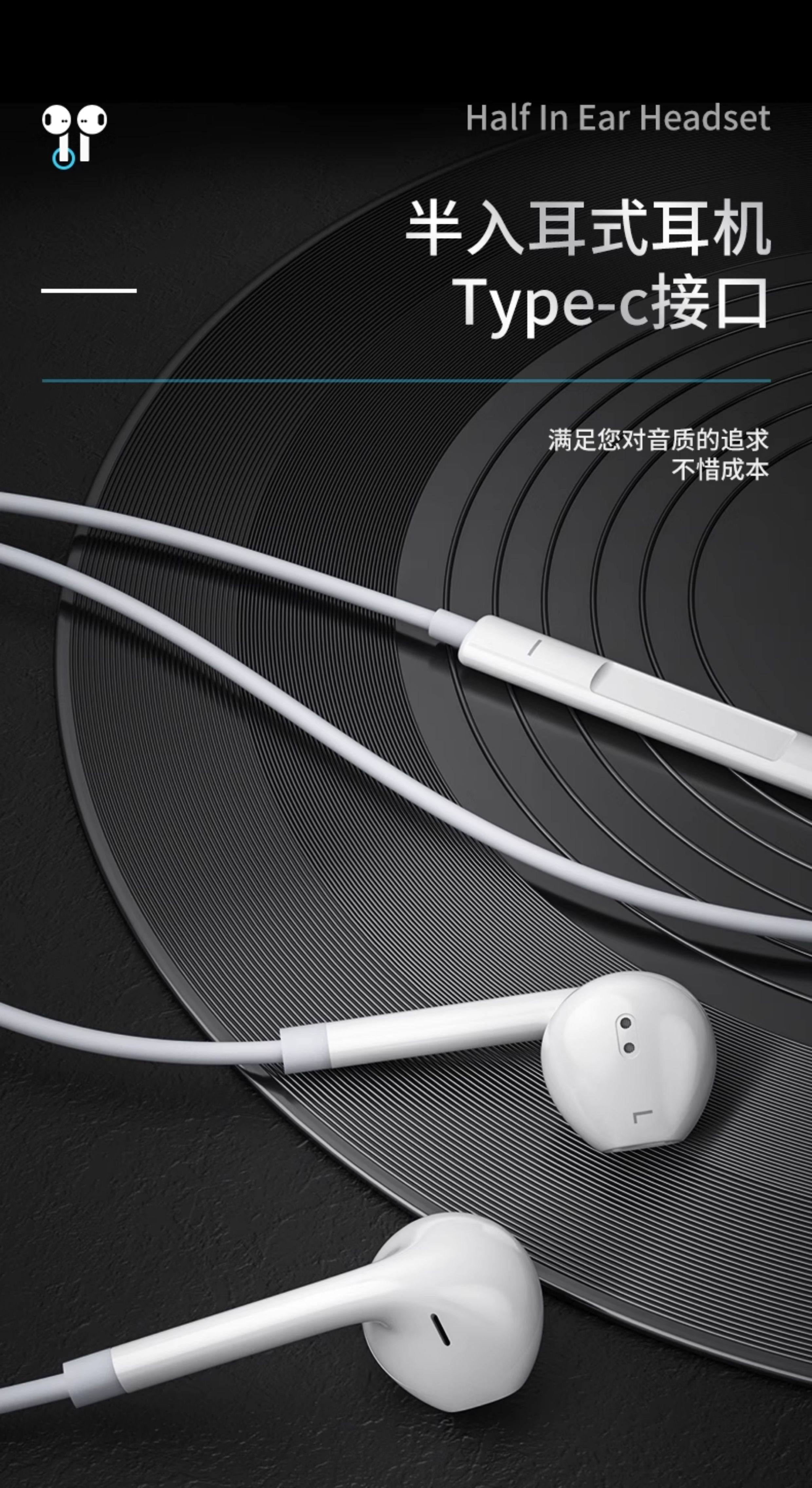 Senhomtog Wired Semi-In-Ear Headphones with Type-C Interface Are Suitable for Xiaomi, Huawei, Honor, and Apple Phones
