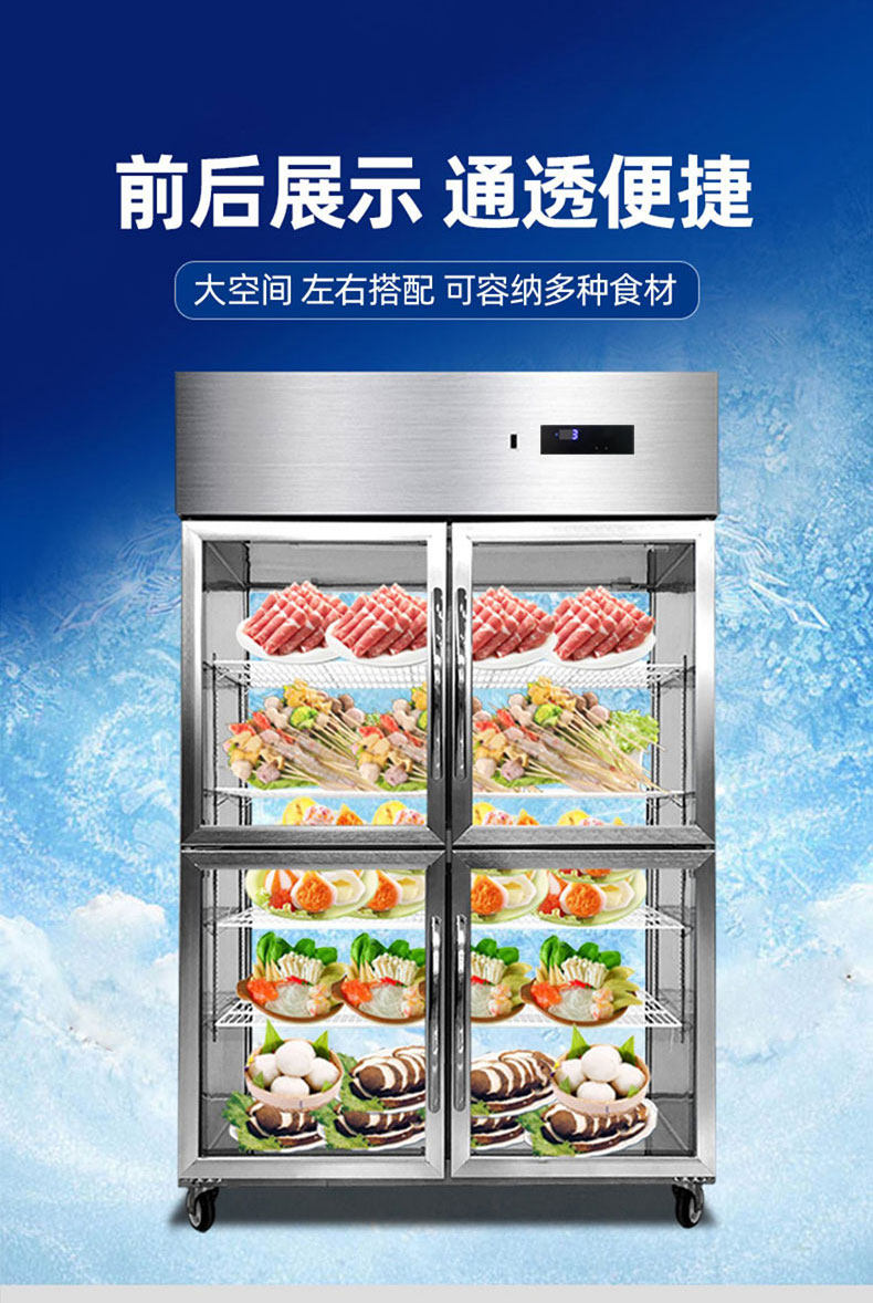 Front and Rear Opening Refrigerated Display Cabinet Double-Way Freezer Vertical Fresh-Keeping Cabinet Hot Pot Restaurant Double-Sided Display Commercial Refrigerator